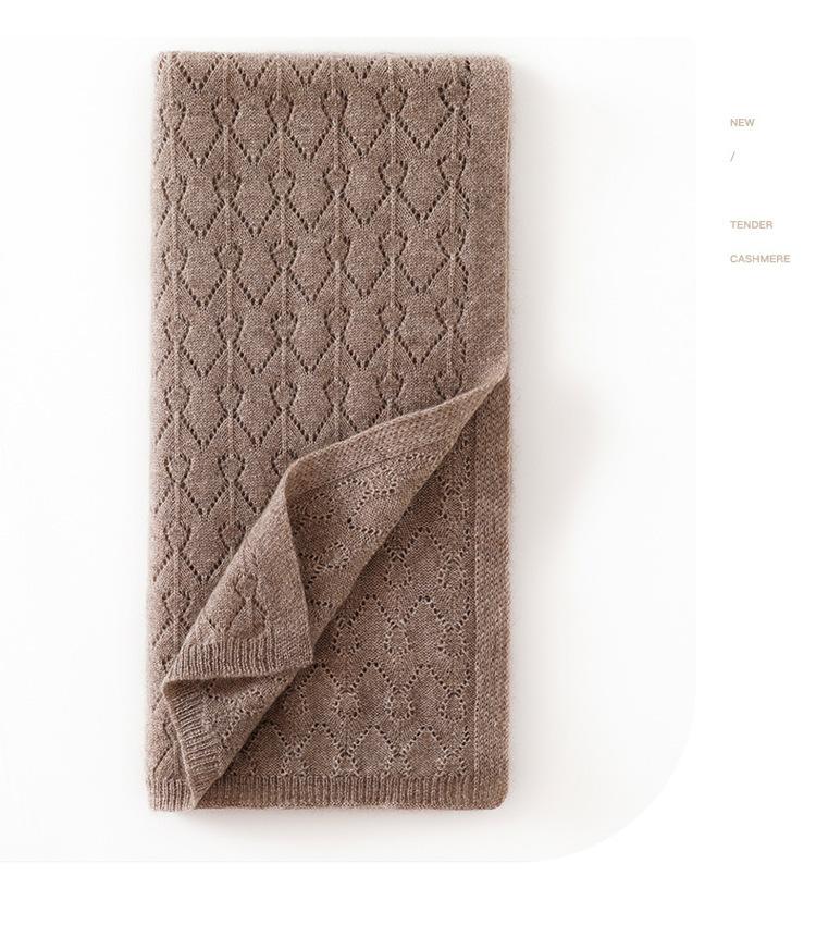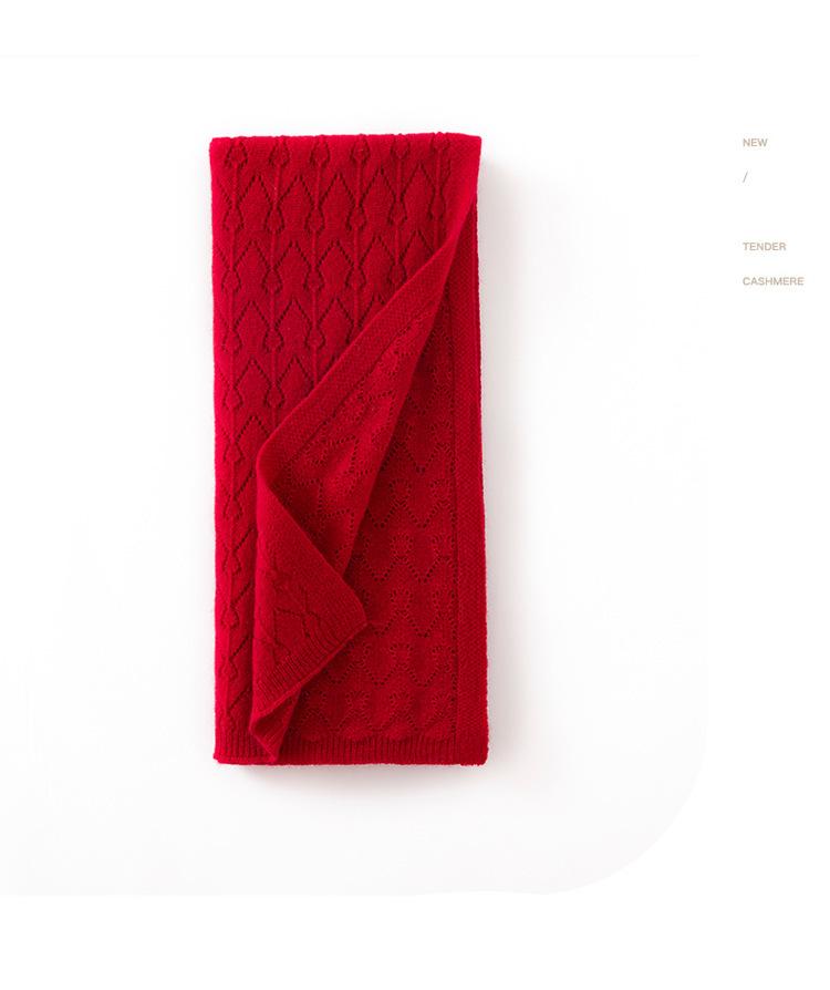 Cachemira 2025 Otoño e Invierno Nuevo Chal para Mujer Color Sólido Protector de Cuello Calado Moda Jersey Tejido Bufanda Larga
