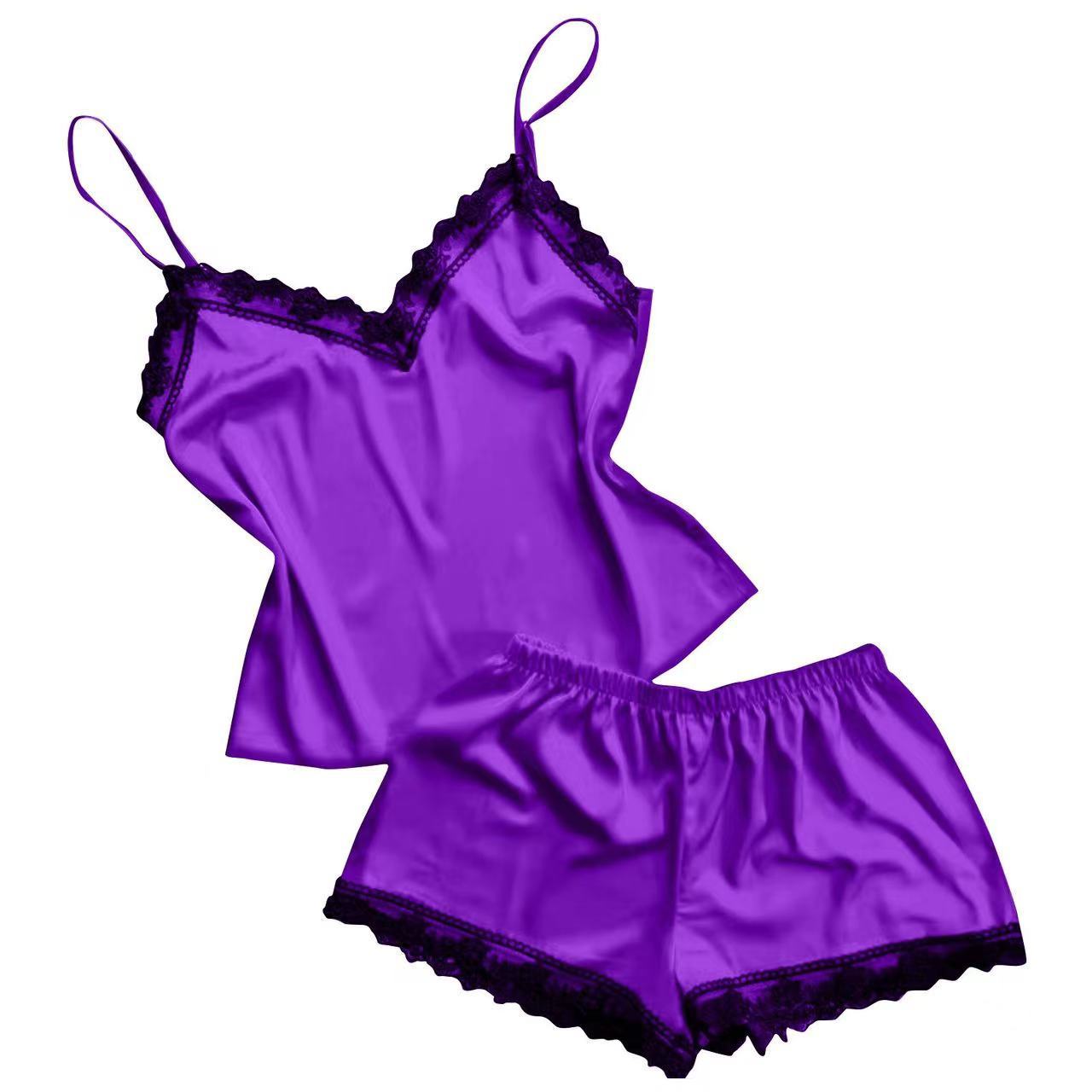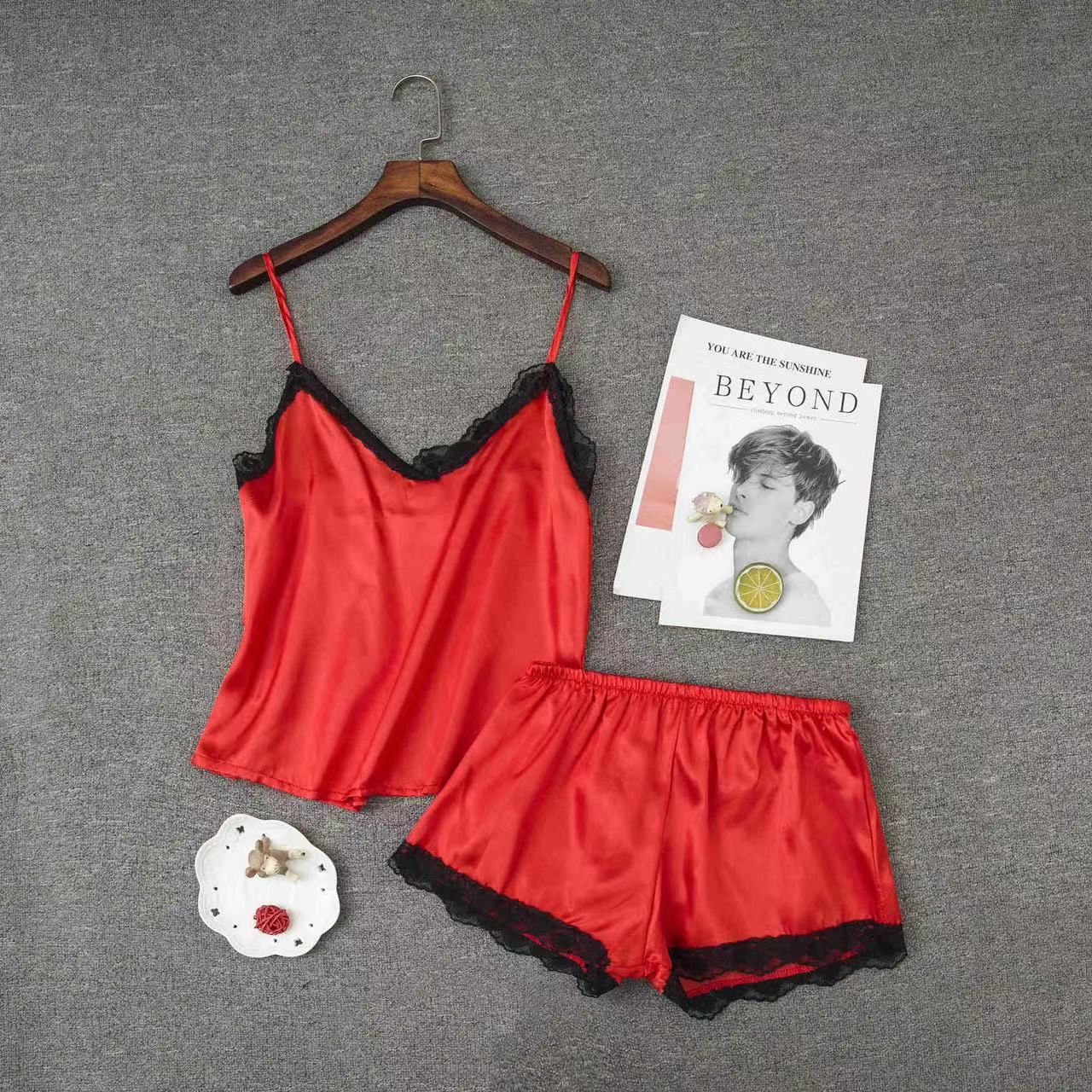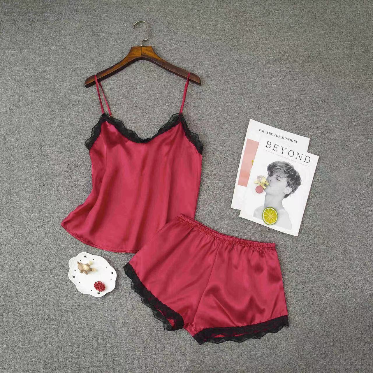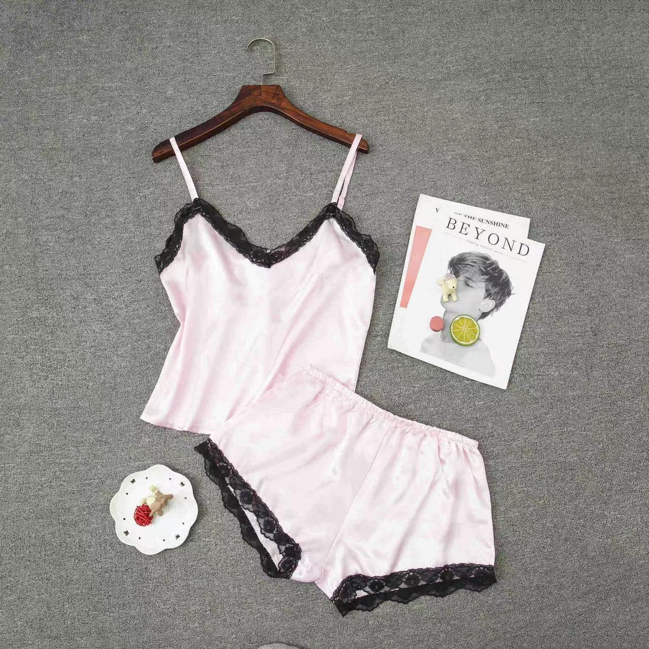 Pijama sexy de dos piezas con tirantes para mujer, pantalones cortos, color liso, para el hogar, de Amazon Europa y Estados Unidos, para verano, transfronterizo