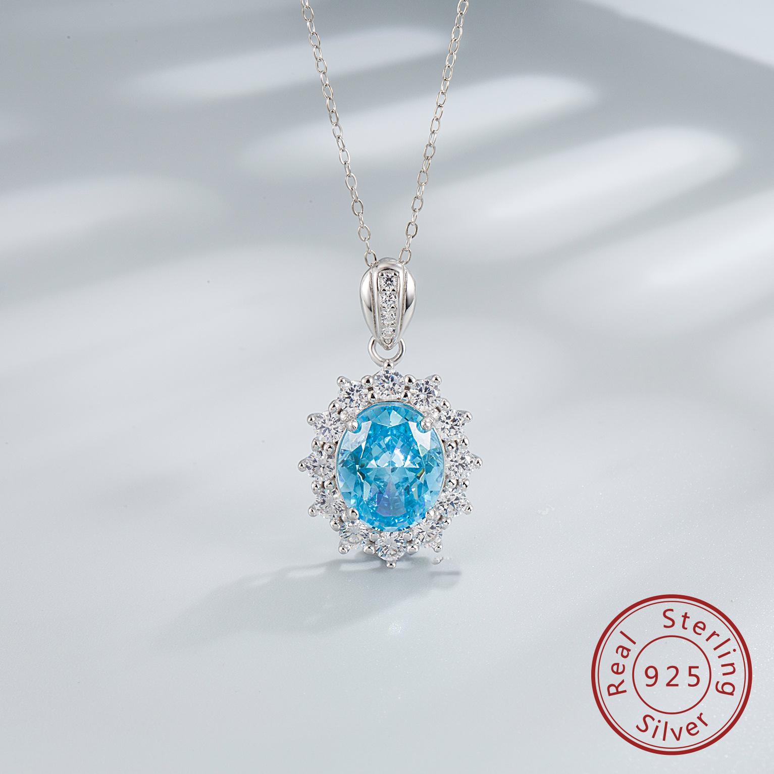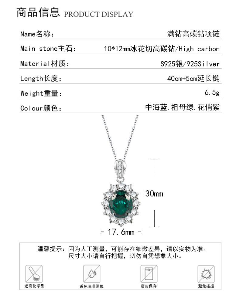 Plata S925 Corte Flor de Hielo Diamante de alto carbono 10 * 12 mm collar colgante zafiro Alto carbono Transfronterizo de Amazon