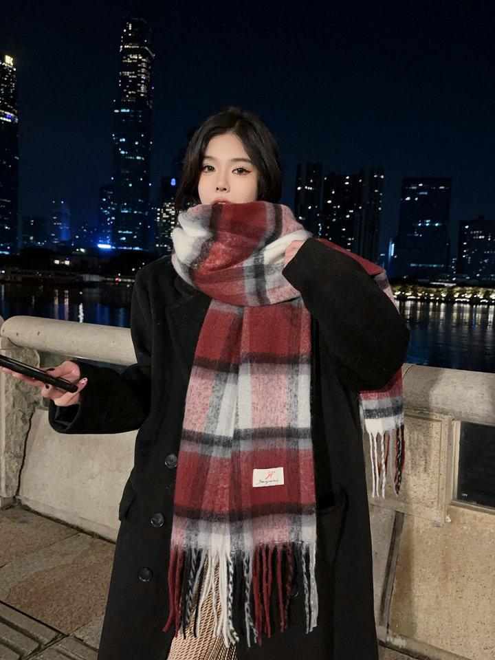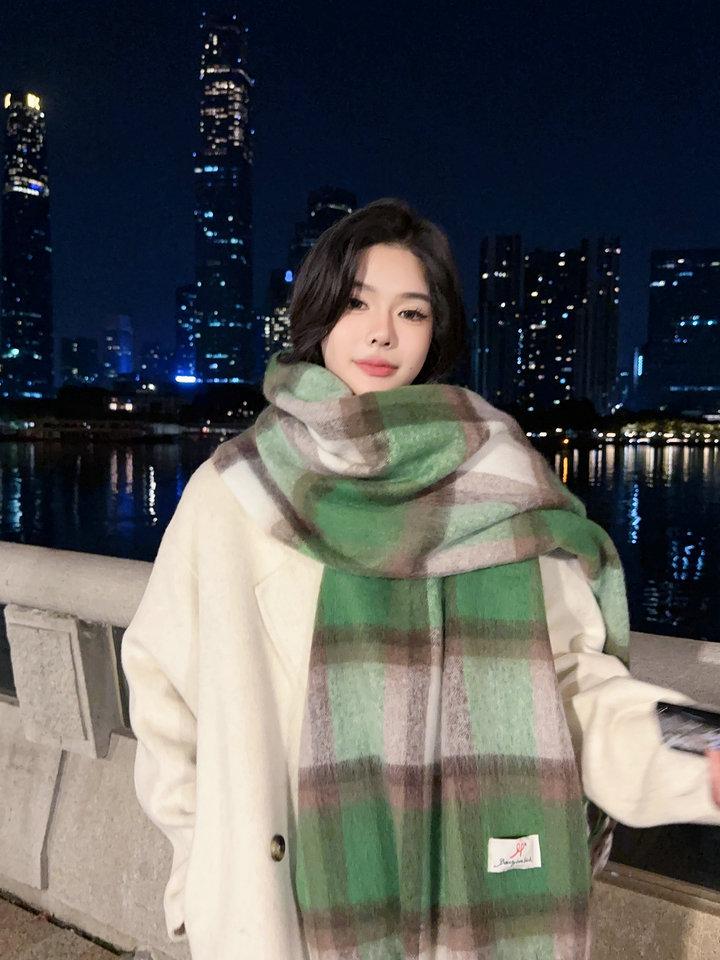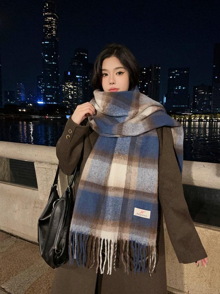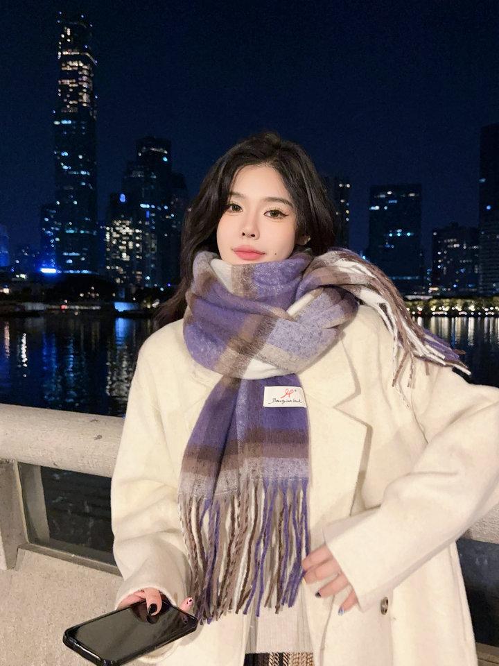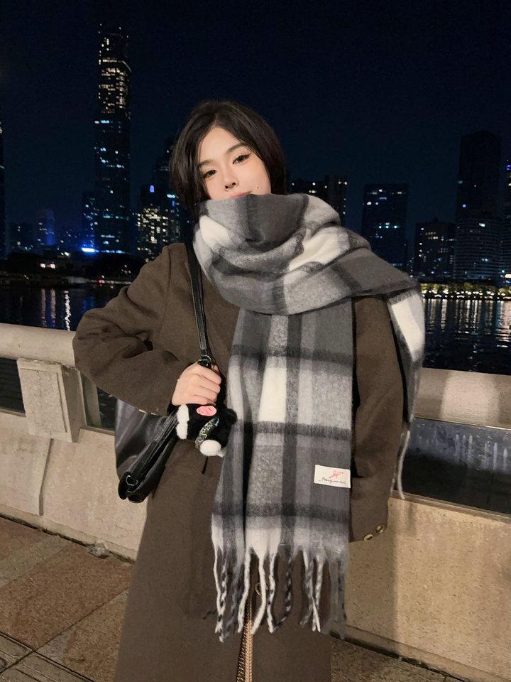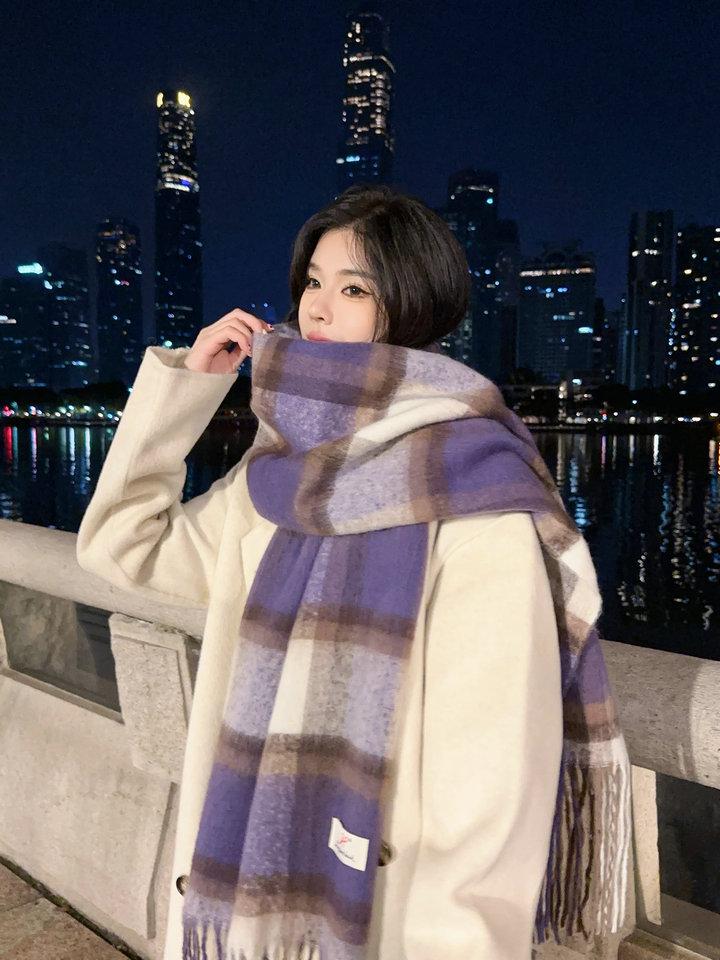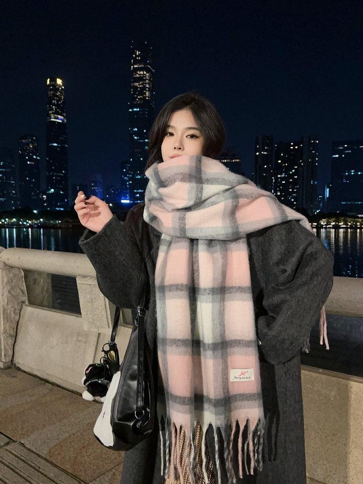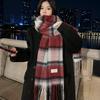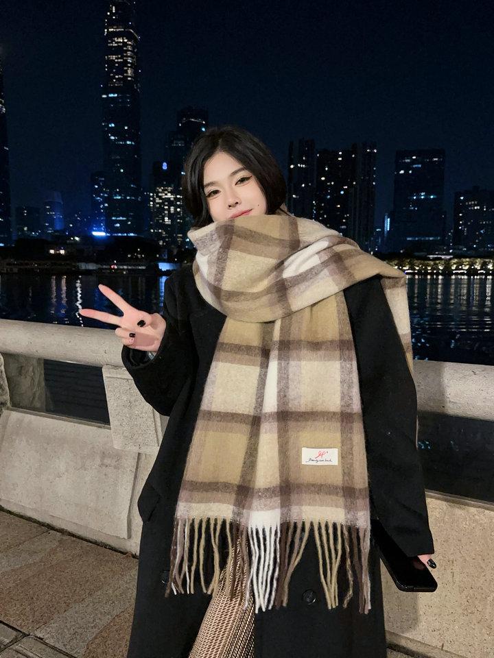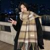 Bufanda de cachemira sintética a cuadros, estilo coreano, para invierno 2024. De alta gama, suave y con textura cerosa, versátil y cálida.