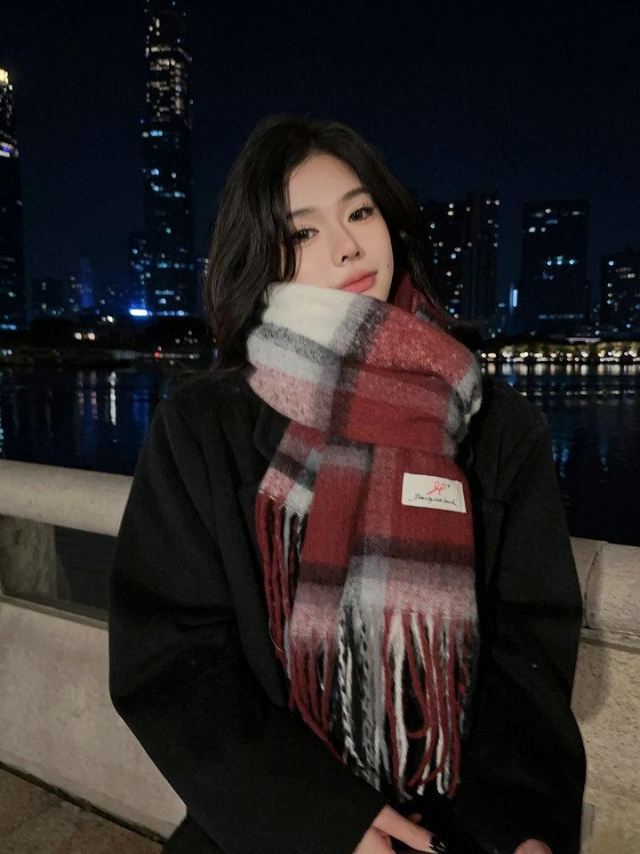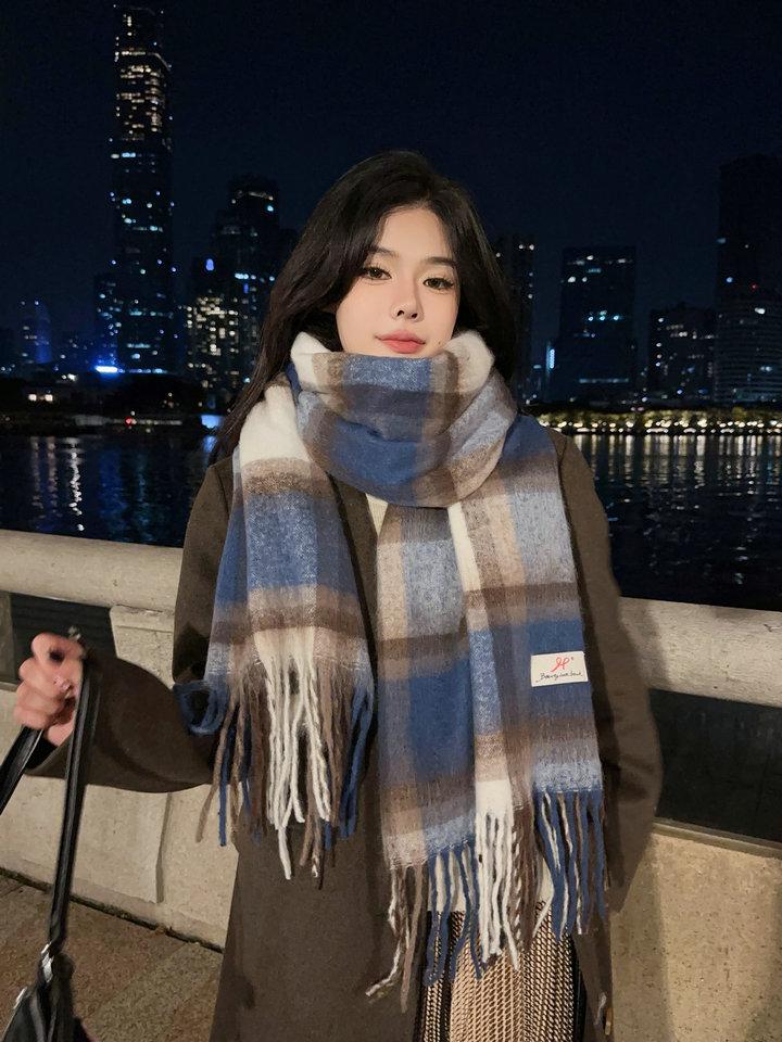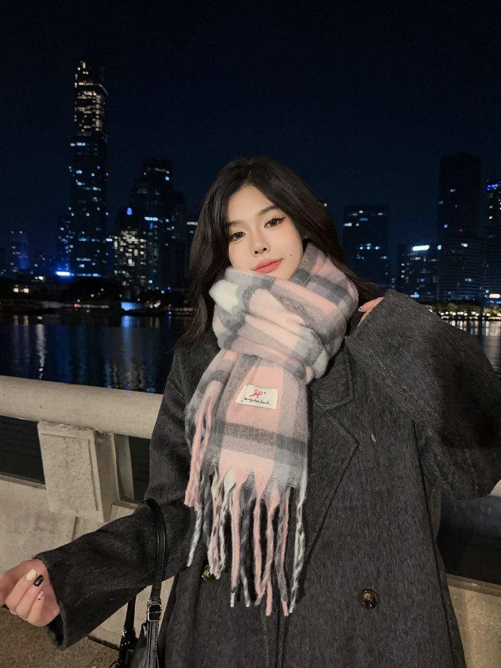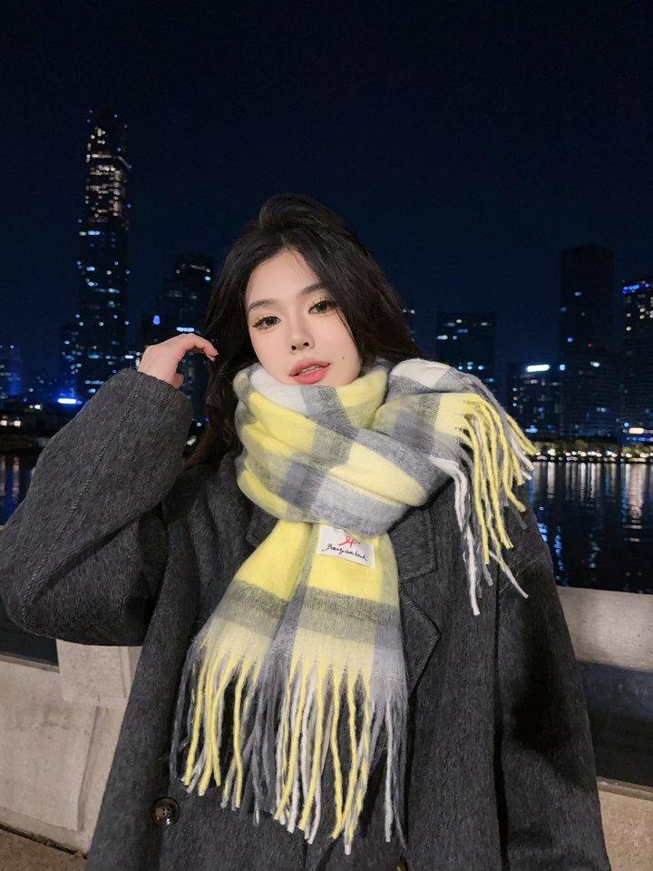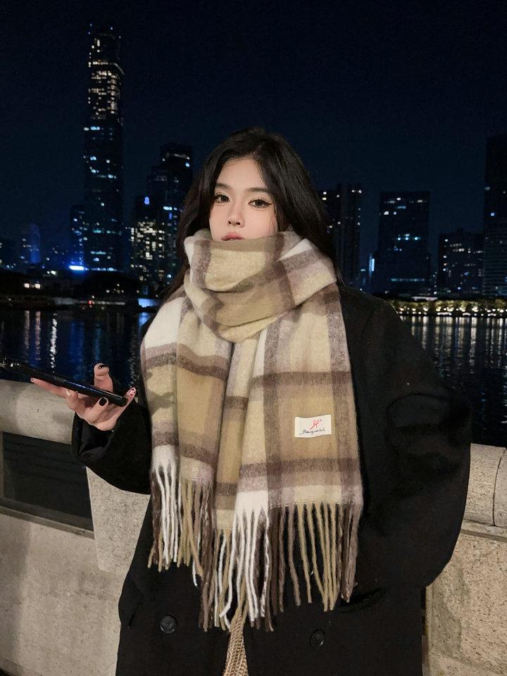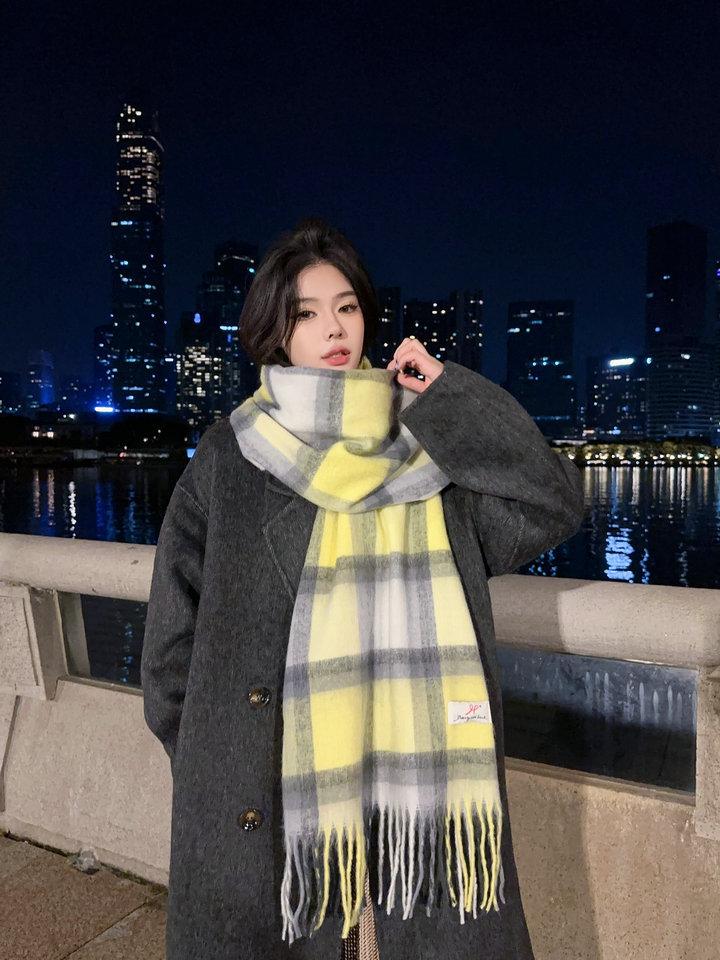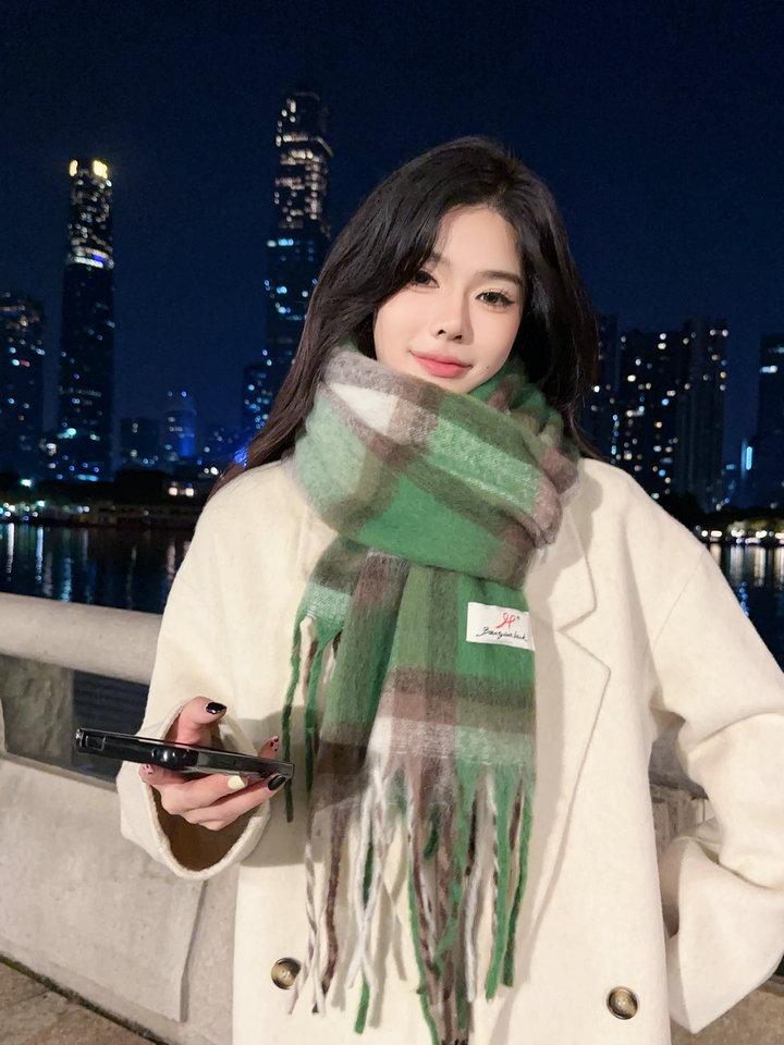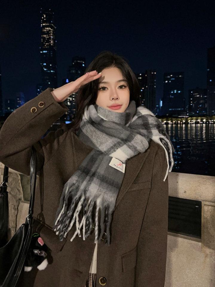 Bufanda de cachemira sintética a cuadros, estilo coreano, para invierno 2024. De alta gama, suave y con textura cerosa, versátil y cálida.