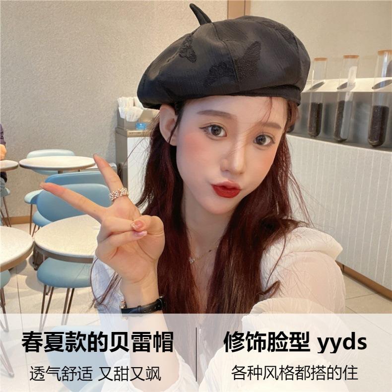 Primavera y verano nueva moda boina de dama linda Domo dulce sombrero de pintor lazo tejido sombrero Bud