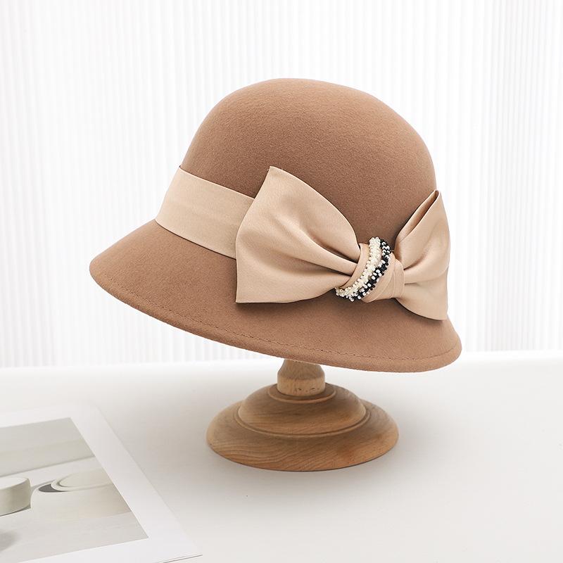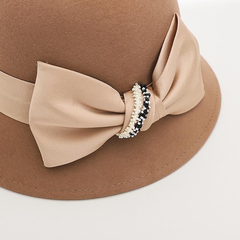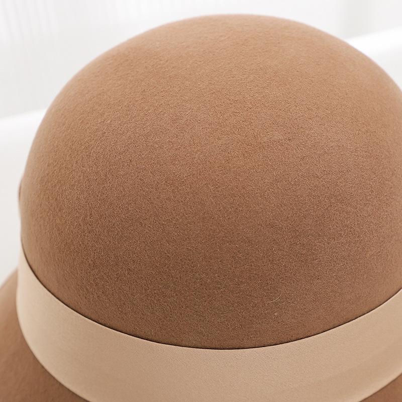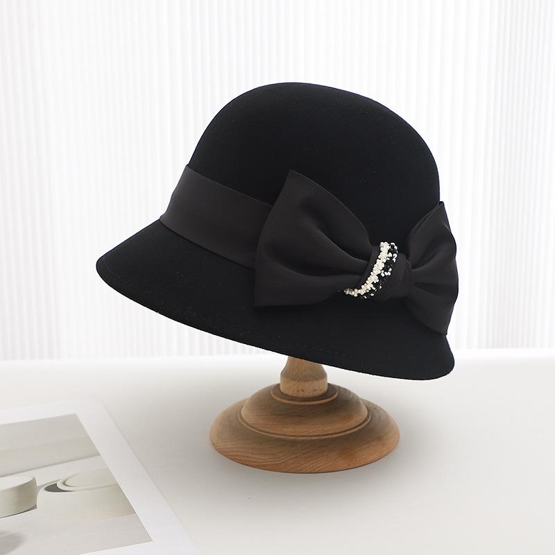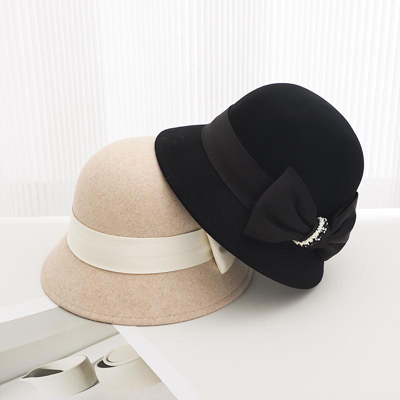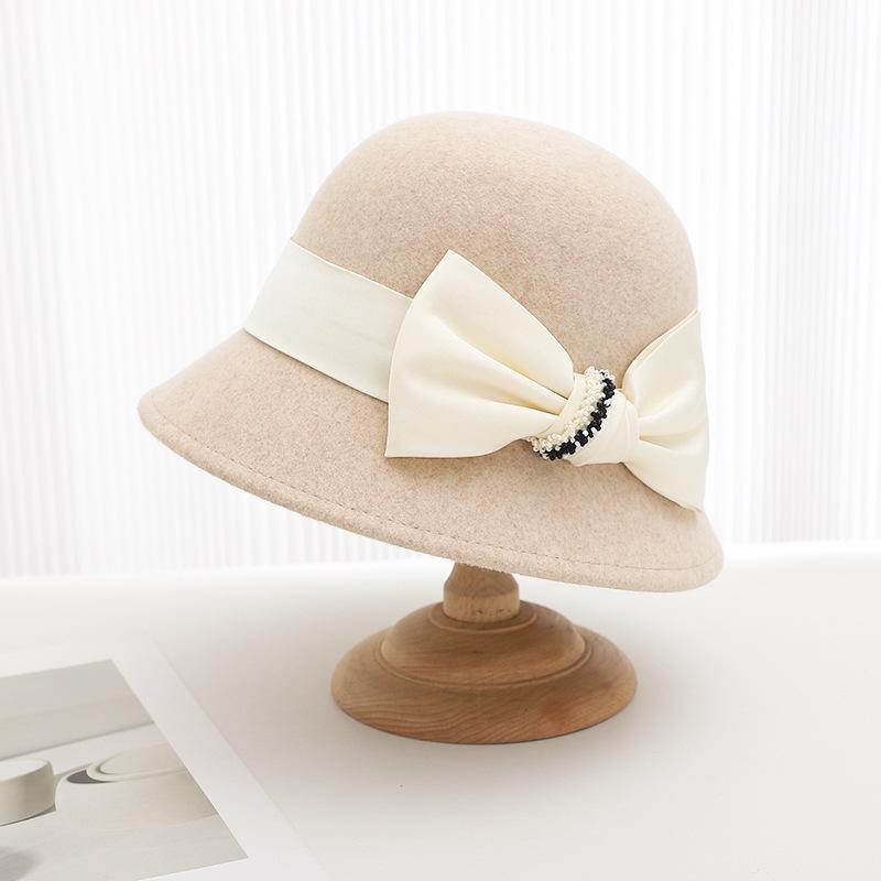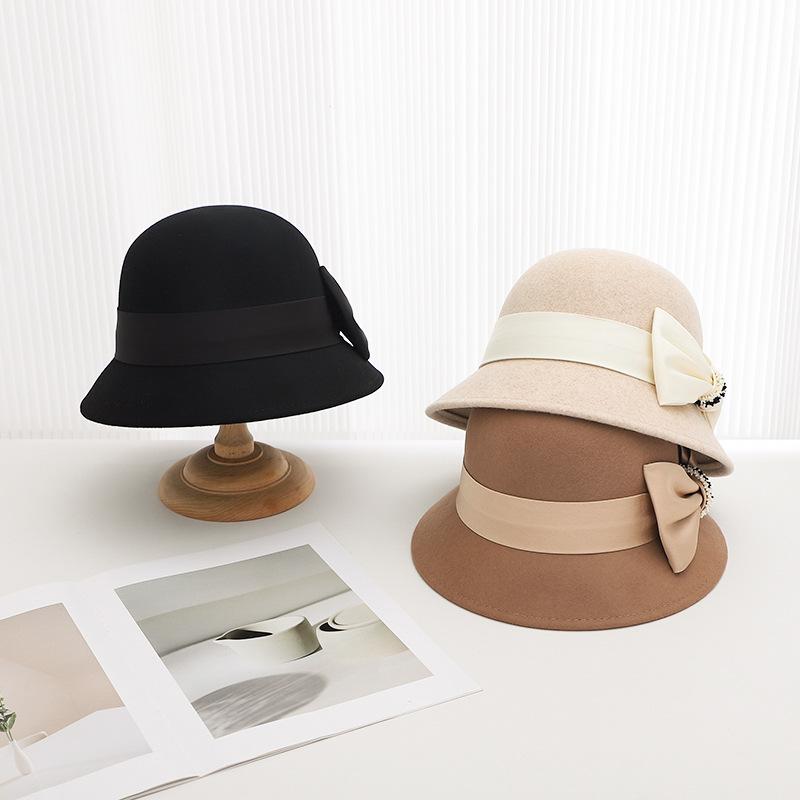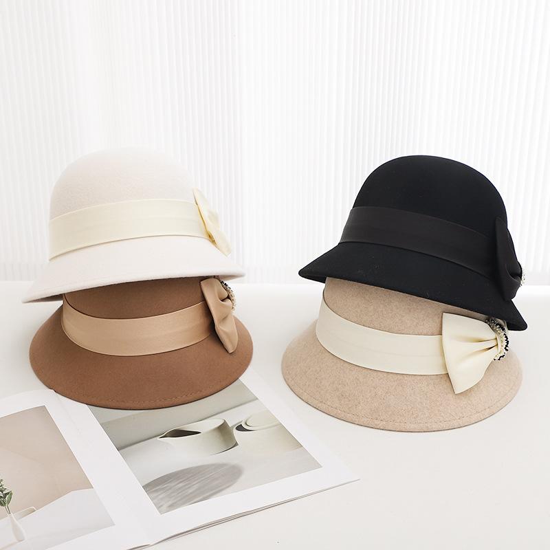 Sombrero de lana estilo coreano para mujer, gorro de lavabo de lana, estilo británico retro, elegante sombrero de pescador con lazo para mujer, otoño e invierno
