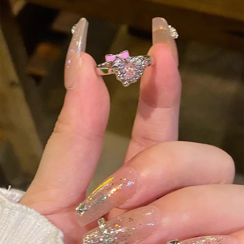 Anillo Abierto de Circonita de Amor para Mujer, Dulce, Genial y Versátil Anillo Personalizado, Anillo de Dedo Índice de Moda Nicho de Alta Gama para Mujer