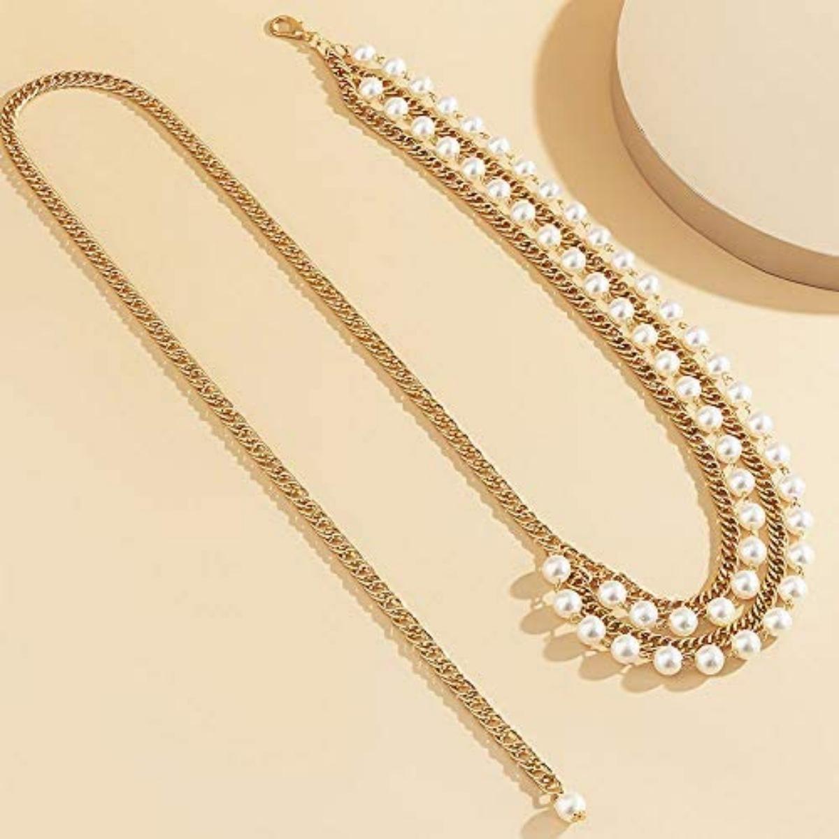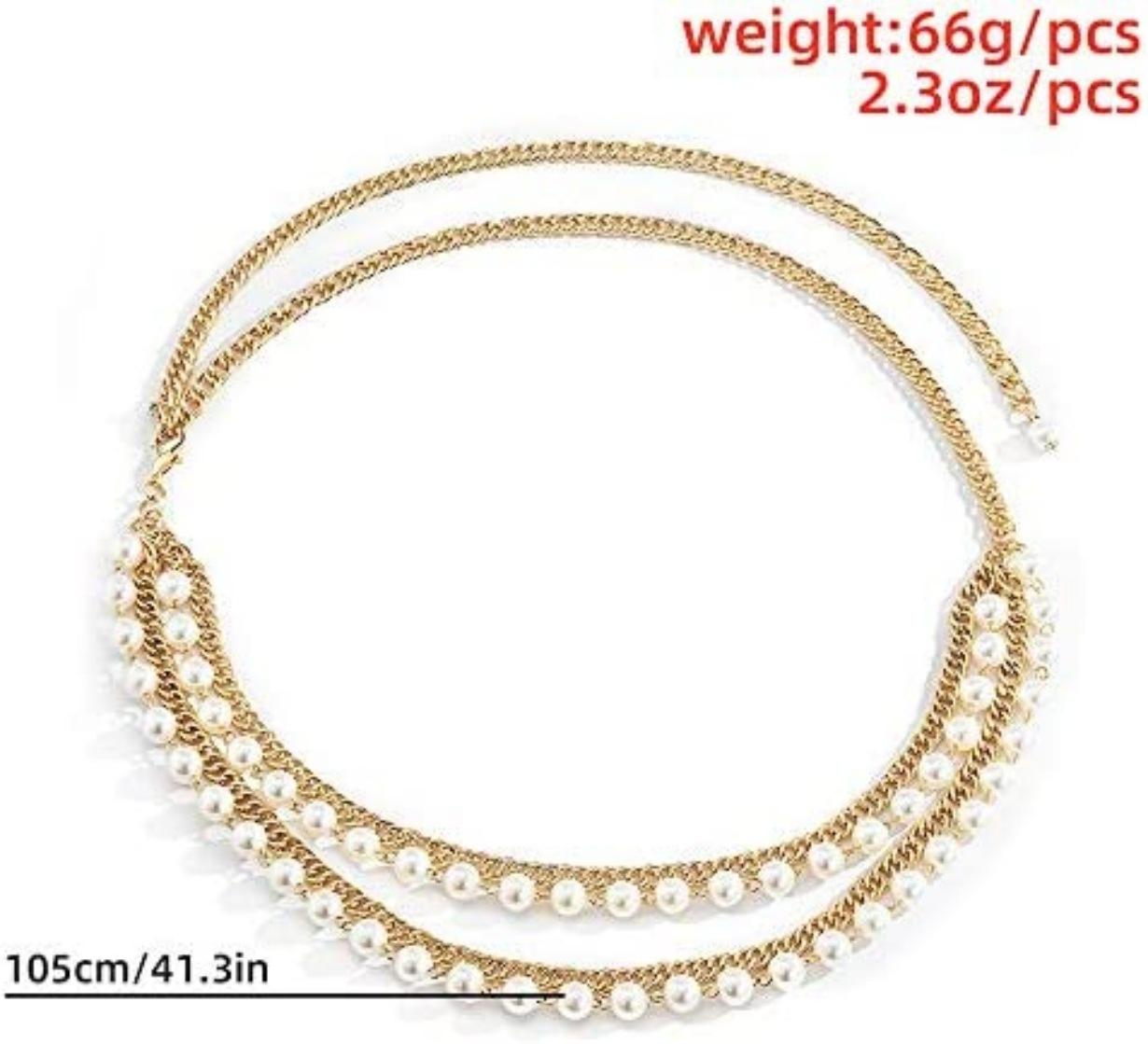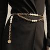 Cadena de cintura con perlas de imitación retro, joyería transfronteriza europea y americana, cadena de metal multicapa de alta calidad para mujer, accesorios de cadena corporal