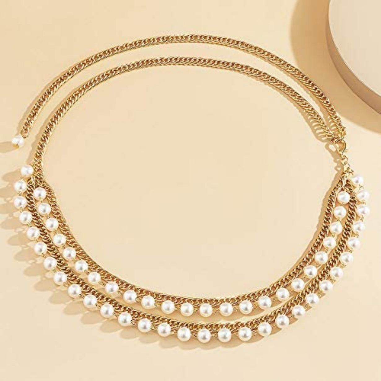 Imitation Pearl waist chain gold, Artificial Pearl waist chain white k