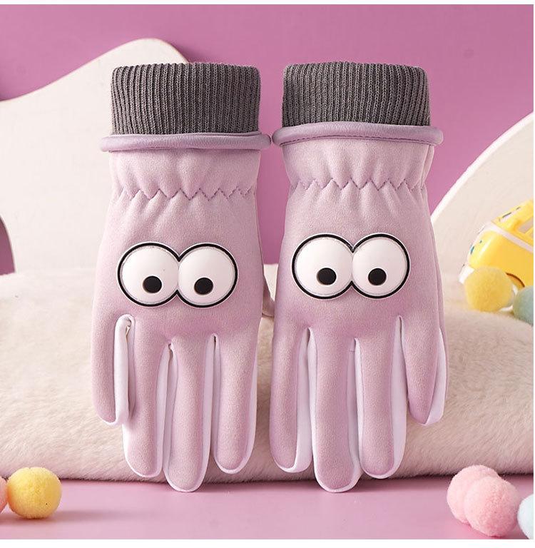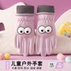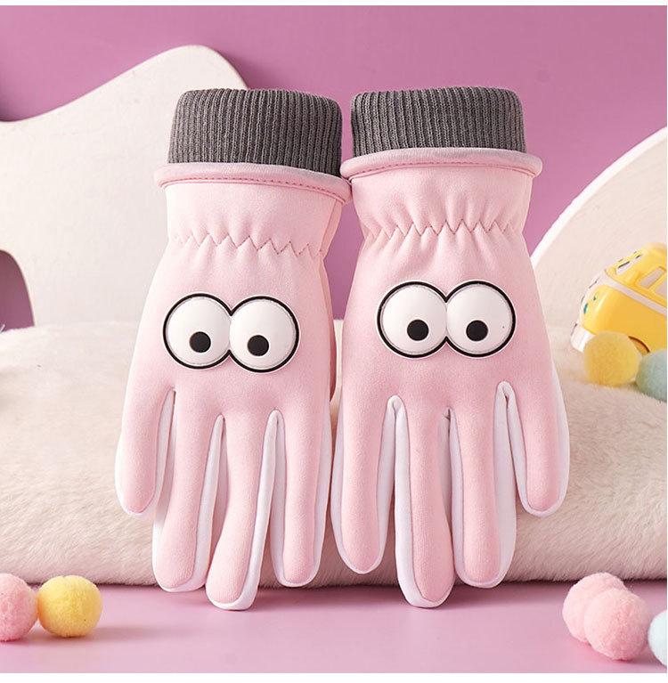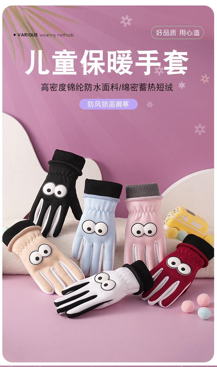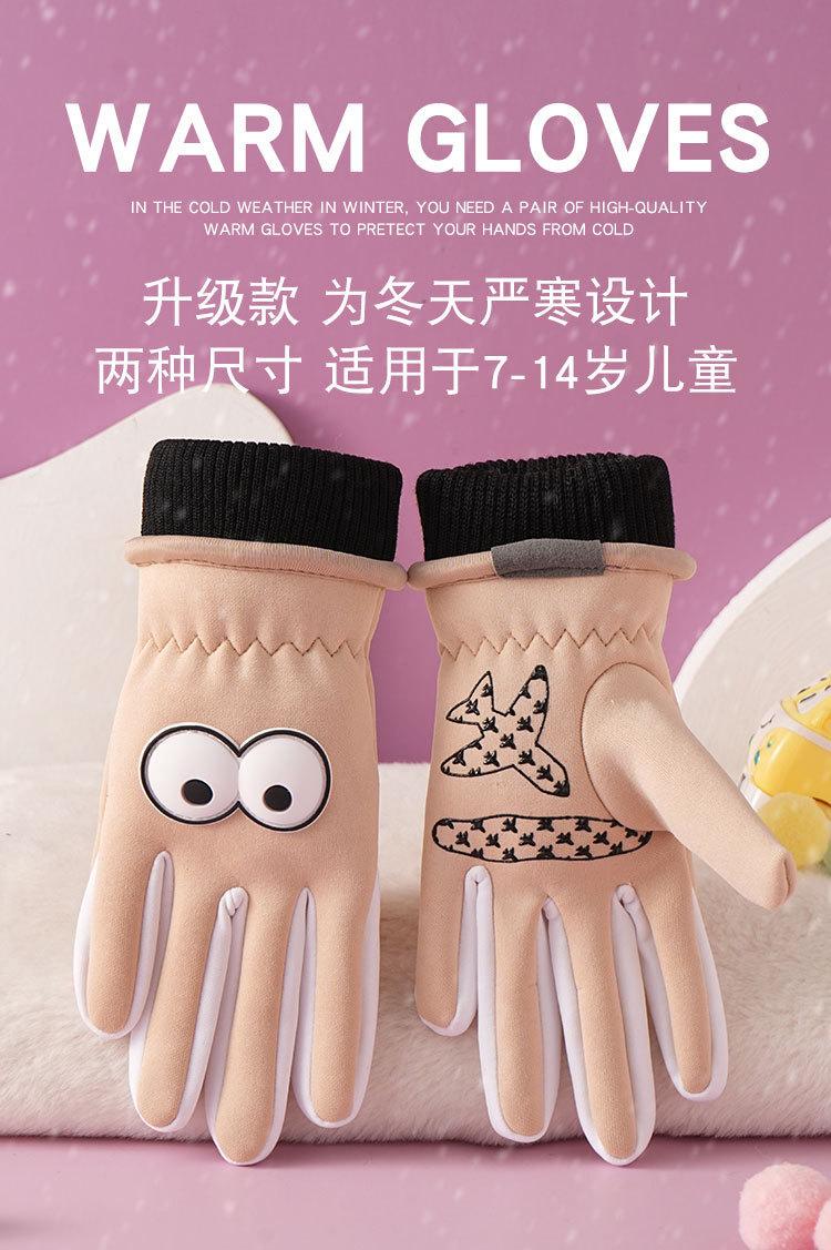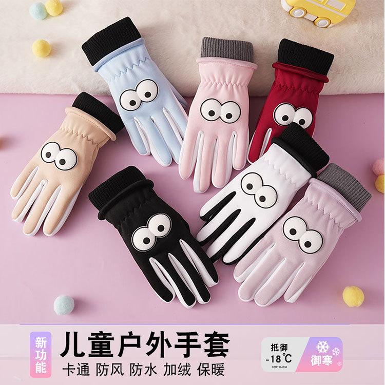 Guantes para niños, otoño e invierno, para exteriores, resistentes al frío, cálidos, con forro polar, para jugar en la nieve, antideslizantes, para ciclismo, con dibujos animados, bonitos guantes a prueba de viento