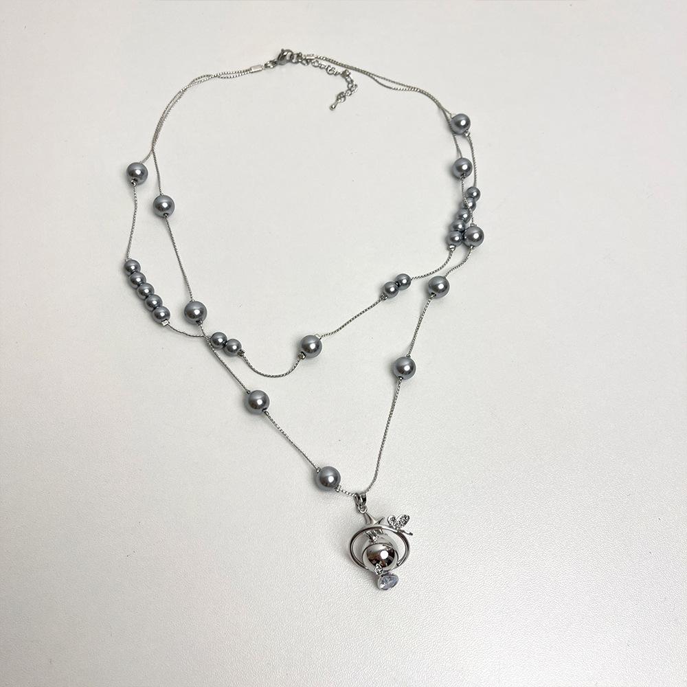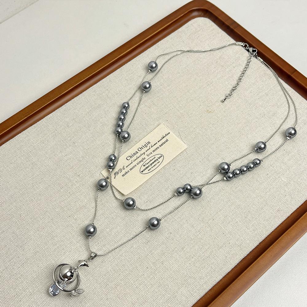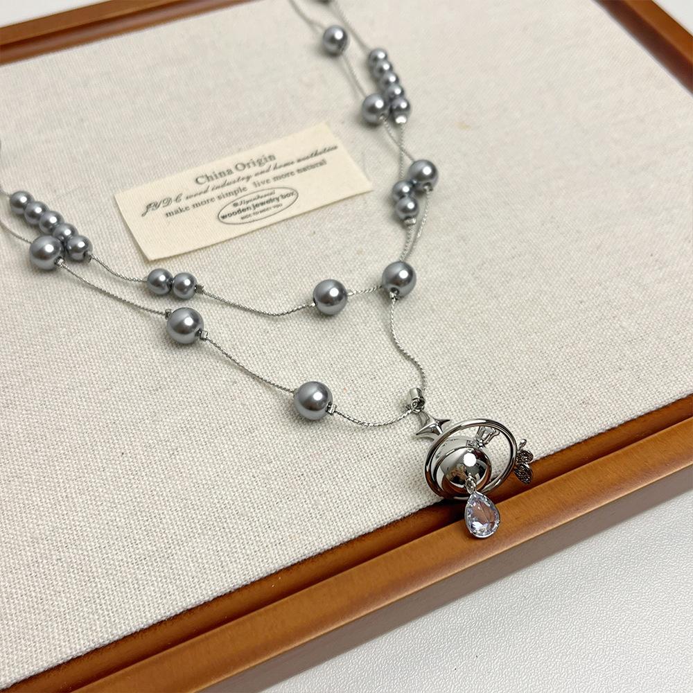 Collar de perlas Niche Gipsophila Cross Planet, ligero, de lujo, vintage, de doble capa, con cadena para clavícula, para mujer, con un toque de especias, elegante y moderno.