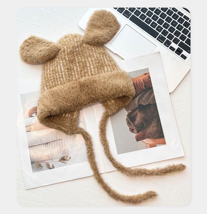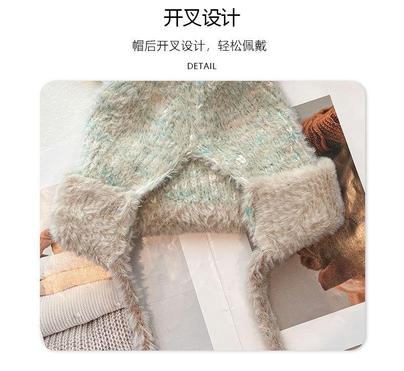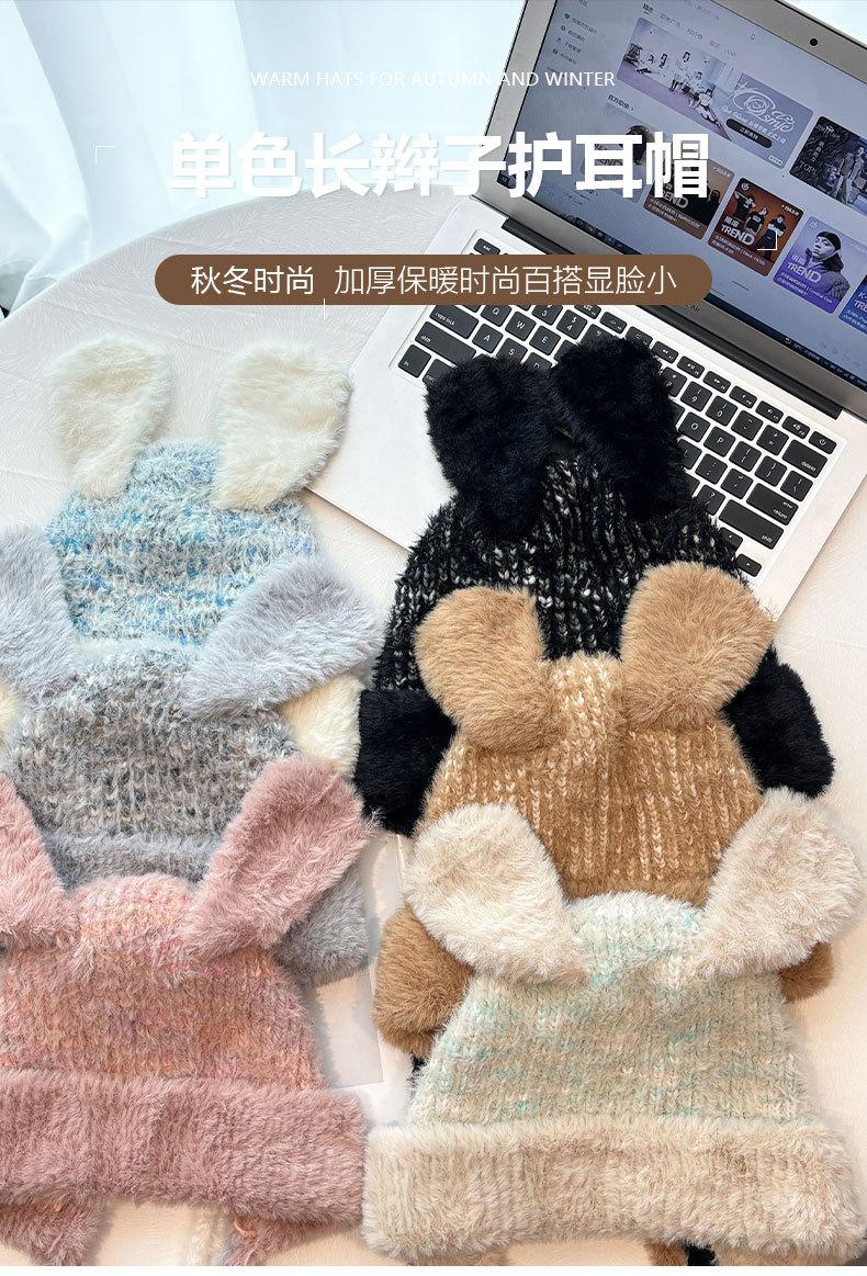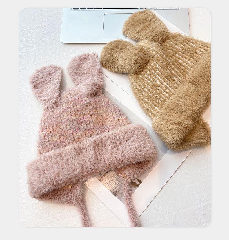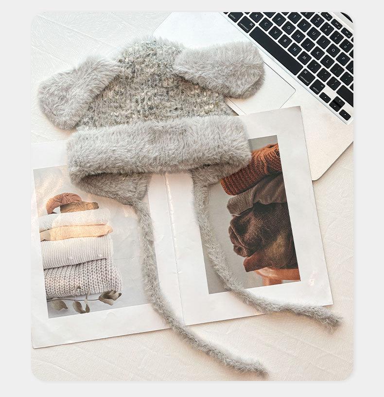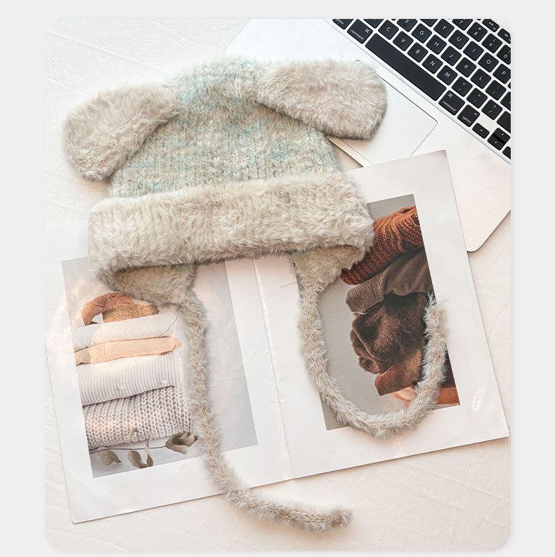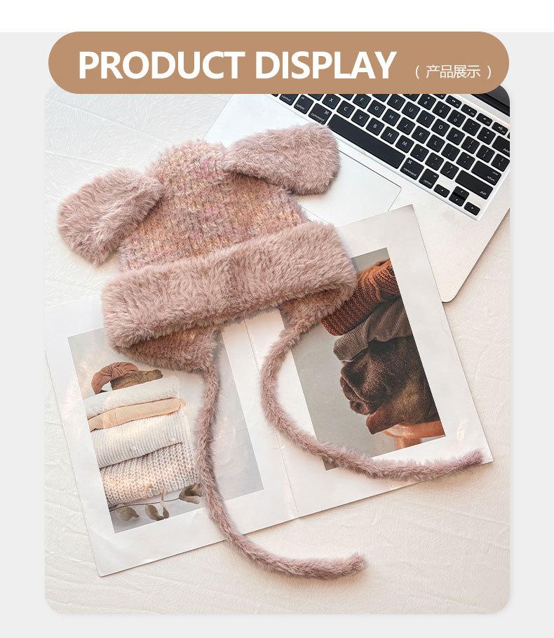 Gorro de lana para otoño e invierno, bonito gorro con orejas de conejo trenzadas, protector de orejas, gorro grande para la cabeza, gorro pequeño a prueba de frío, gorro Lei Feng.