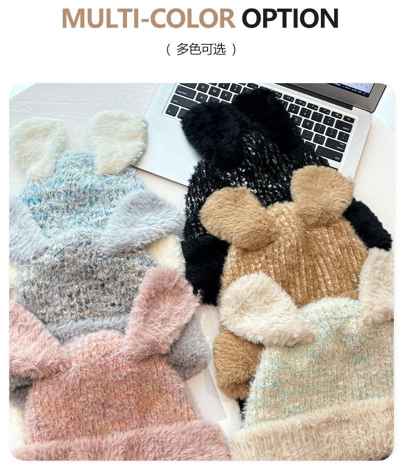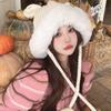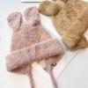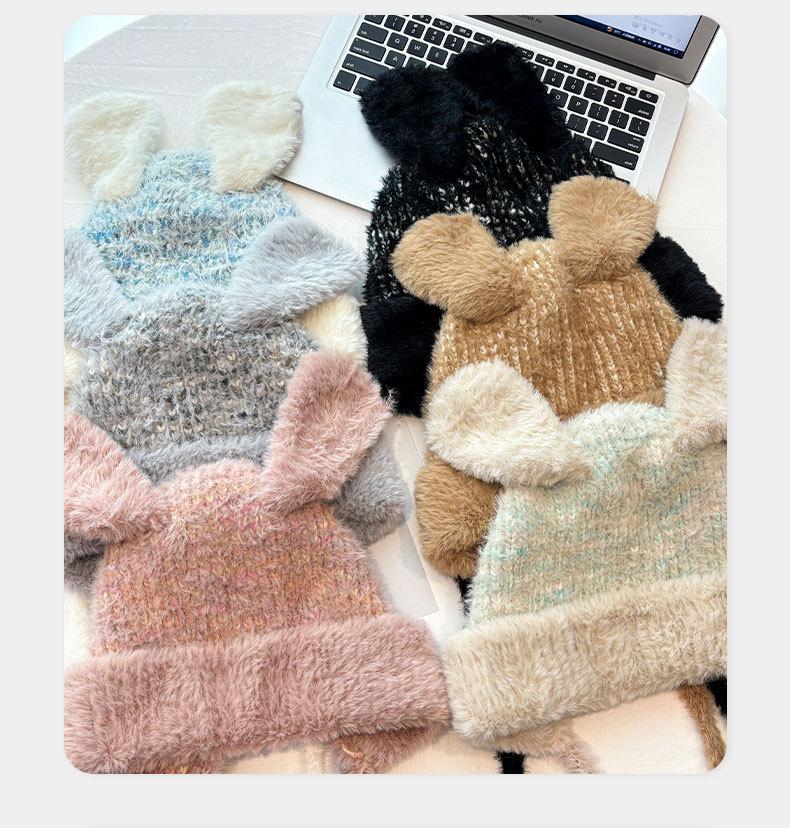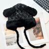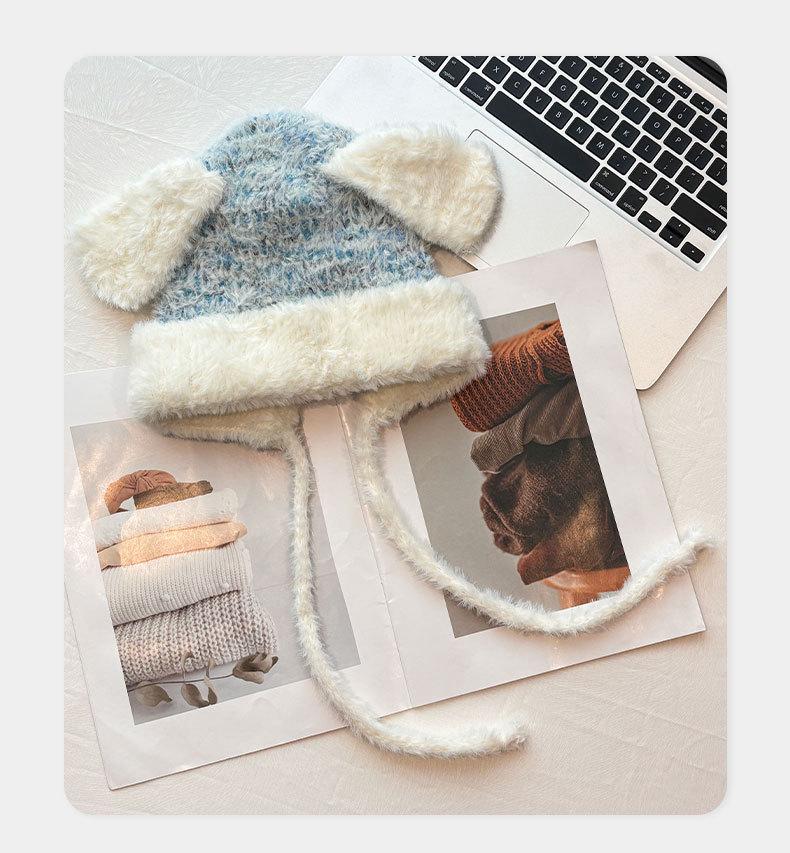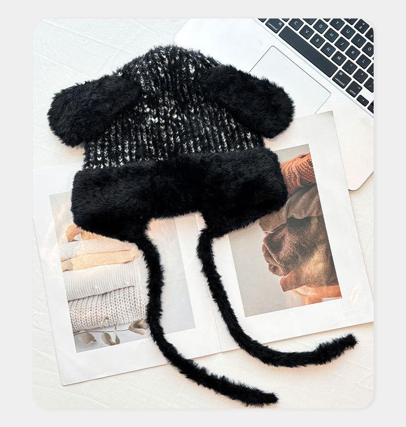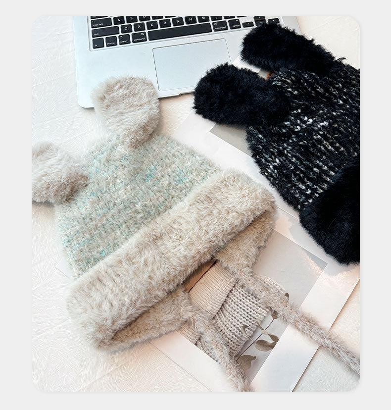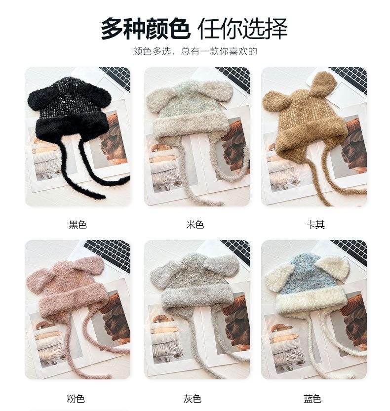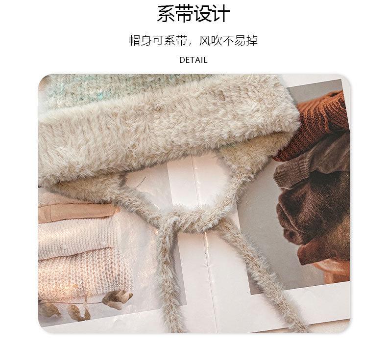 Gorro de lana para otoño e invierno, bonito gorro con orejas de conejo trenzadas, protector de orejas, gorro grande para la cabeza, gorro pequeño a prueba de frío, gorro Lei Feng.
