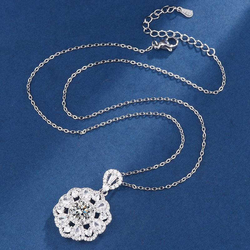 Colgante de moissanita de 2 quilates con explosión de tendencia en vivo de Shake Voice, cadena de clavícula de girasol con diamantes completos, fabricantes al por mayor