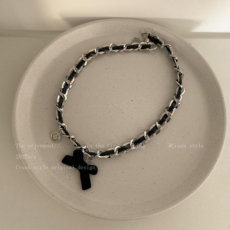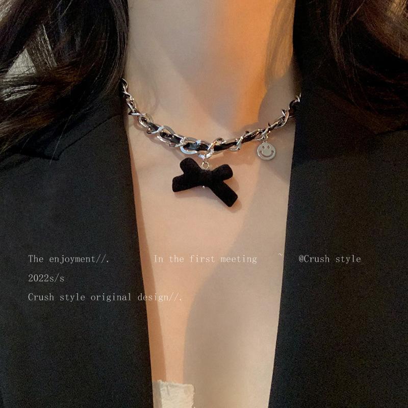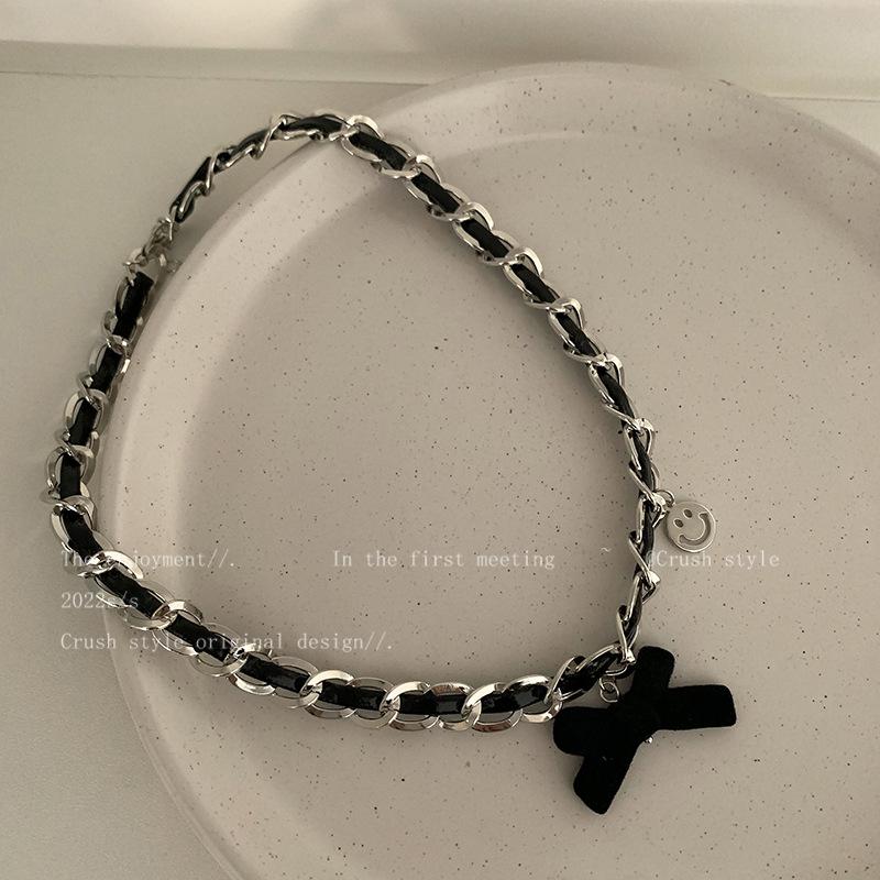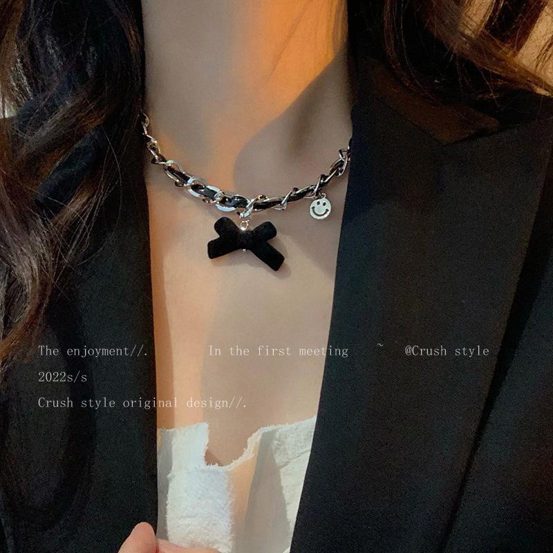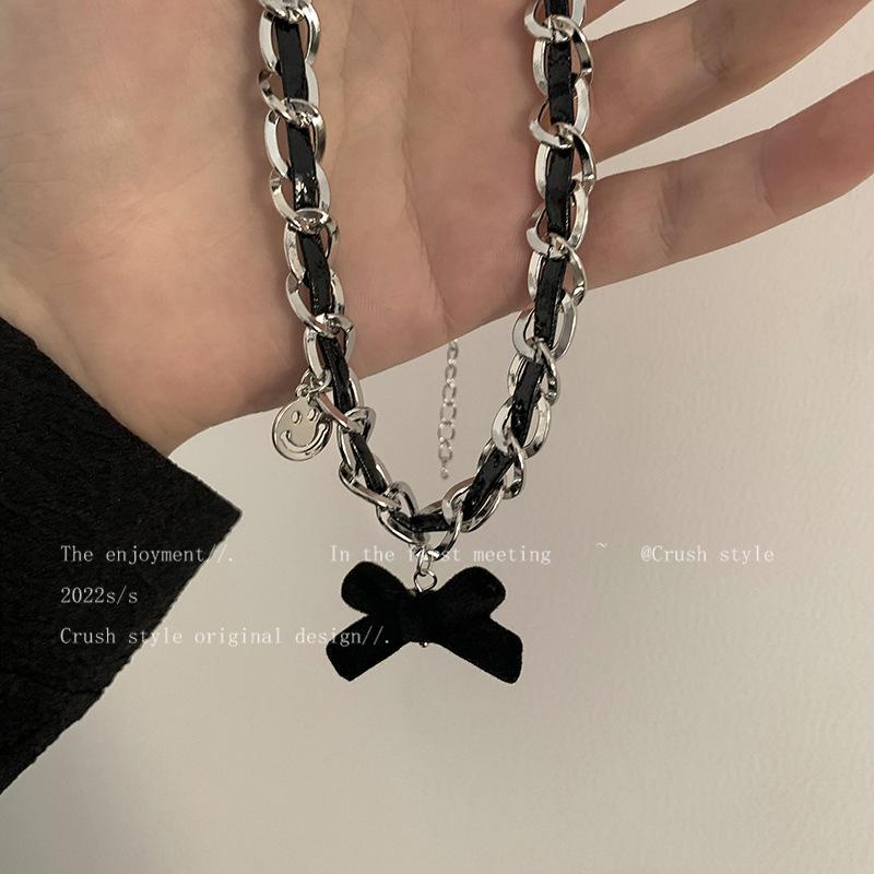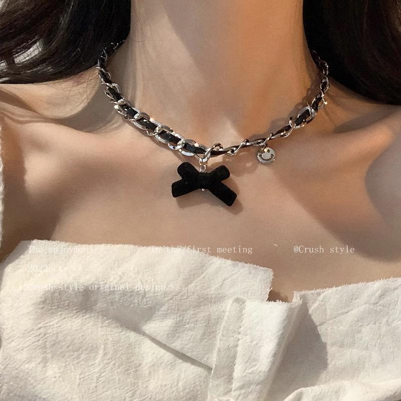 Gargantilla con lazo negro tejido para mujer, estilo hip-hop, diseño de nicho, cadena para el cuello con especias