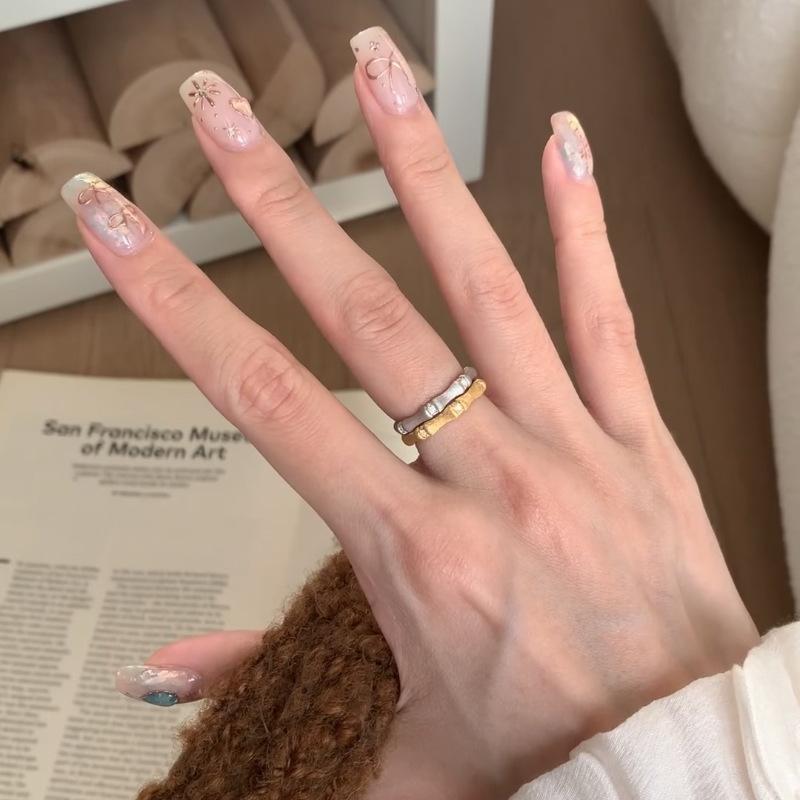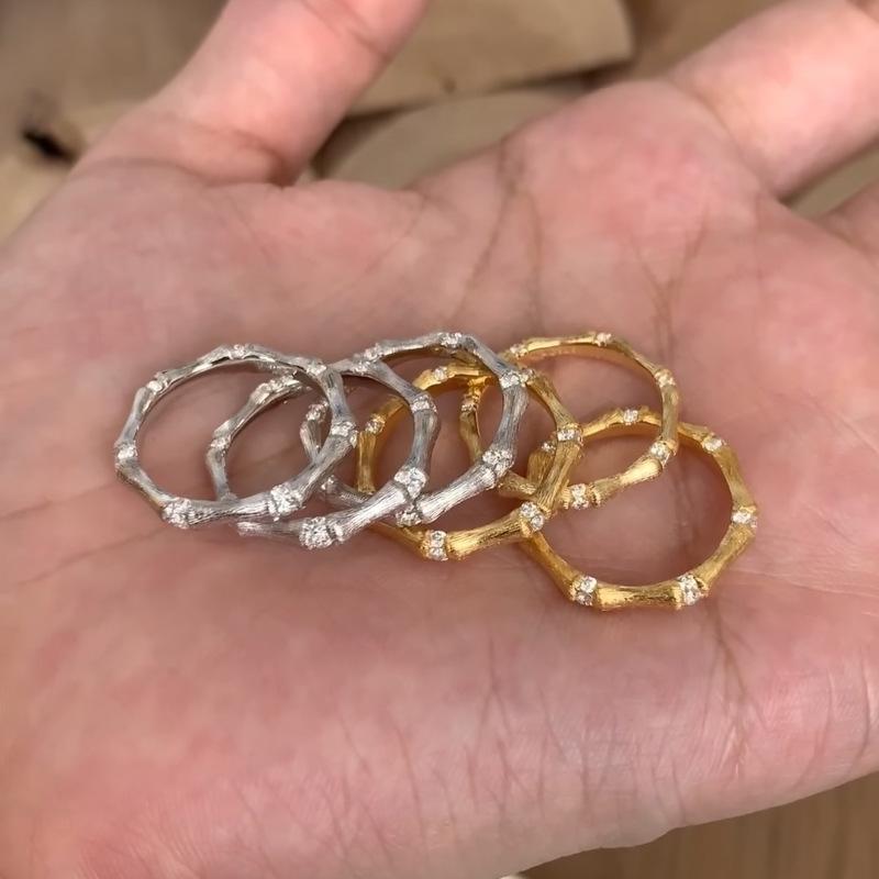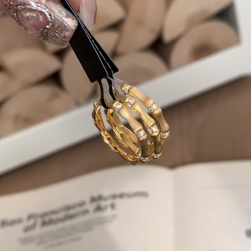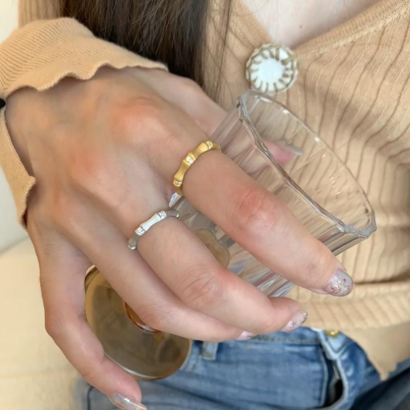Anillo Abierto de Bambú Cepillado Dorado para Mujer, Moda, Exquisito Zircón, Versátil, de Alta Gama, para Dedo Índice, Nuevo Estilo 2024