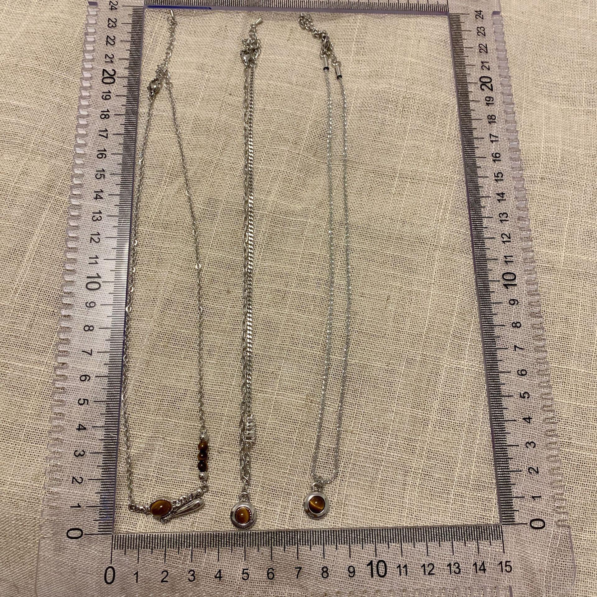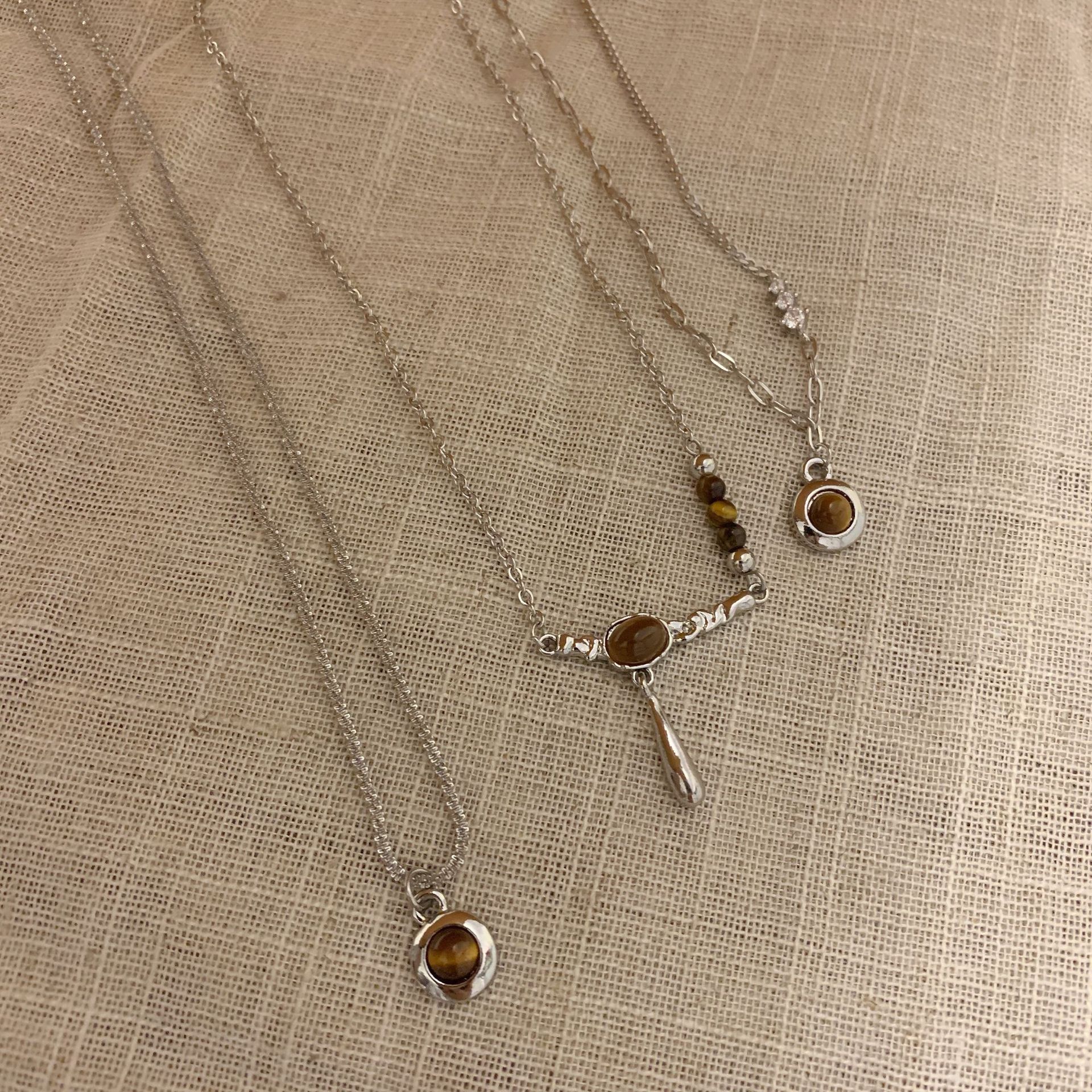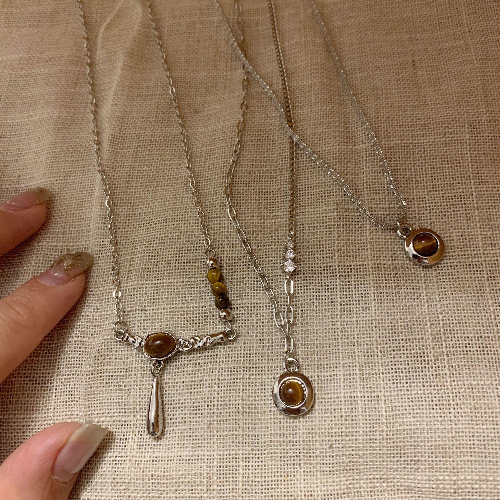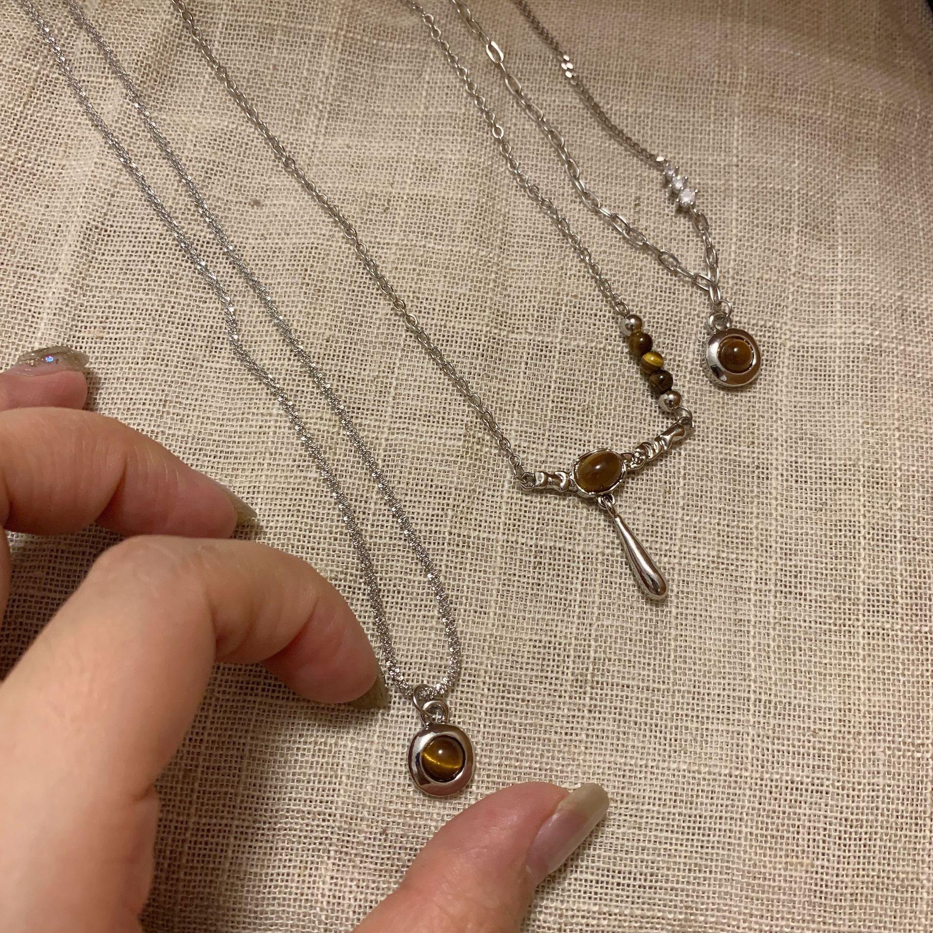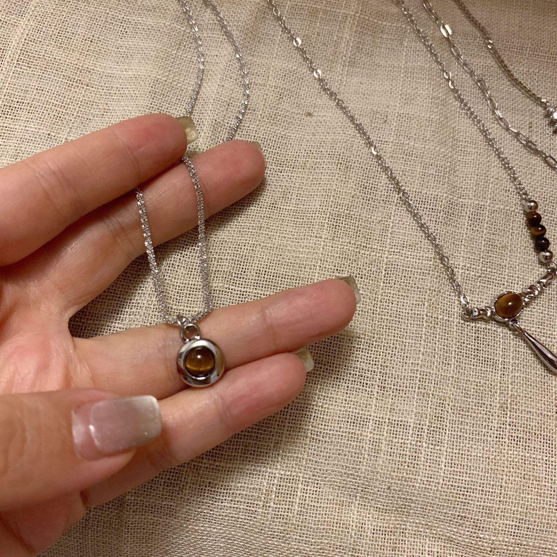 3 rhinestones tiger eye stones r, Tiger eye water drop pendant r, Thin chain, a round tiger eye stone r