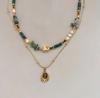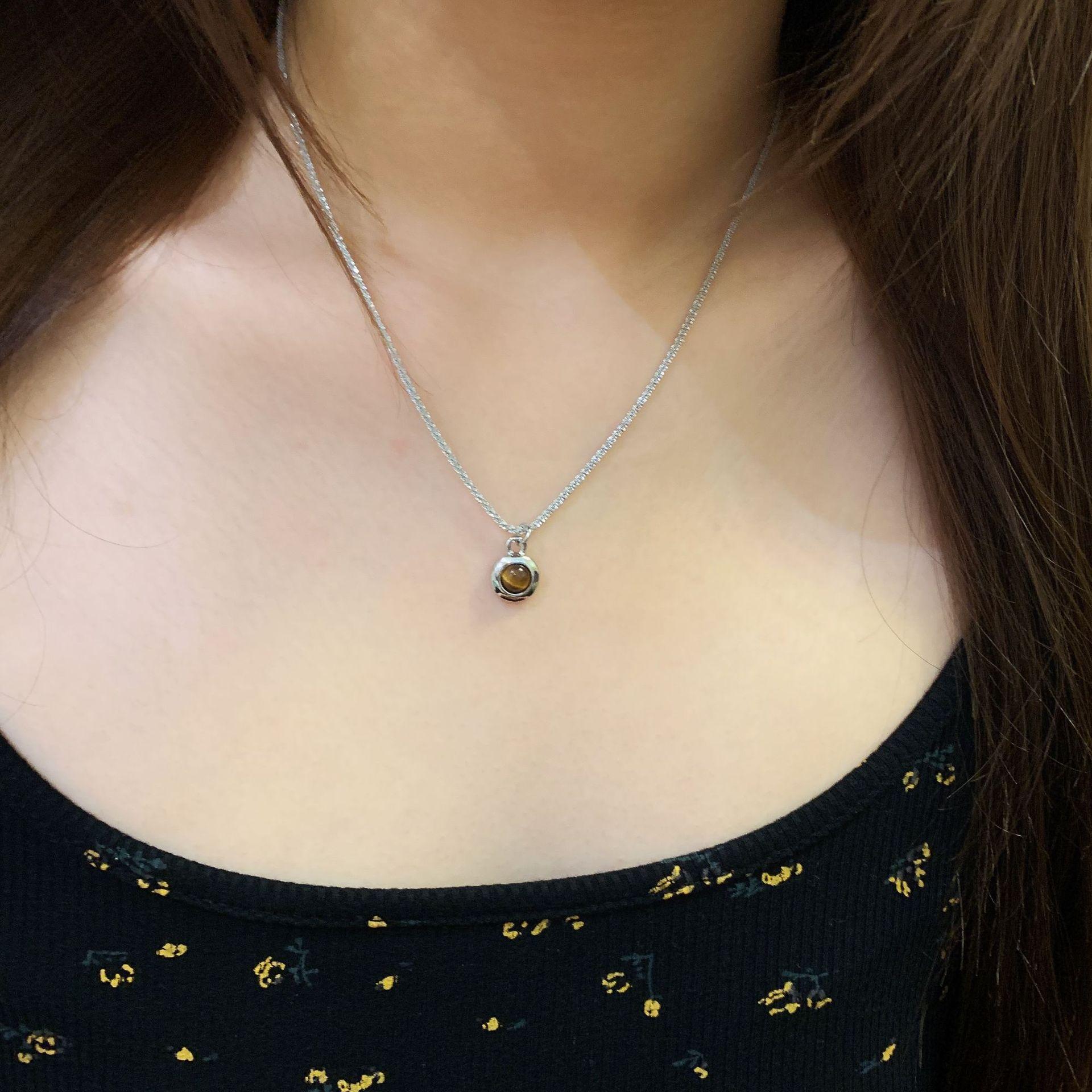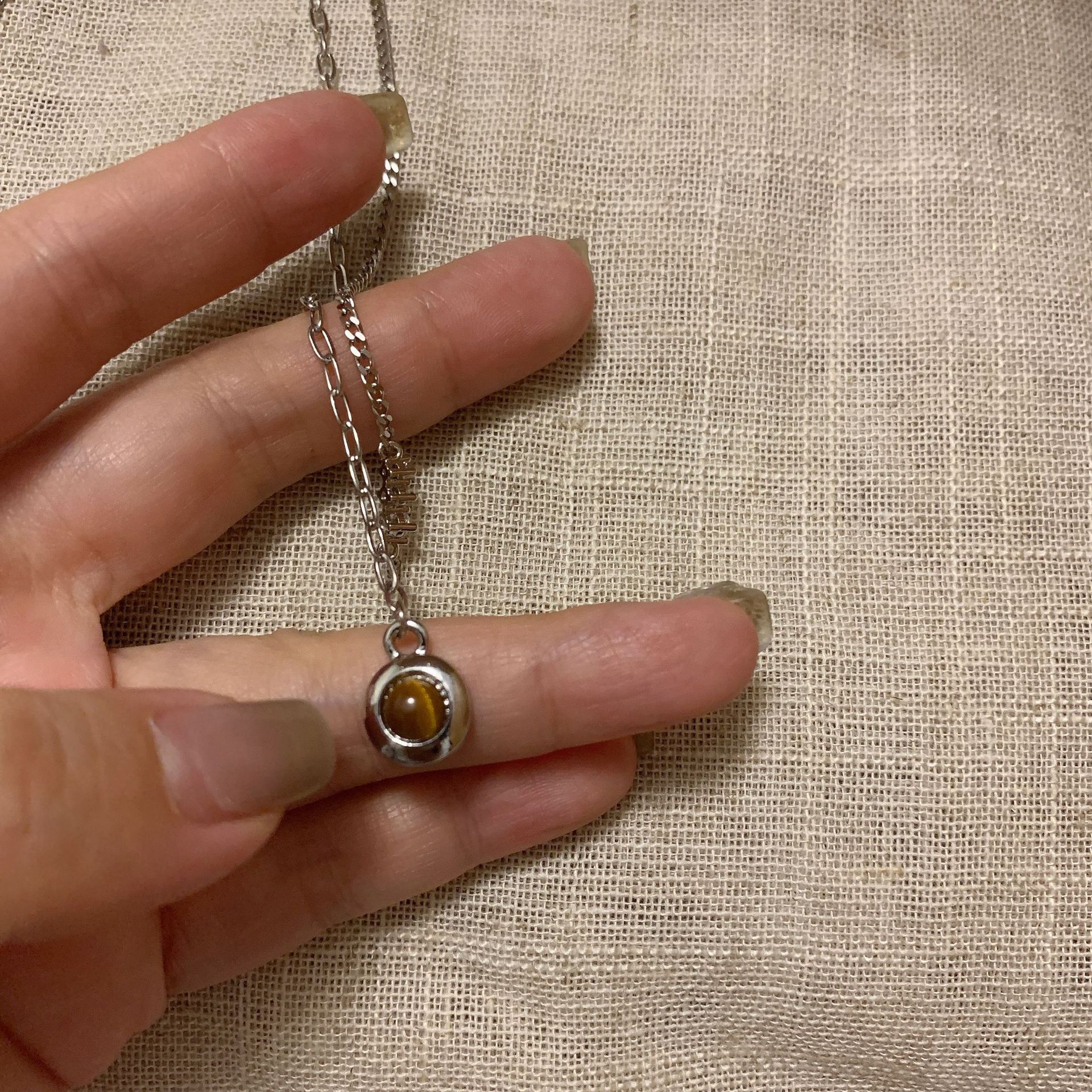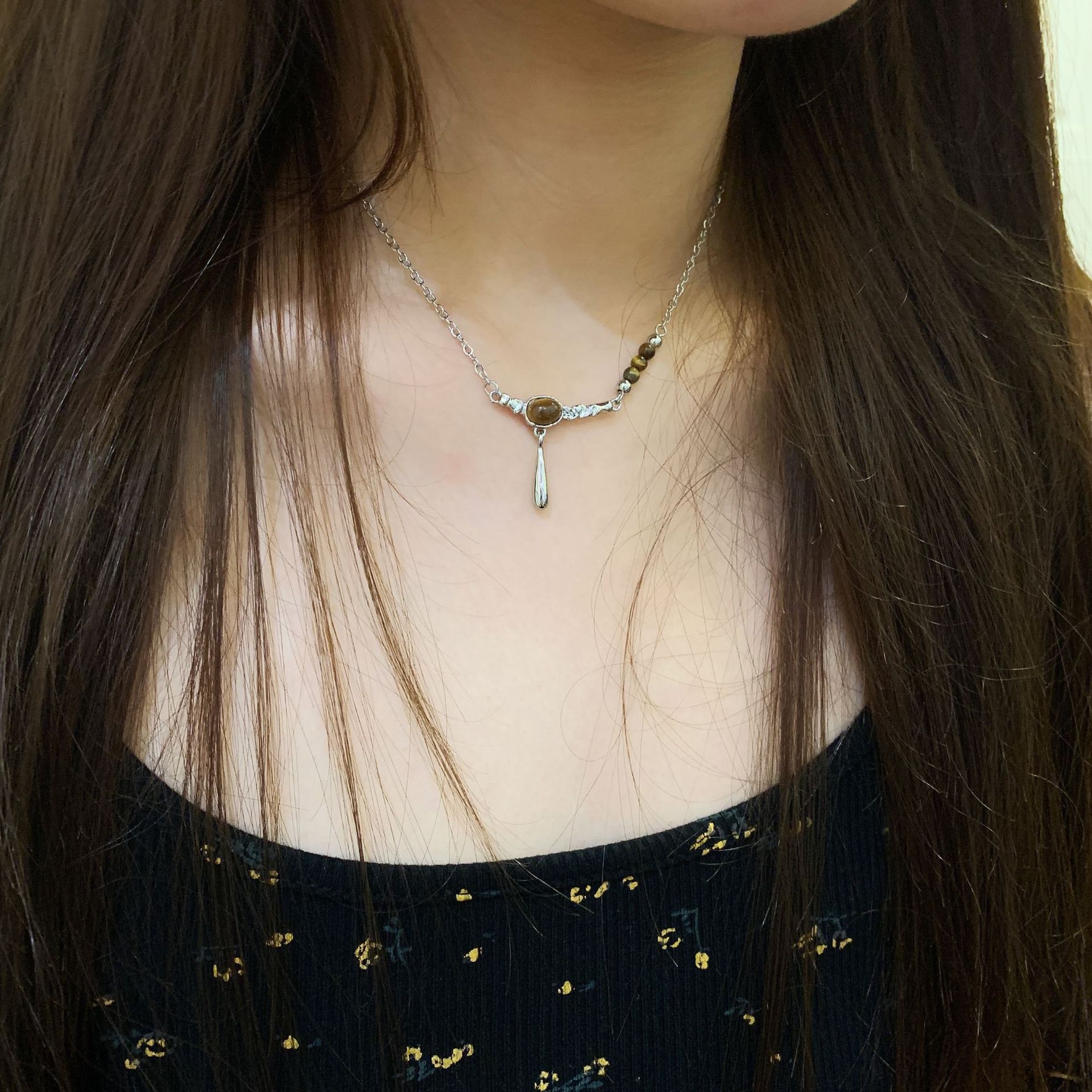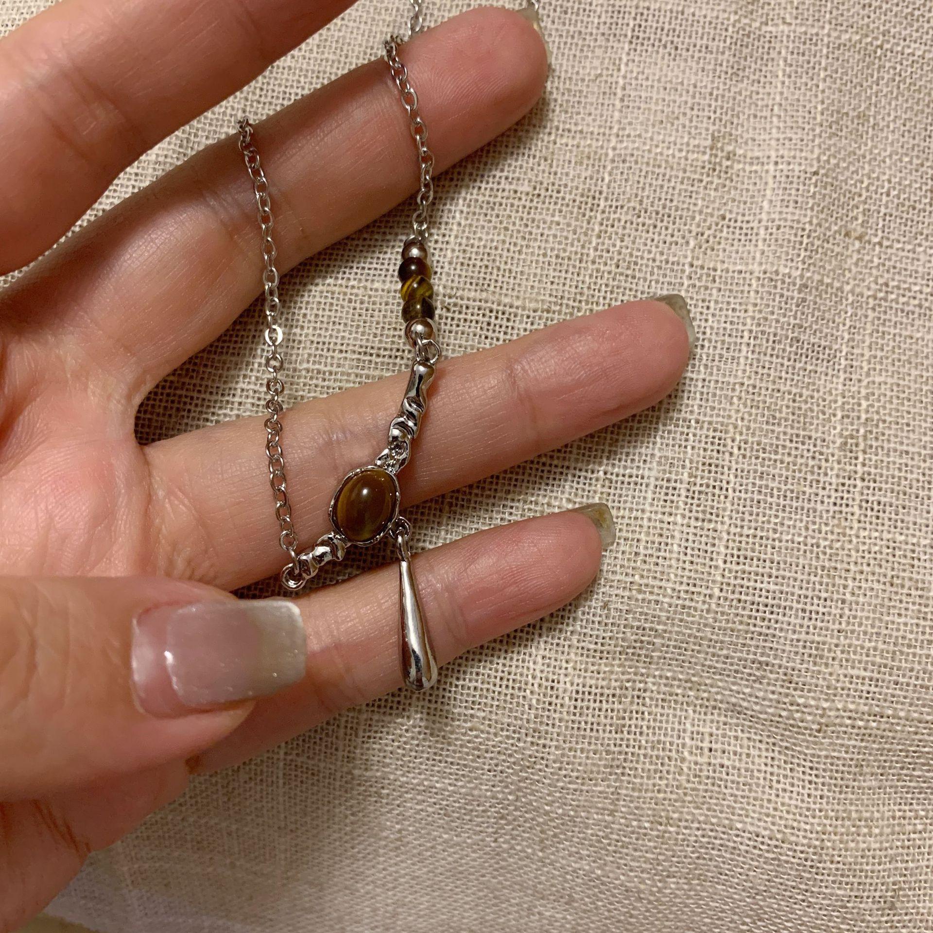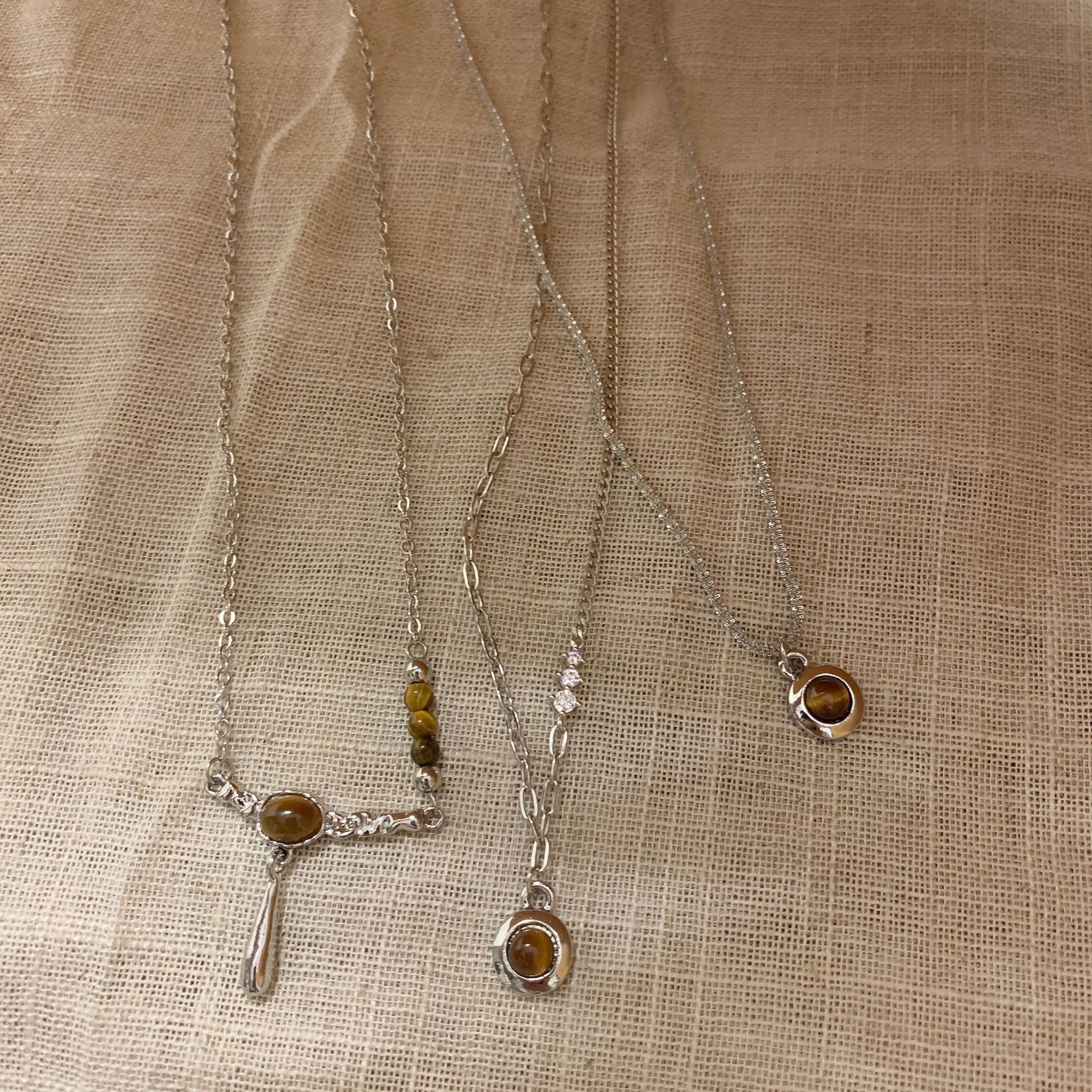 3 rhinestones tiger eye stones r, Tiger eye water drop pendant r, Thin chain, a round tiger eye stone r
