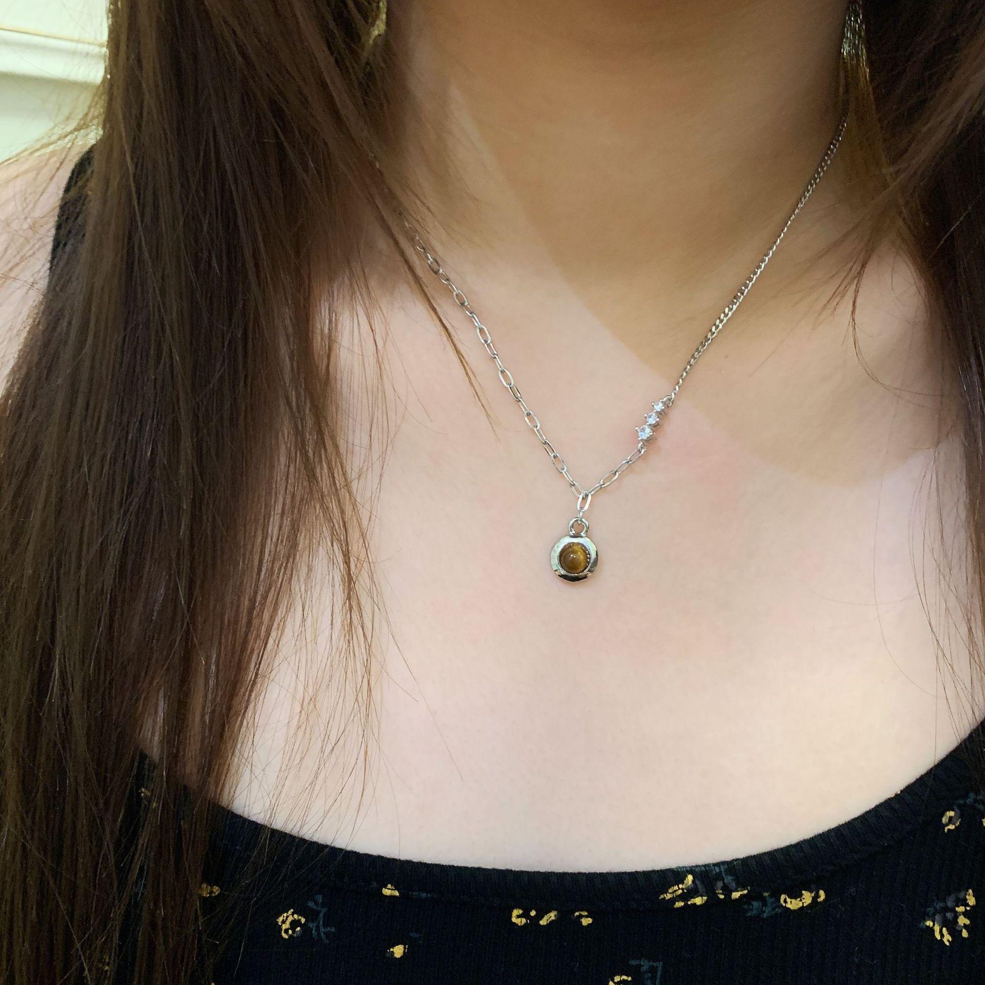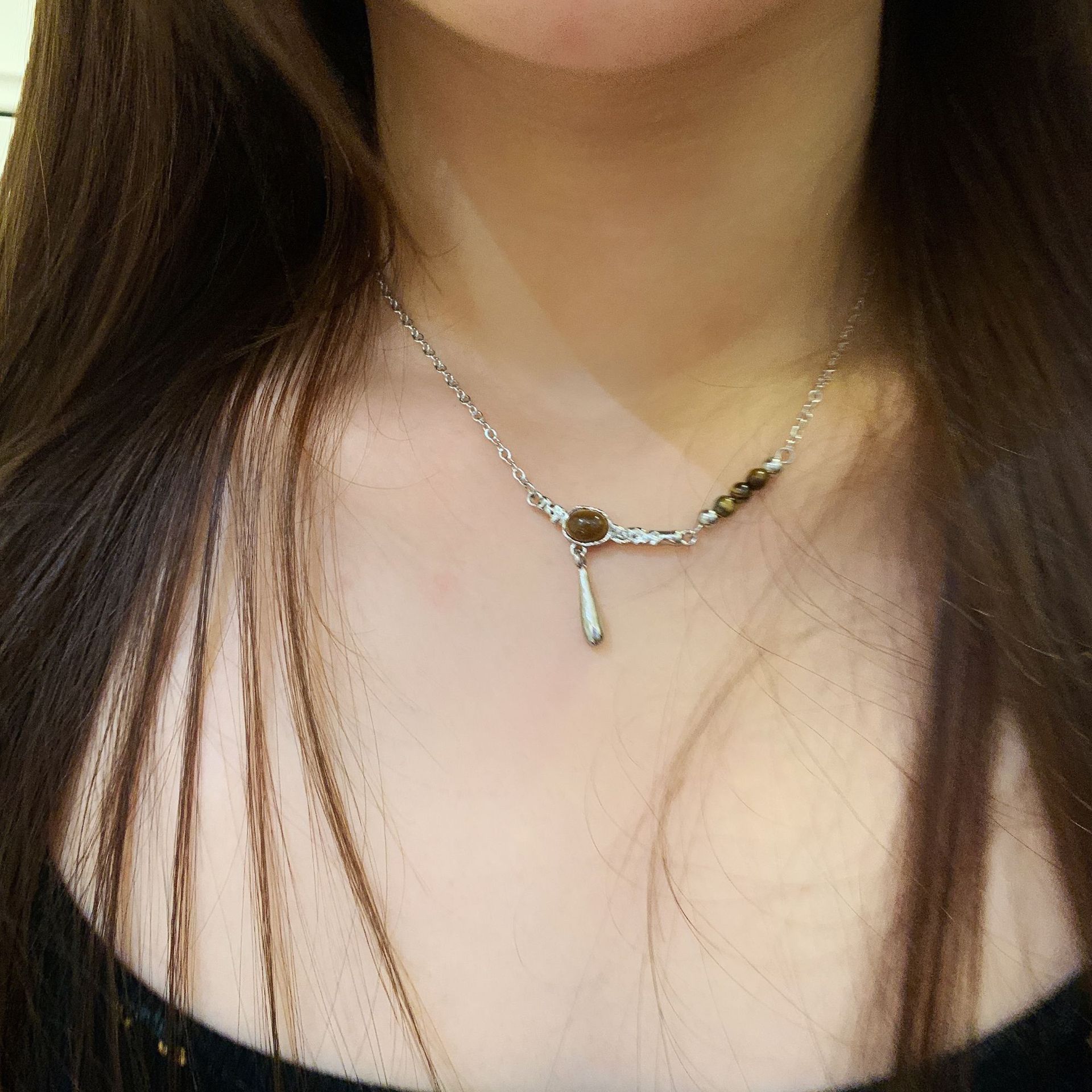 Collar vintage de piedra de ojo de tigre, ligero, de lujo, de nicho, de alta gama, con temperamento, cadena de clavícula de otoño e invierno, estilo retro 2024.