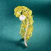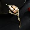 Broche de hoja de loto de alta gama de estilo chino, con temperamento sencillo y perla de agua dulce, elegante ramillete de microcirconio.