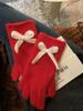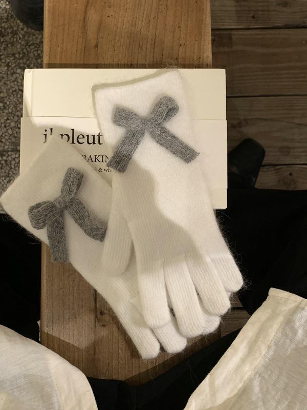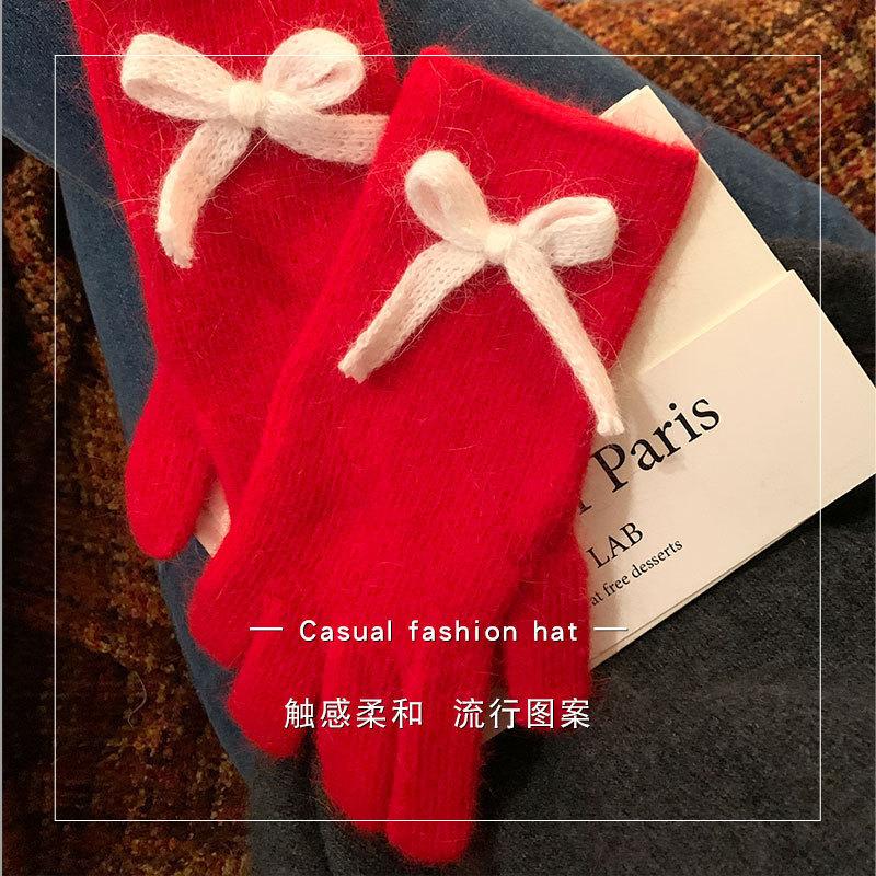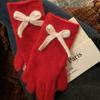 Guantes de Lazo Tejidos con Corazón para Niña Estudiantes Otoño e Invierno Montar Gruesos Cálidos Corea del Sur Exhibto Dedo Guantes Largos