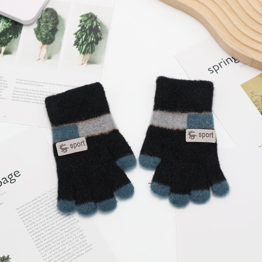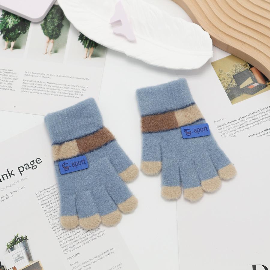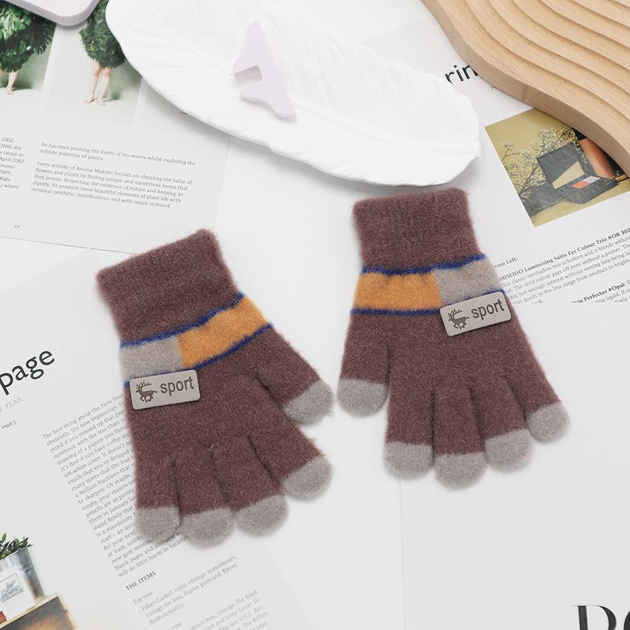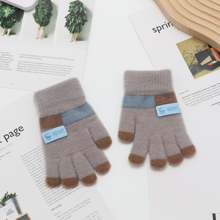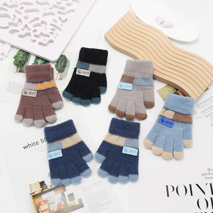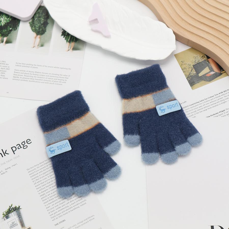 Guantes para niños, nuevos, de otoño e invierno, gruesos, cálidos, con etiqueta, bonitos, de lana para estudiantes, de punto con dedos completos.