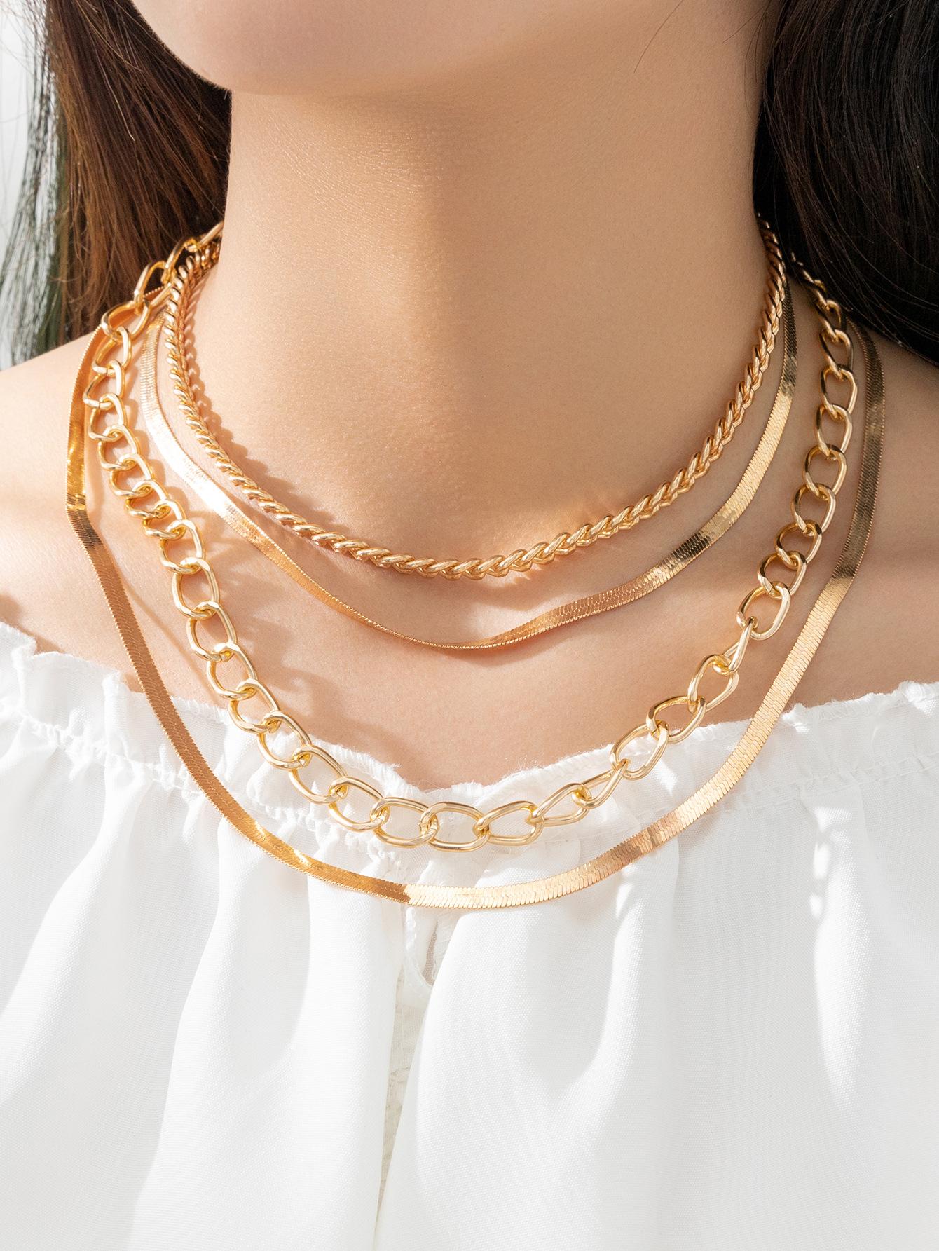 Collar de cadena de hueso de serpiente de venta caliente transfronteriza de Europa y Estados Unidos, collar de aleación versátil multicapa delicado para mujer