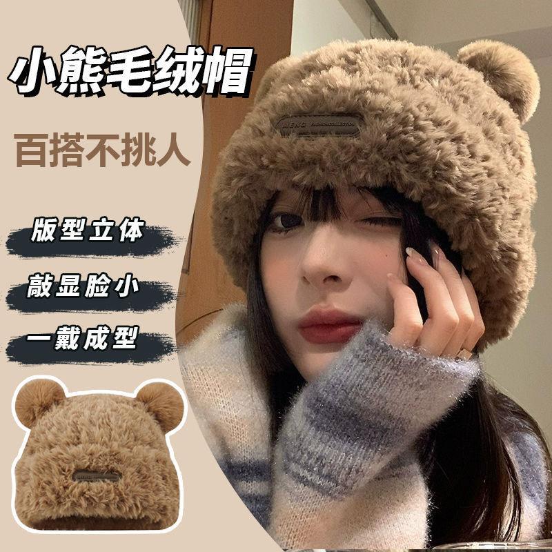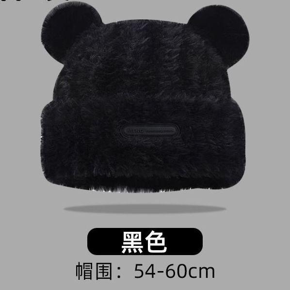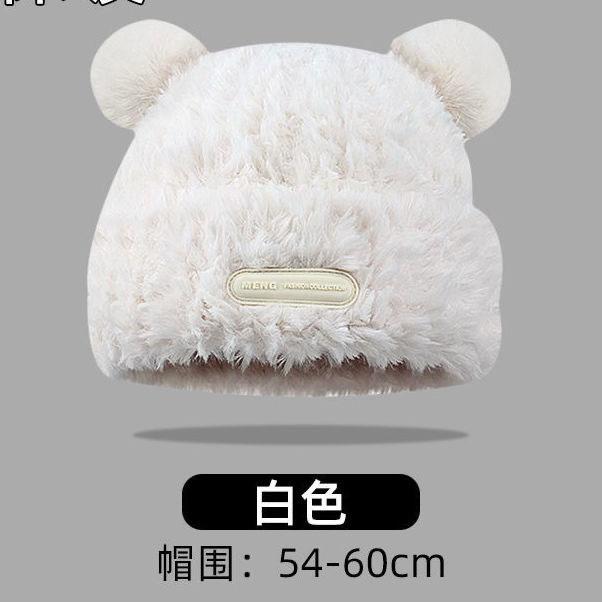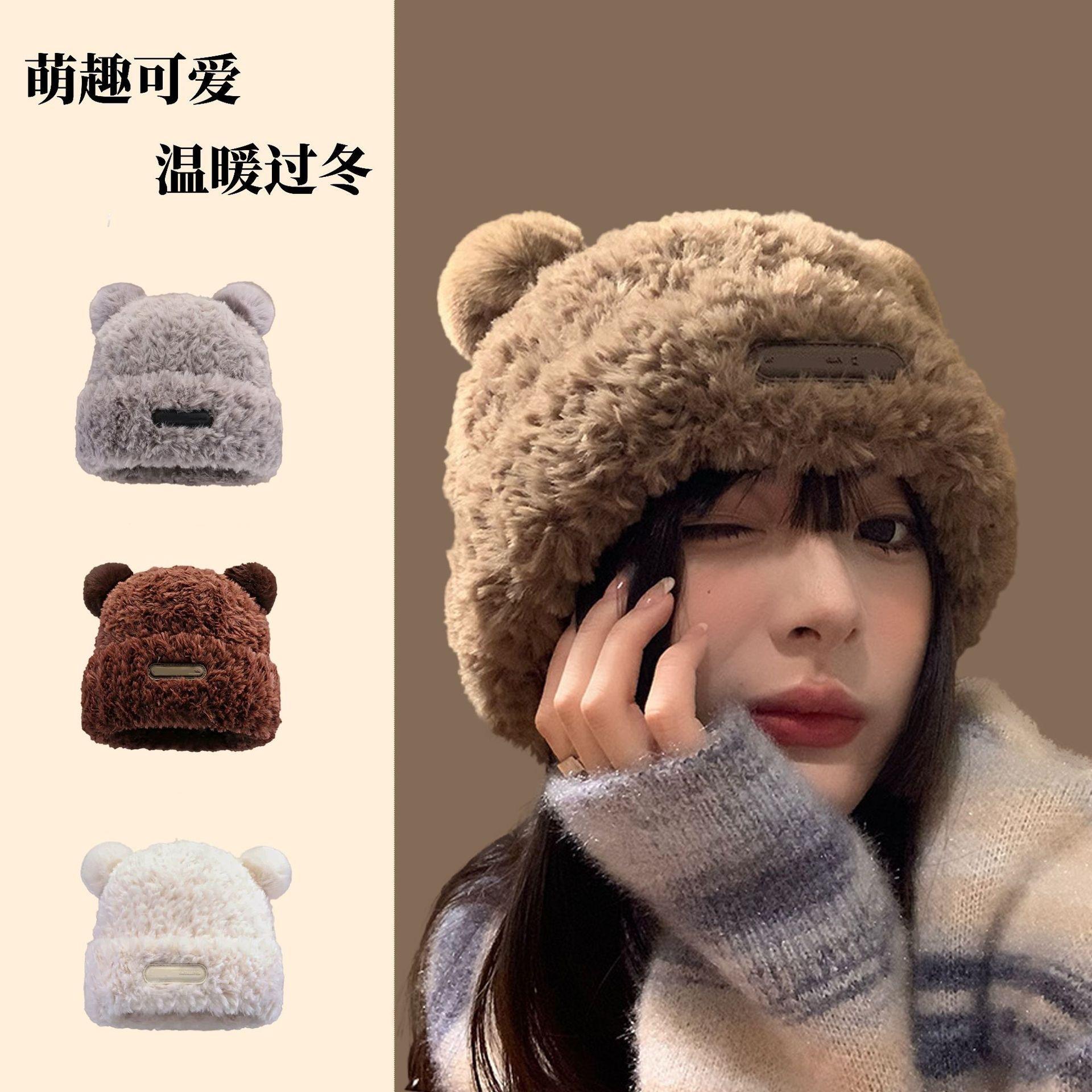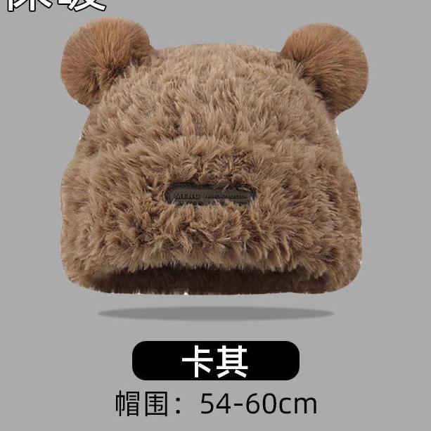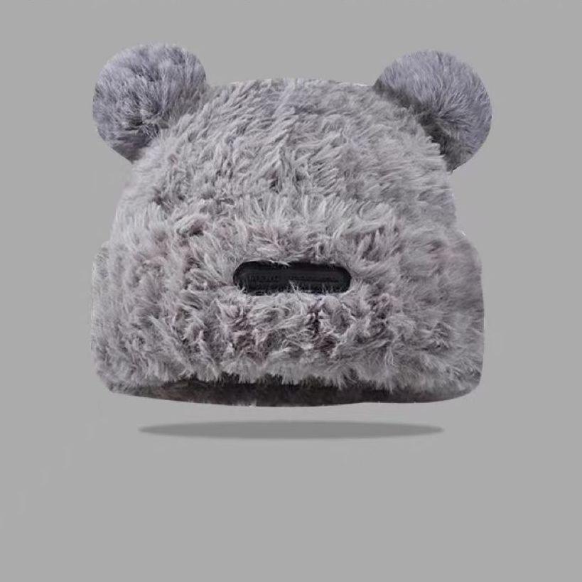Gorro de lana de punto con diseño de oso, bonito y esponjoso, combinable con todo, para invierno, nuevo, para mujer, cálido y grueso, con protección para las orejas, para la cabeza grande.