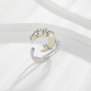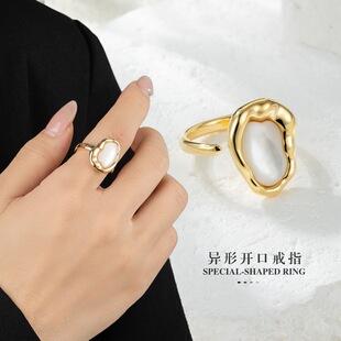 Versión coreana del anillo de luna de estilo frío con borde cruzado de cobre, concha de lava líquida irregular, apertura ajustable, accesorios con incrustaciones