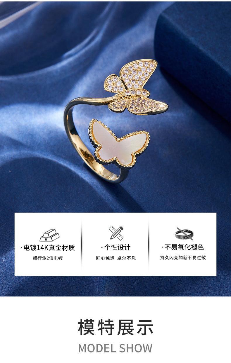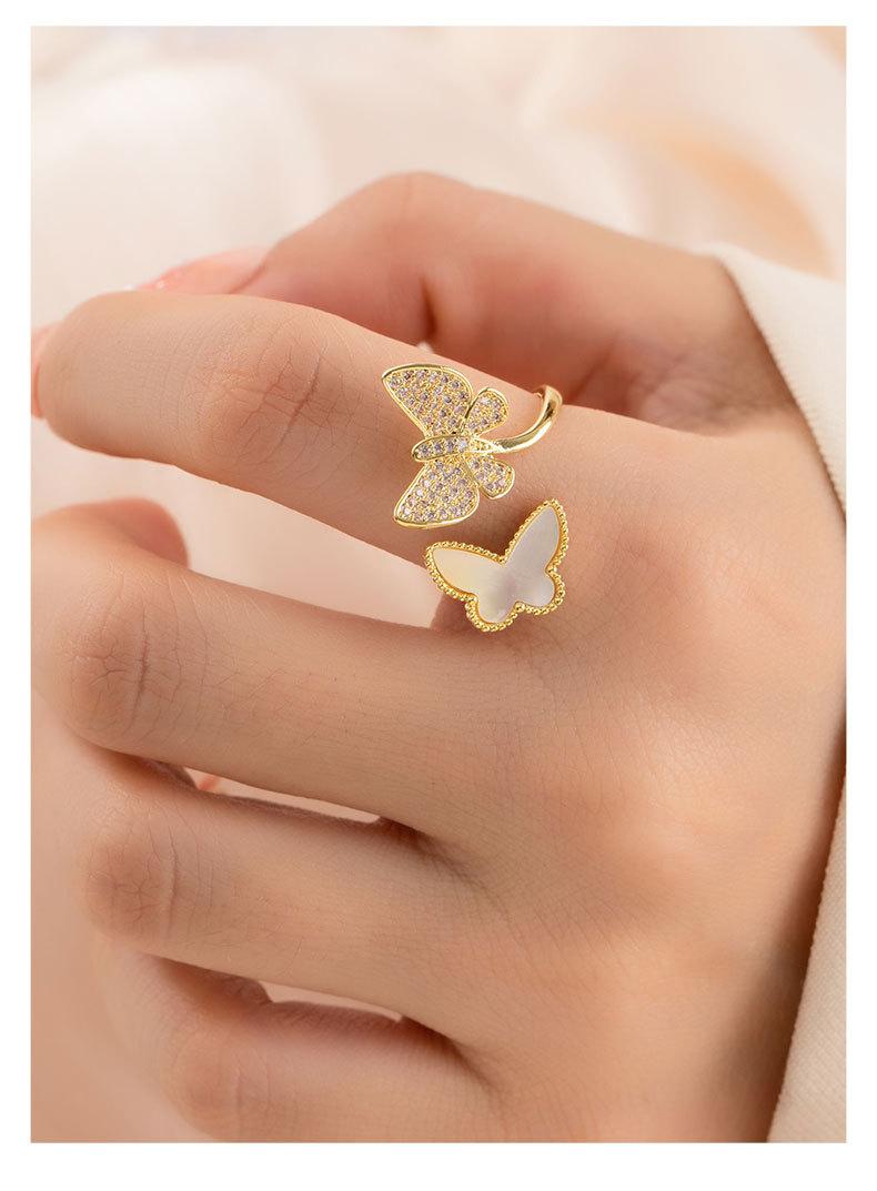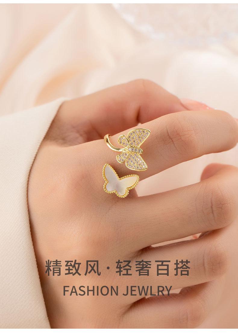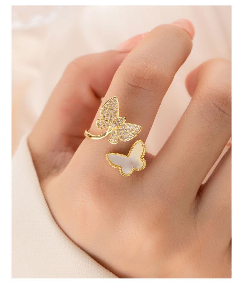 Moda Japonesa y Coreana Fritillaria Doble Mariposa Anillo Abierto Nicho de Alta Gama Micro-incrustado Anillo de Dedo de Insecto Anillo Popular de Internet