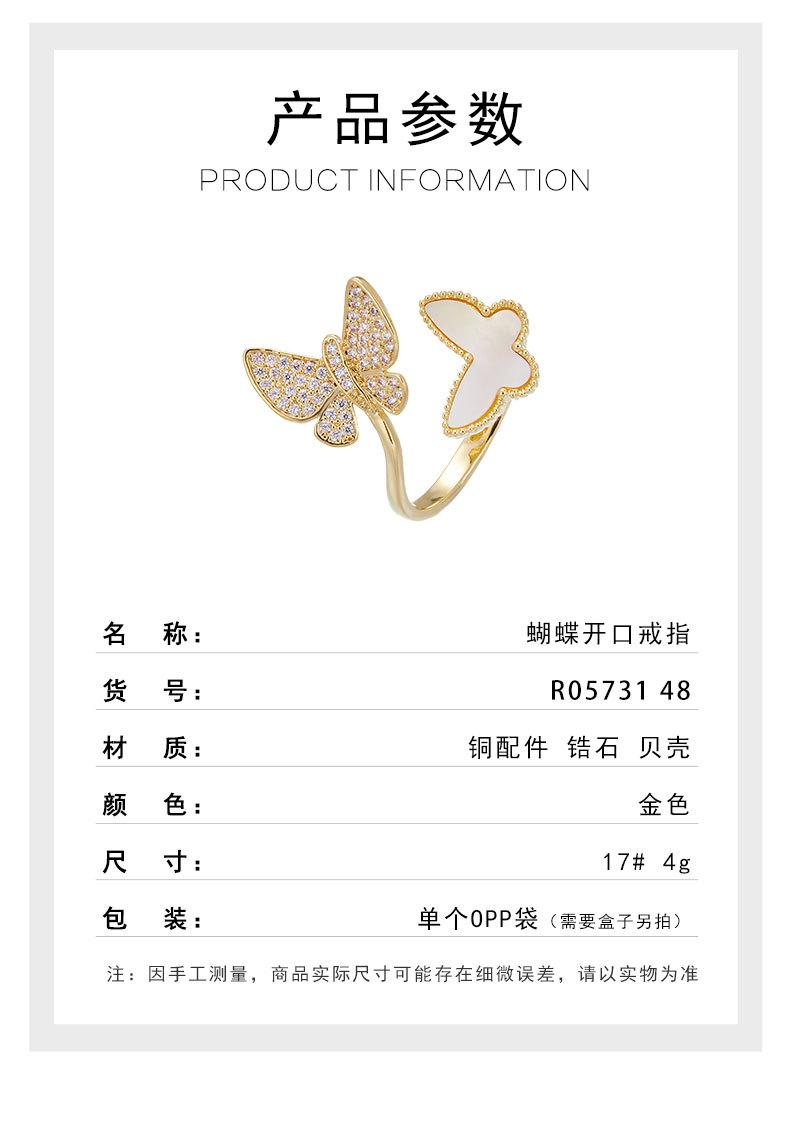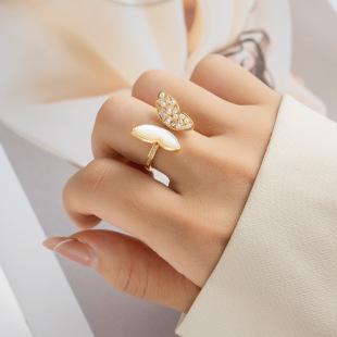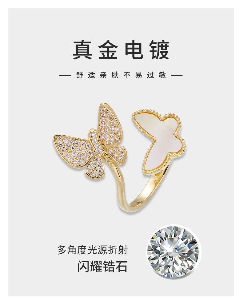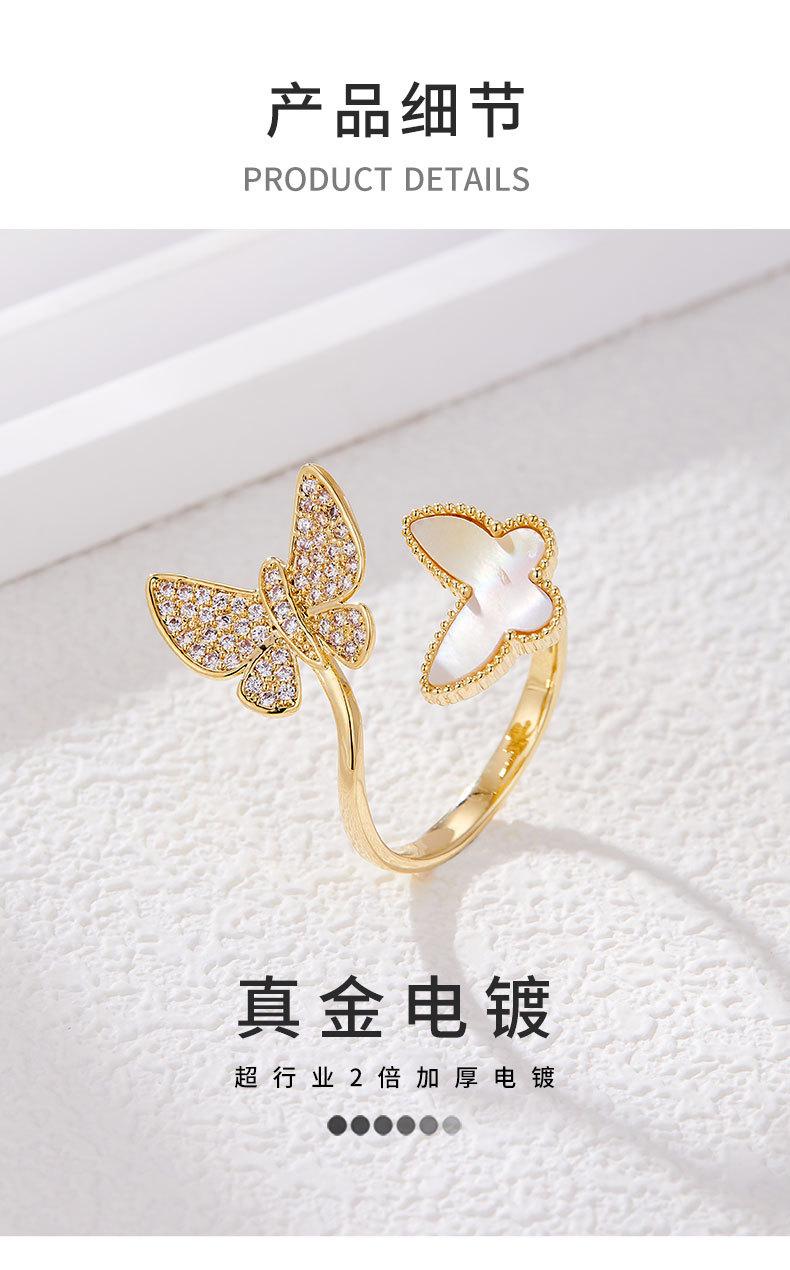 Moda Japonesa y Coreana Fritillaria Doble Mariposa Anillo Abierto Nicho de Alta Gama Micro-incrustado Anillo de Dedo de Insecto Anillo Popular de Internet
