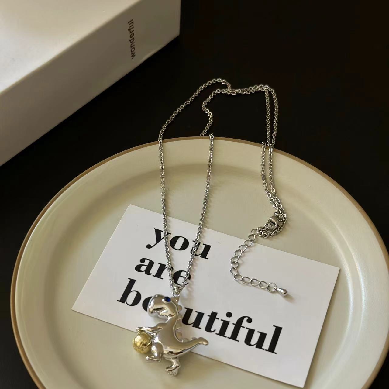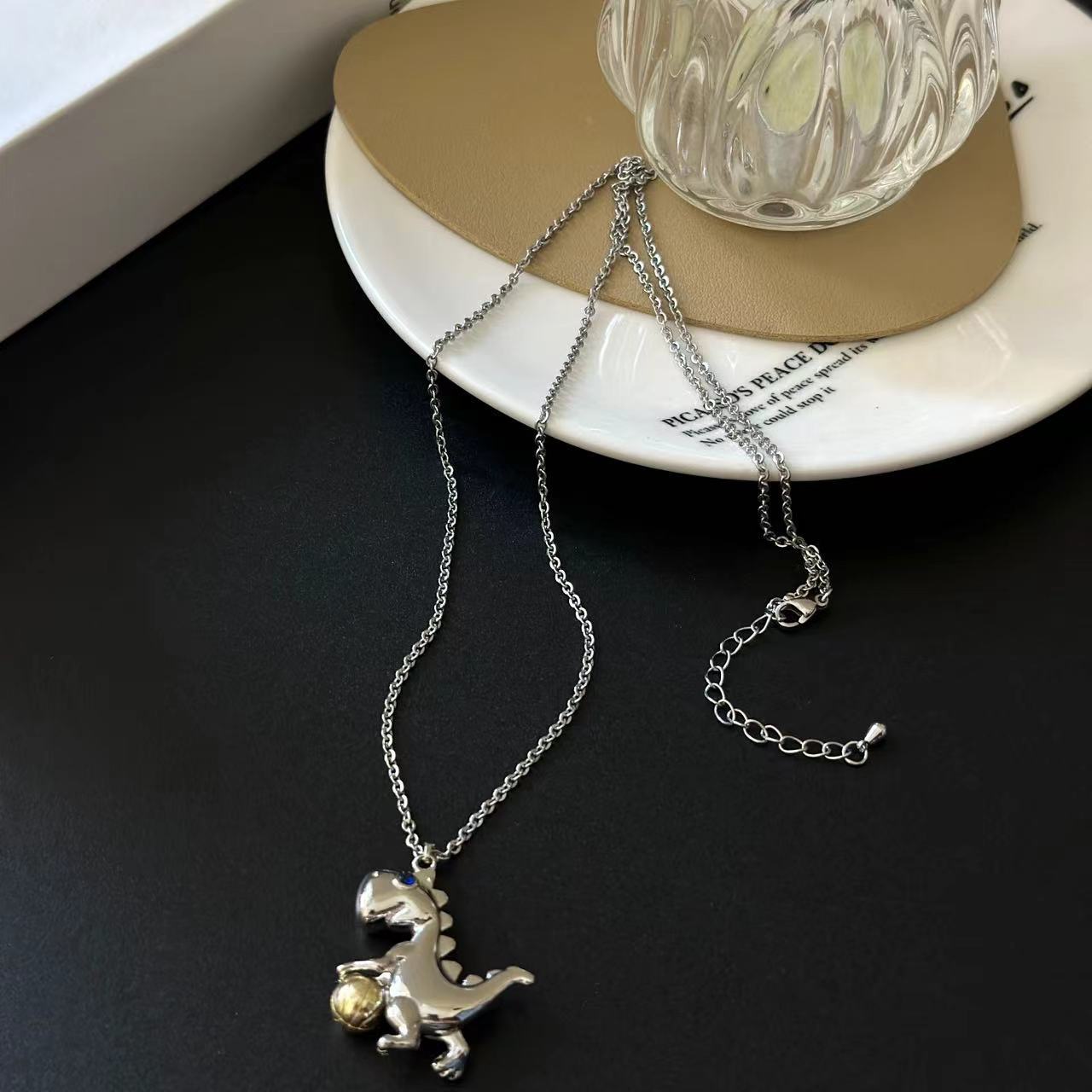 Collar con colgante de dinosaurio pequeño y divertido de dibujos animados para niños, collar de Joker de estilo hip-hop con viento frío para mujer, venta al por mayor