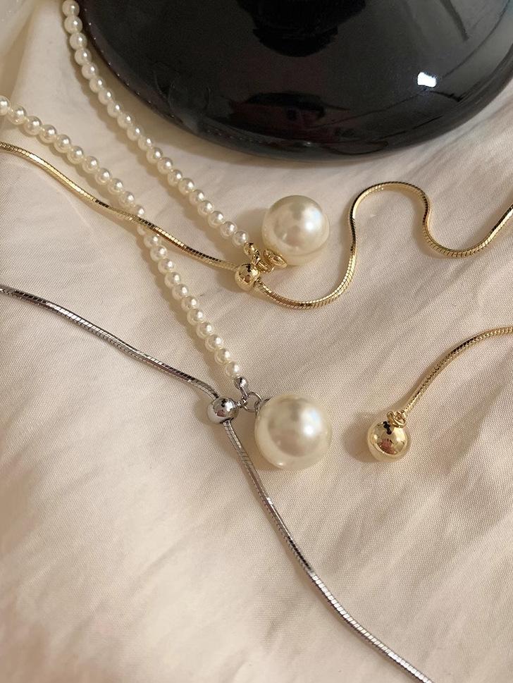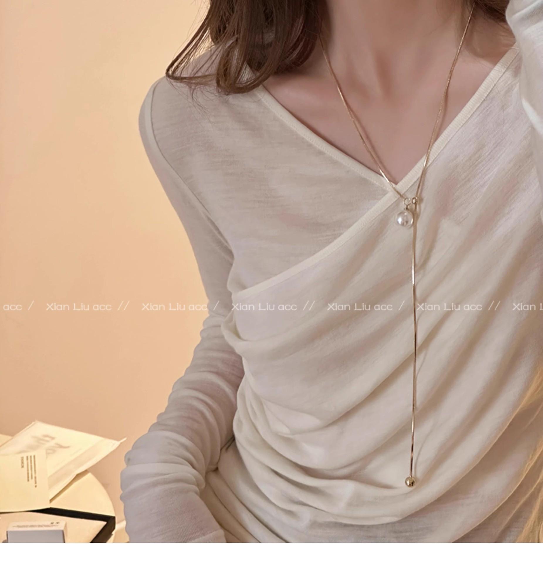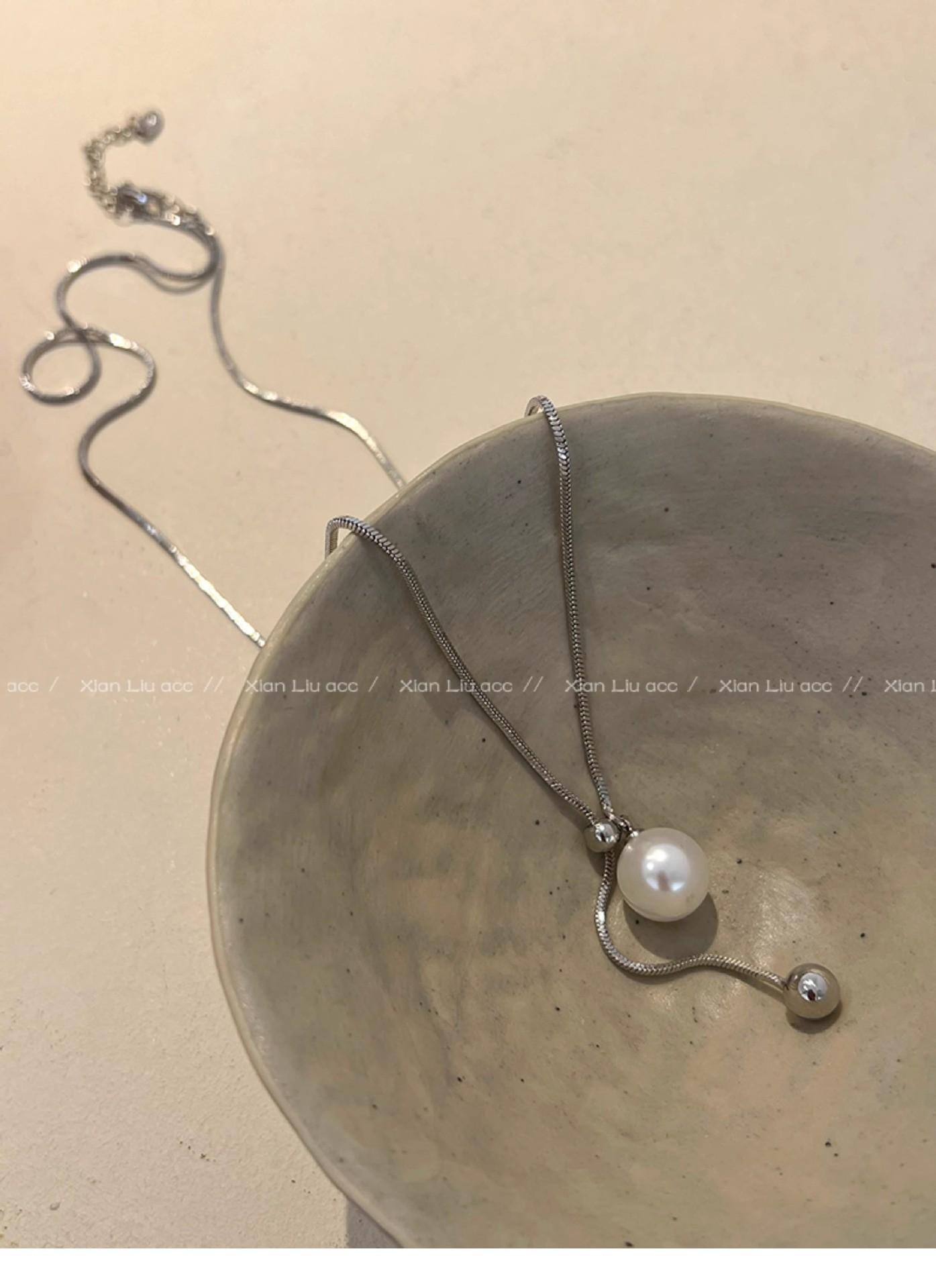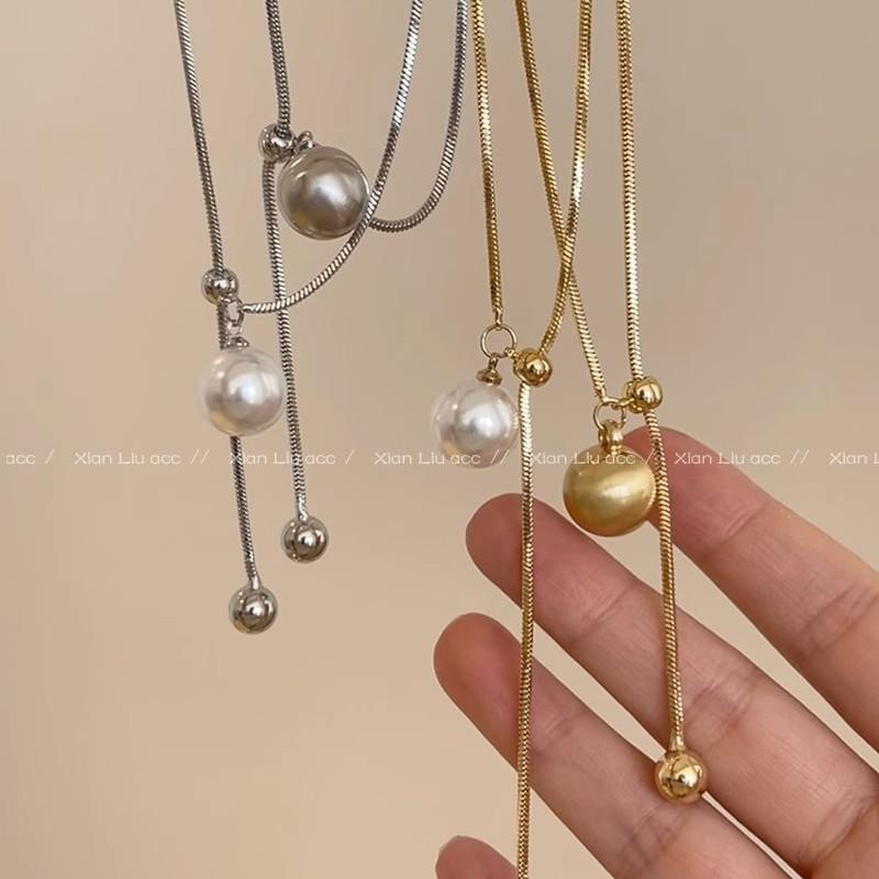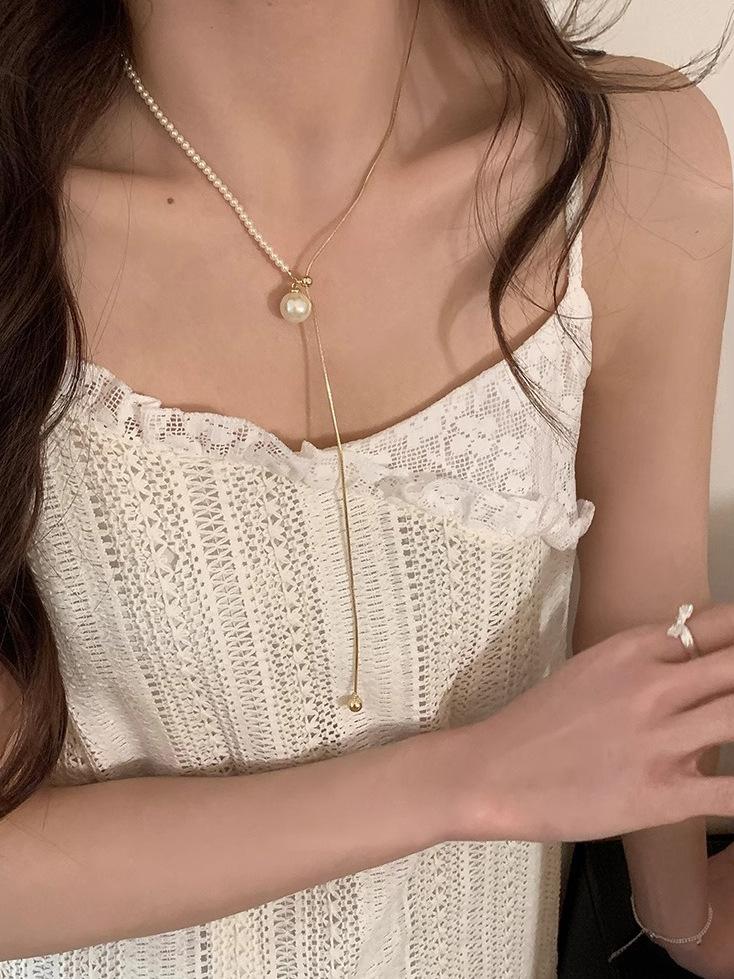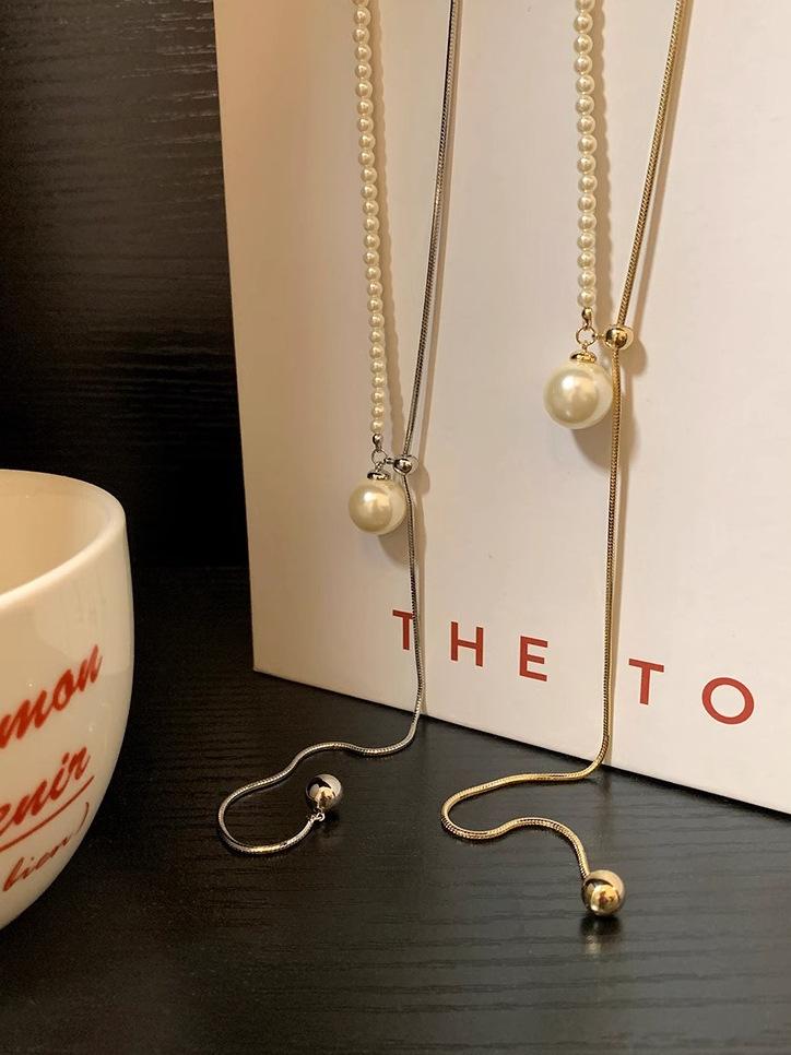 Silver pearl pull necklace, Gold pearl pull necklace, Silver long pearl necklace, Gold long pearl necklace, Si...