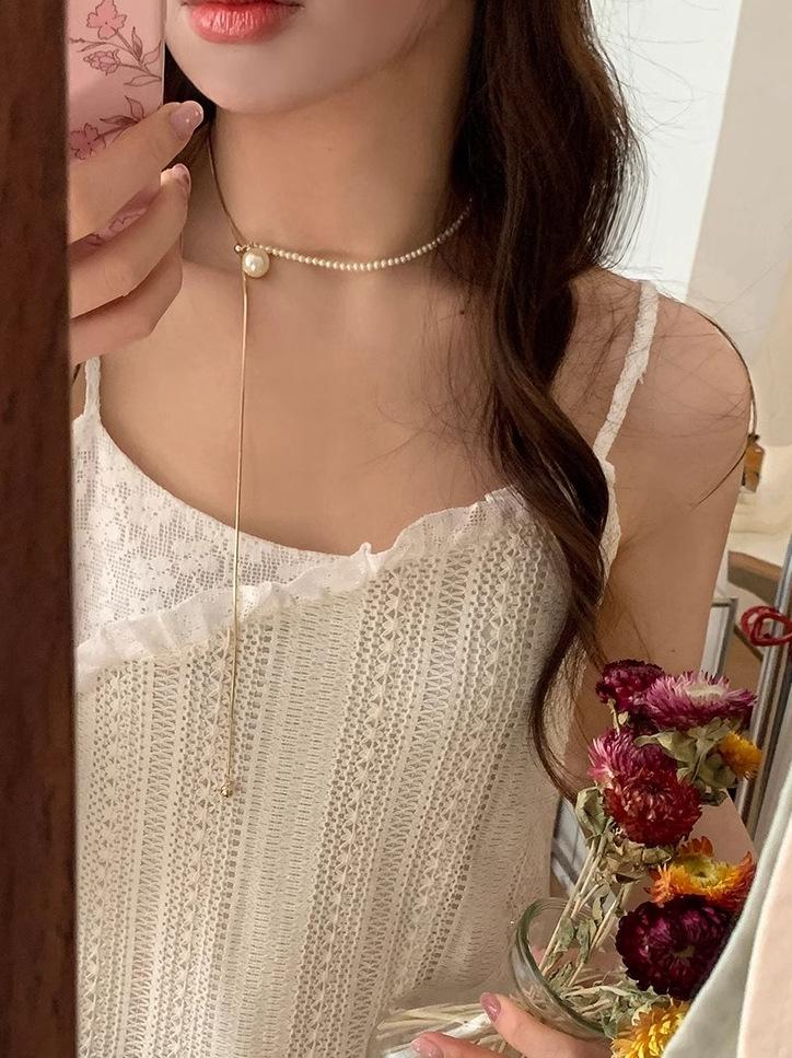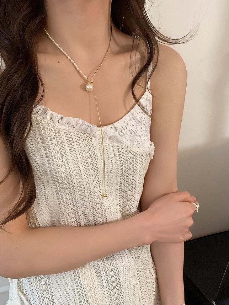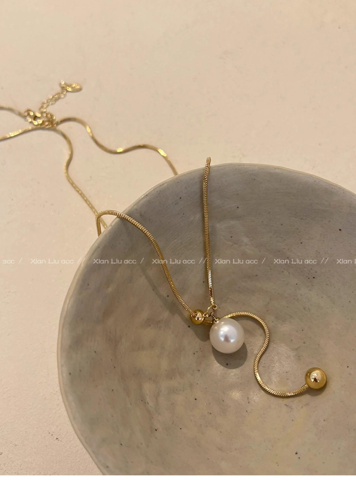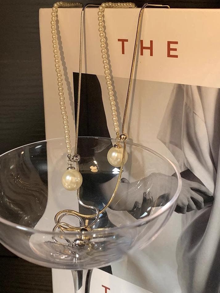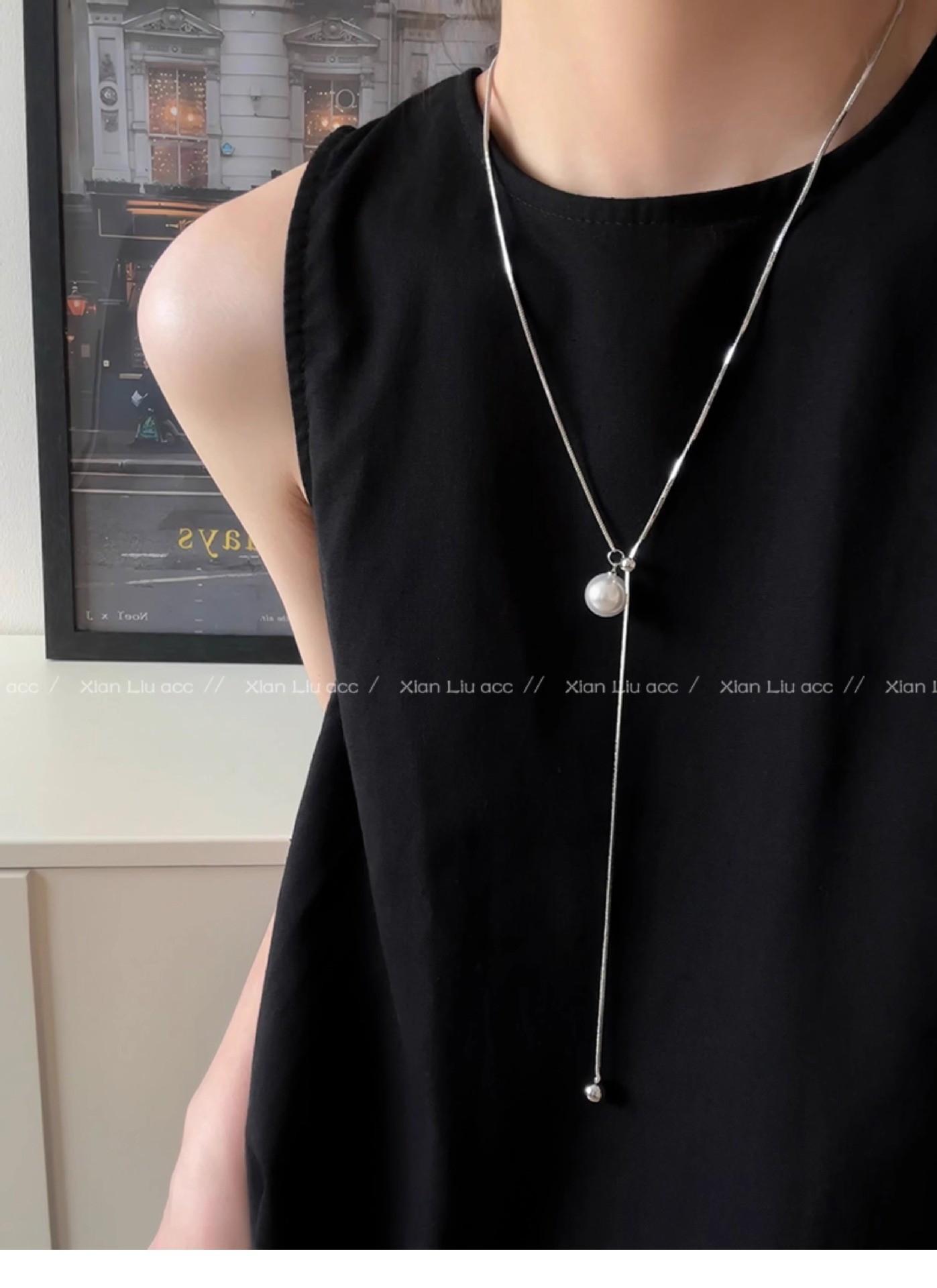 Silver pearl pull necklace, Gold pearl pull necklace, Silver long pearl necklace, Gold long pearl necklace, Si...