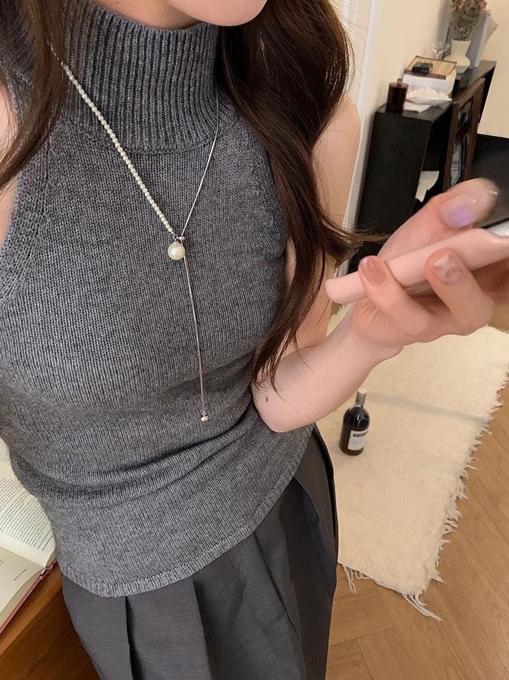 Collar Largo de Perlas Cadena de Hueso de Serpiente Suéter de Cadena con Tirador Lujo Accesible Nicho Simple Clásico Versátil Elegante para Mujer