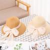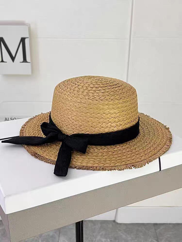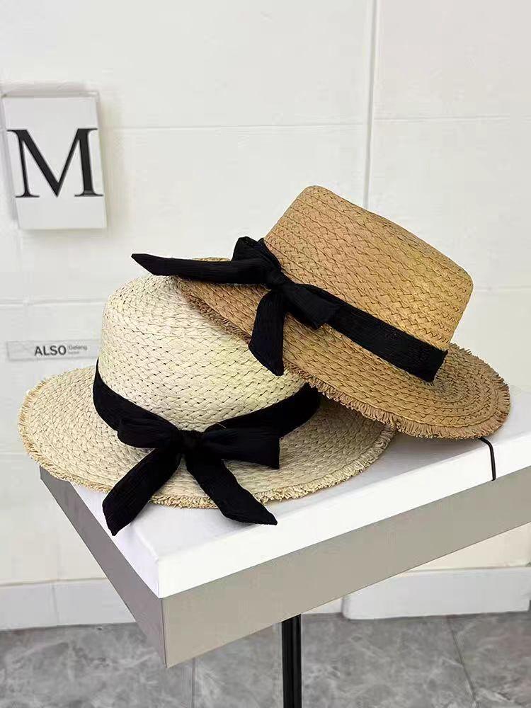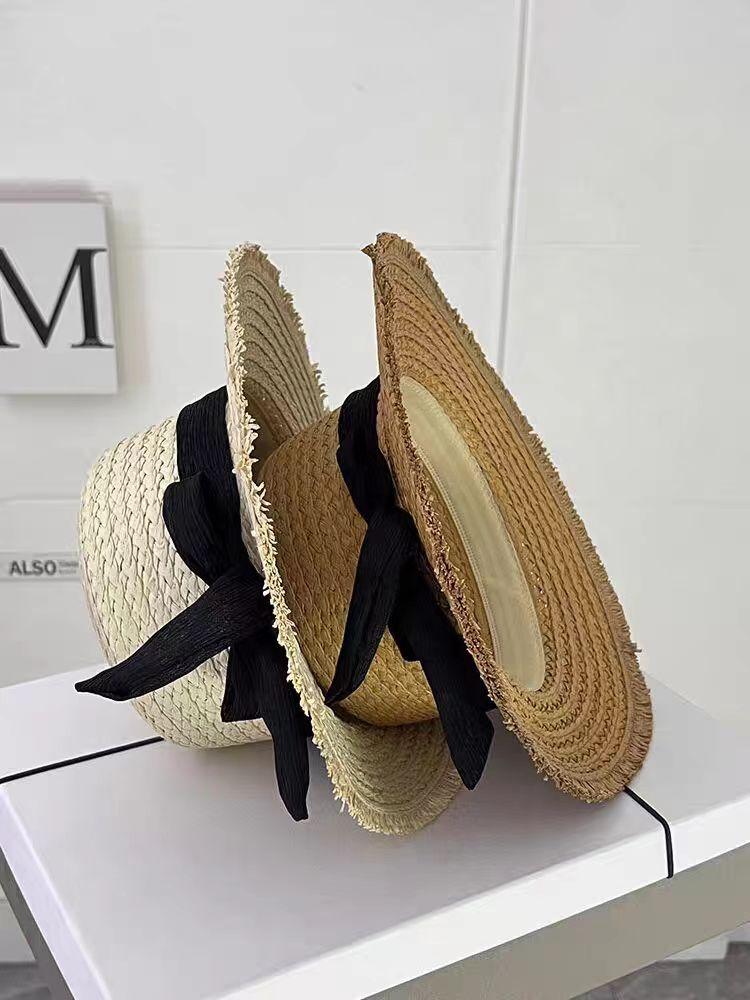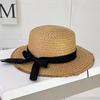 Sombrero de playa para viajes junto al mar, sombrero de copa de paja con parte superior plana, sombrero de paja transpirable y cómodo, sombrero de sombrilla de verano para mujer con lazo