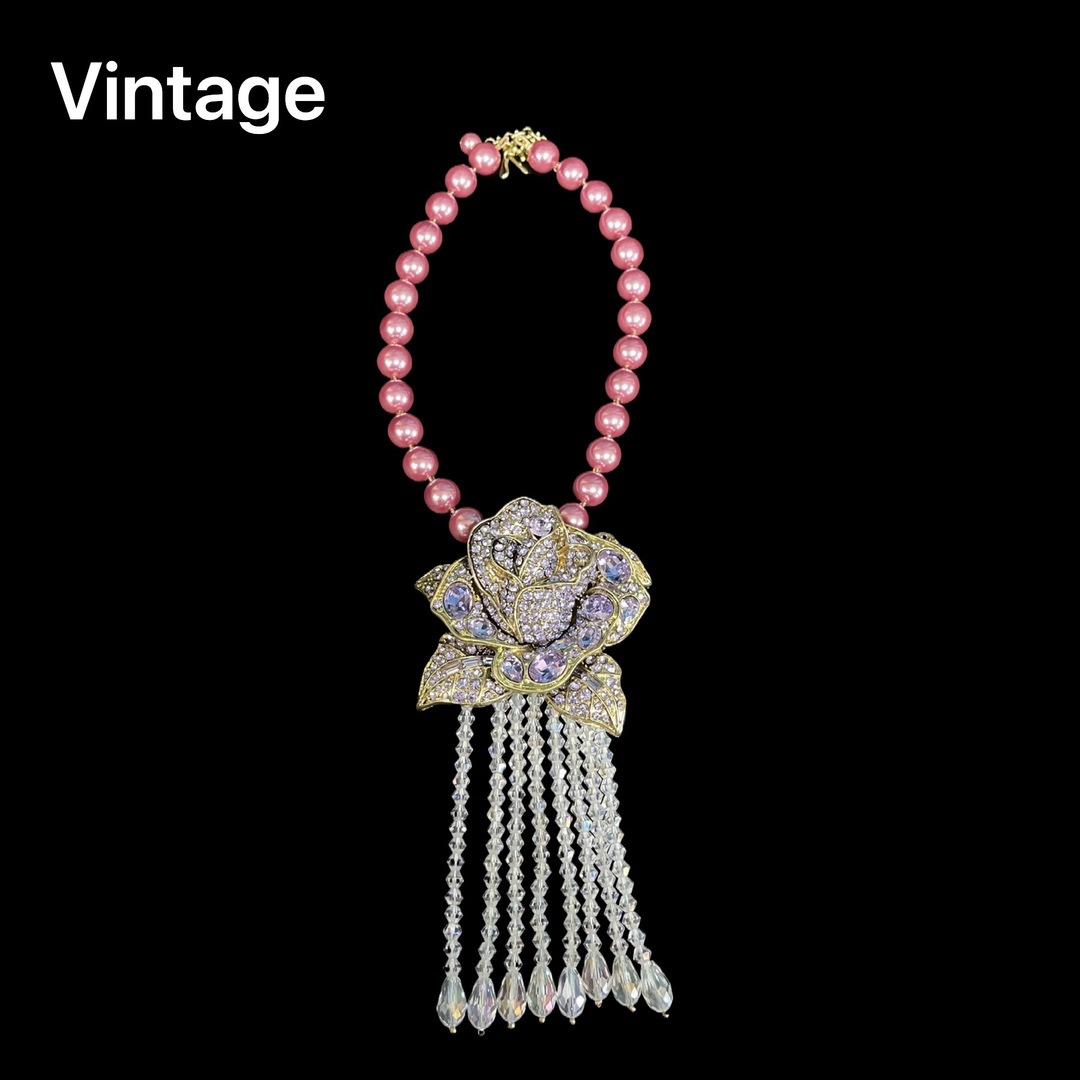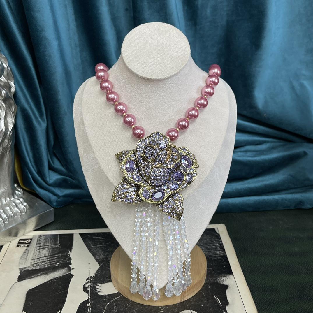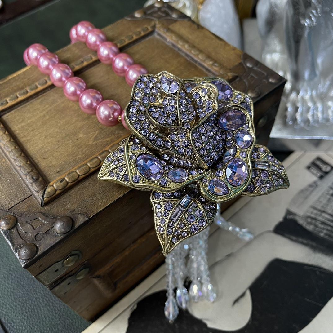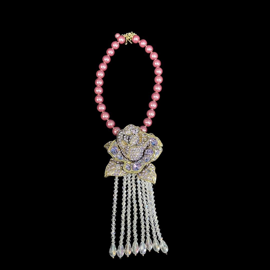 [Miel del Sur] Collar vintage antiguo de lujo, ligero y moderno, con borlas rosas y diamantes de imitación.