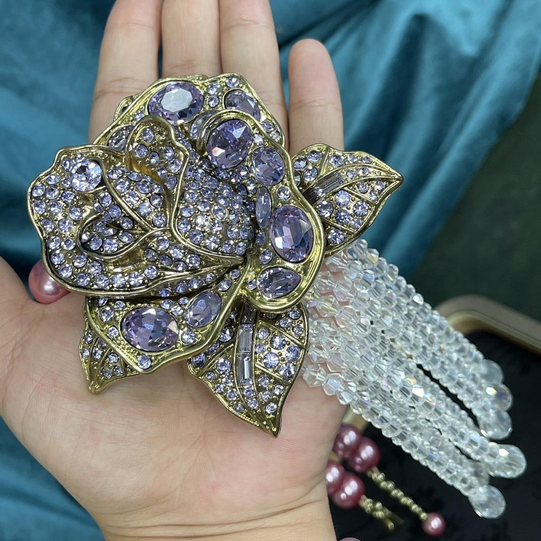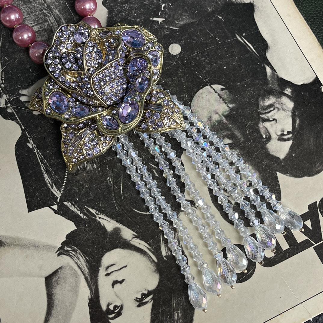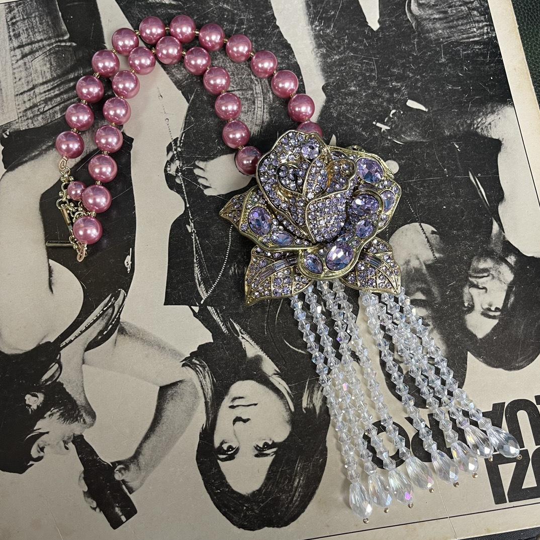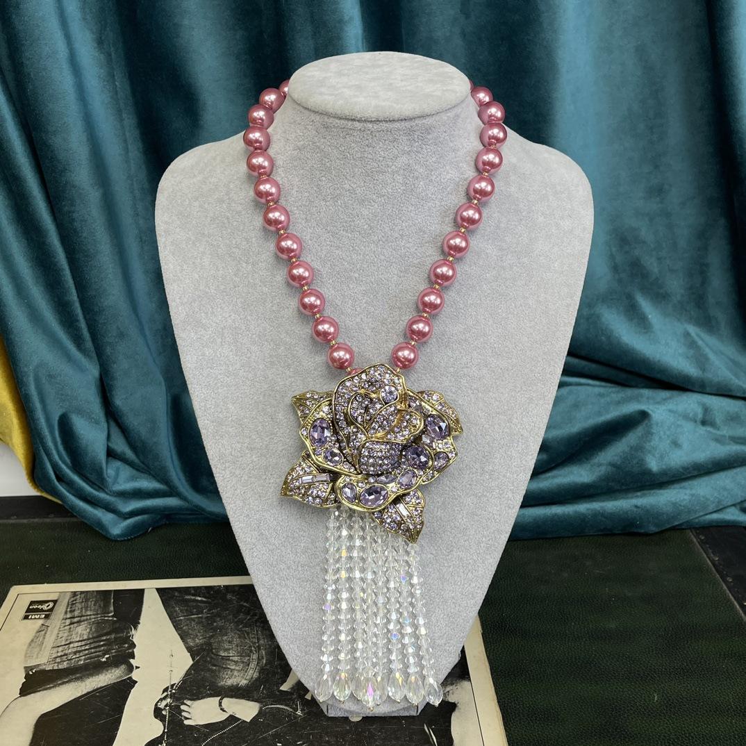 [Miel del Sur] Collar vintage antiguo de lujo, ligero y moderno, con borlas rosas y diamantes de imitación.