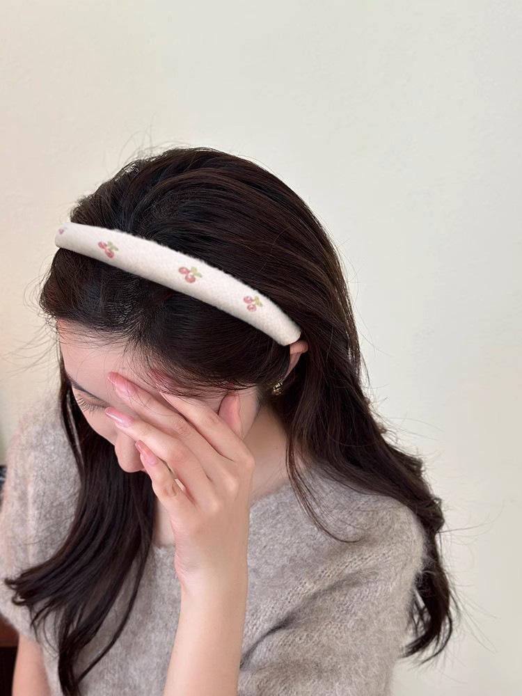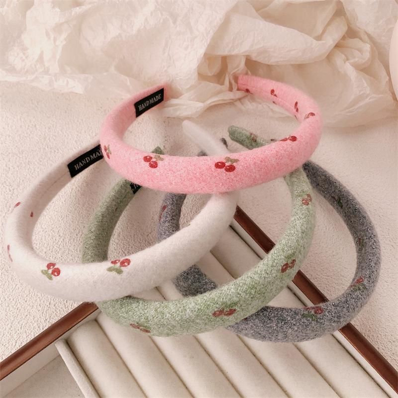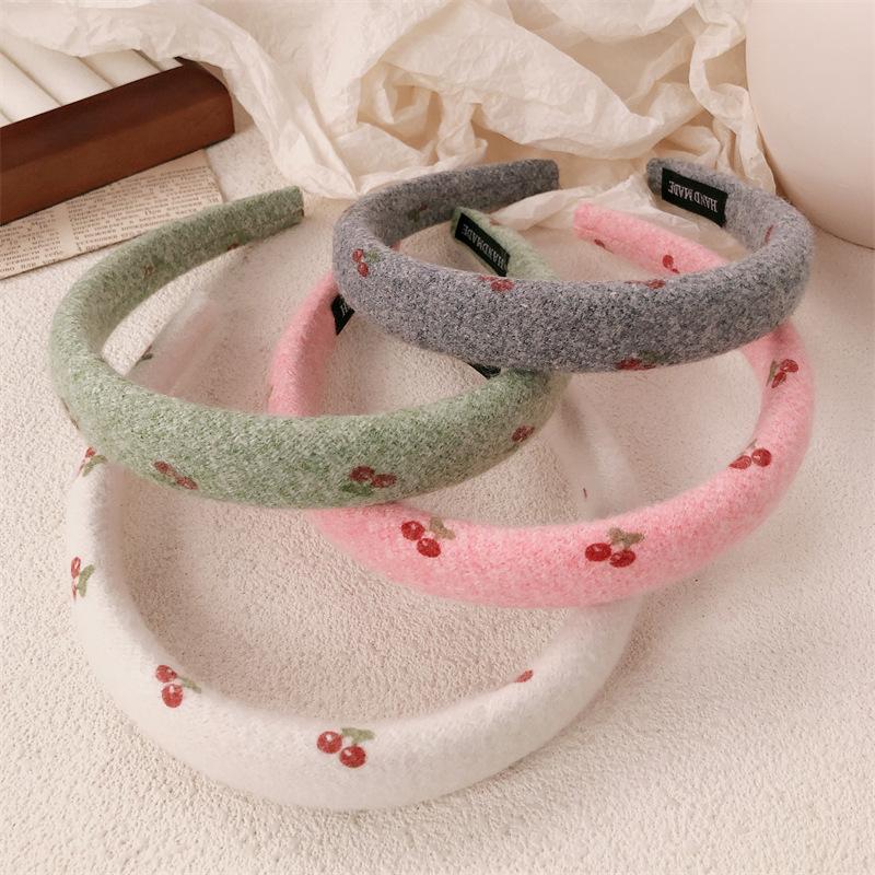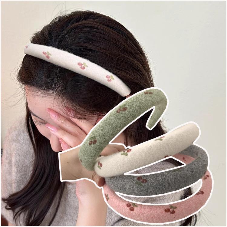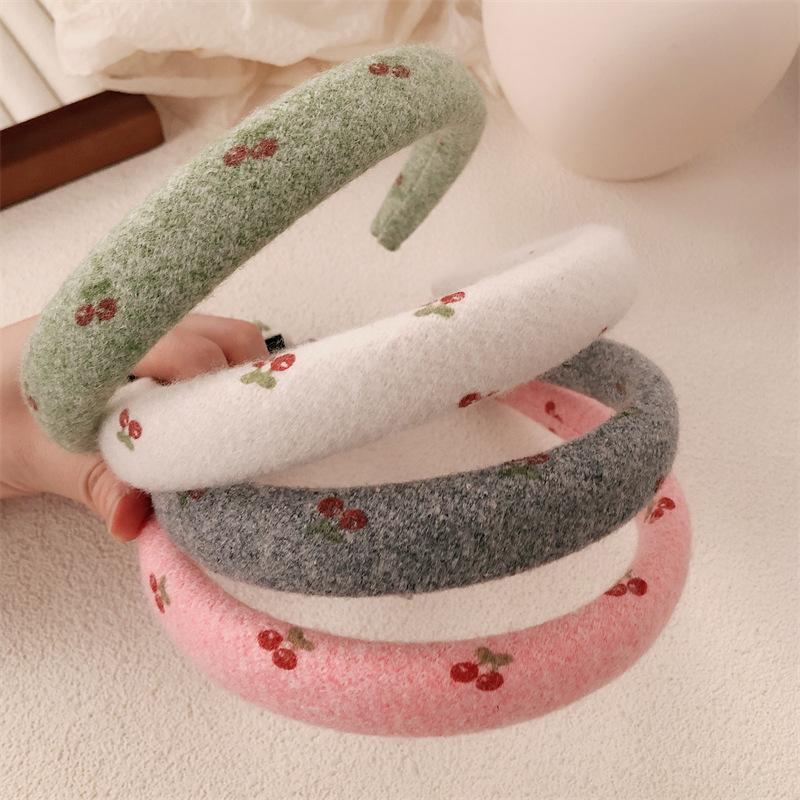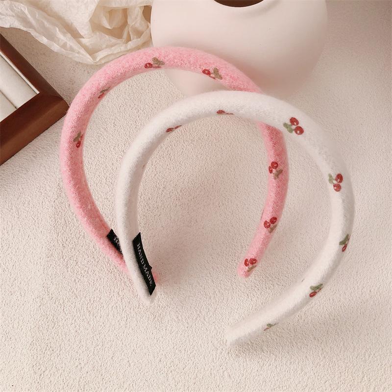 Diadema de Cereza de Felpa para Mujer Corea del Sur Simple Nuevo Estilo Flequillo Color Diadema para la Cabeza Top Craneal Alto Adorno para la Cabeza Banda para el Cabello Lavar la Cara Nuevo Estilo