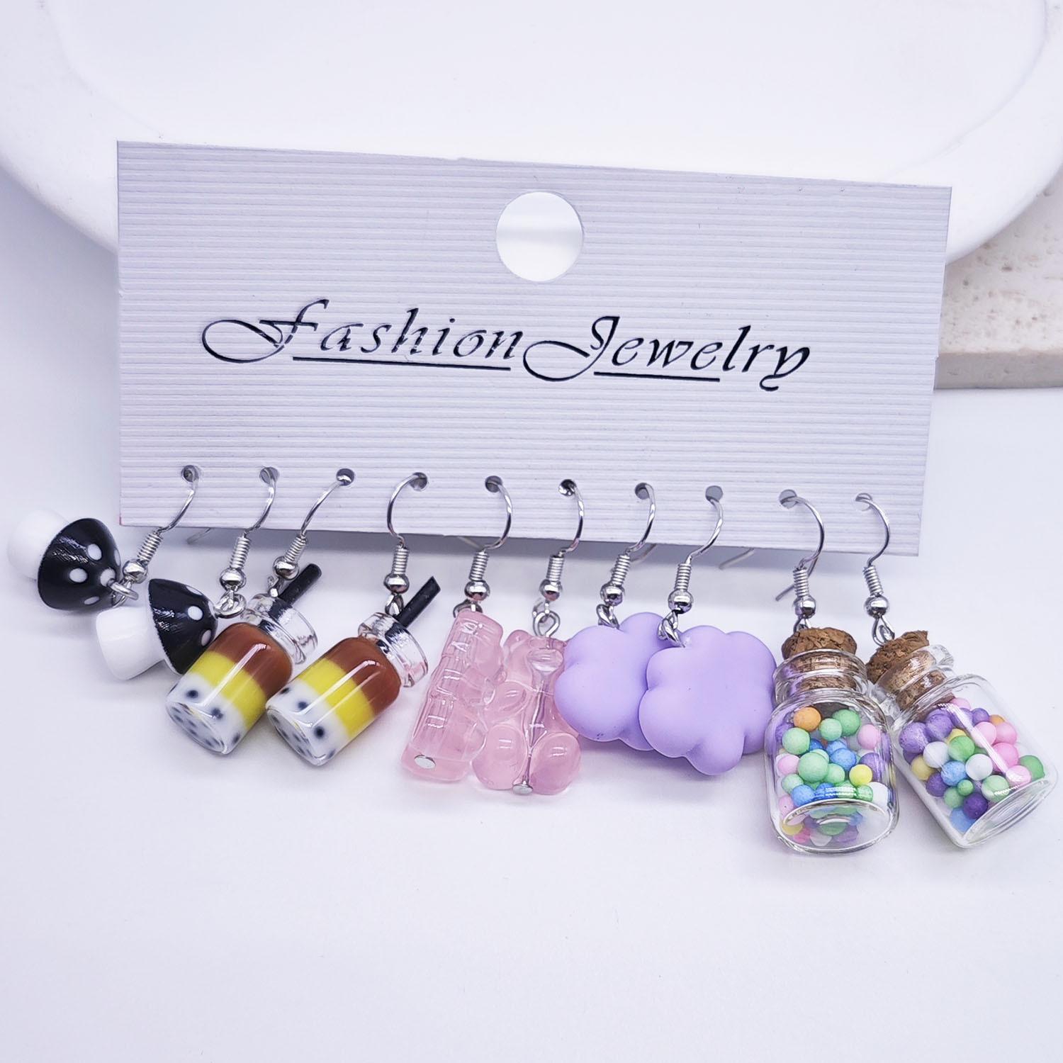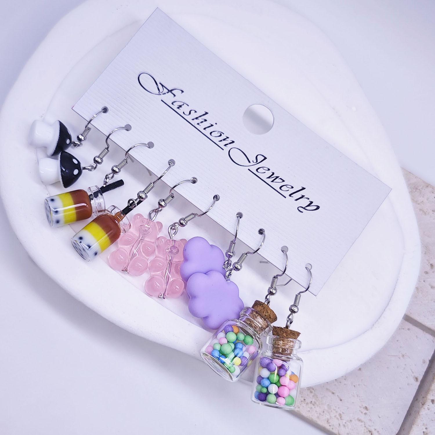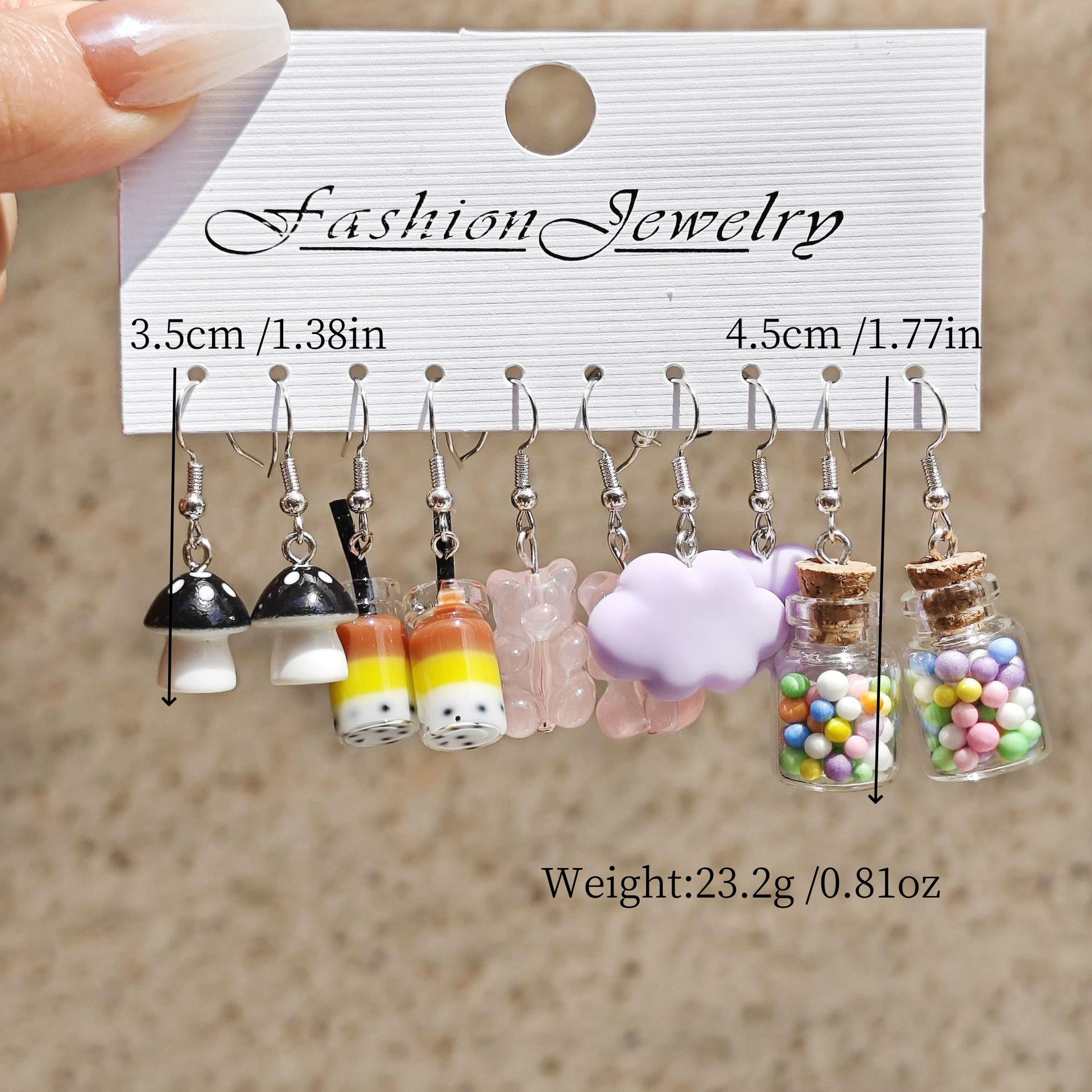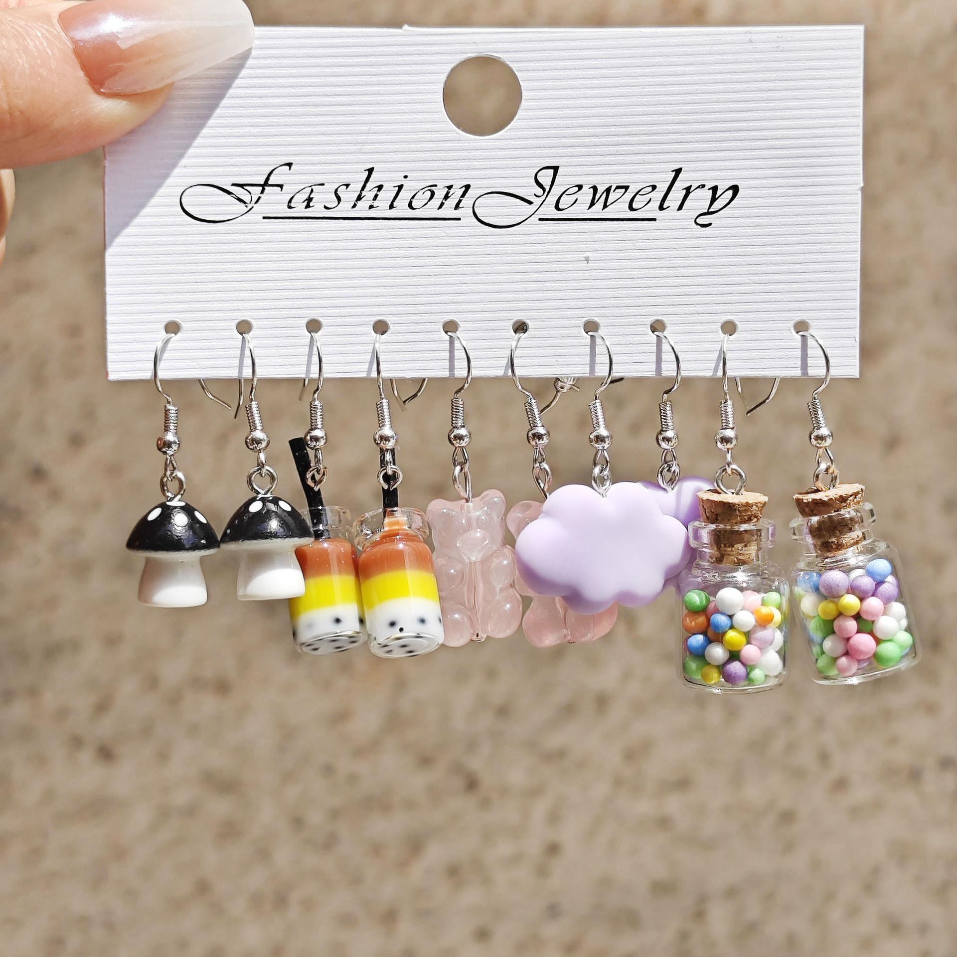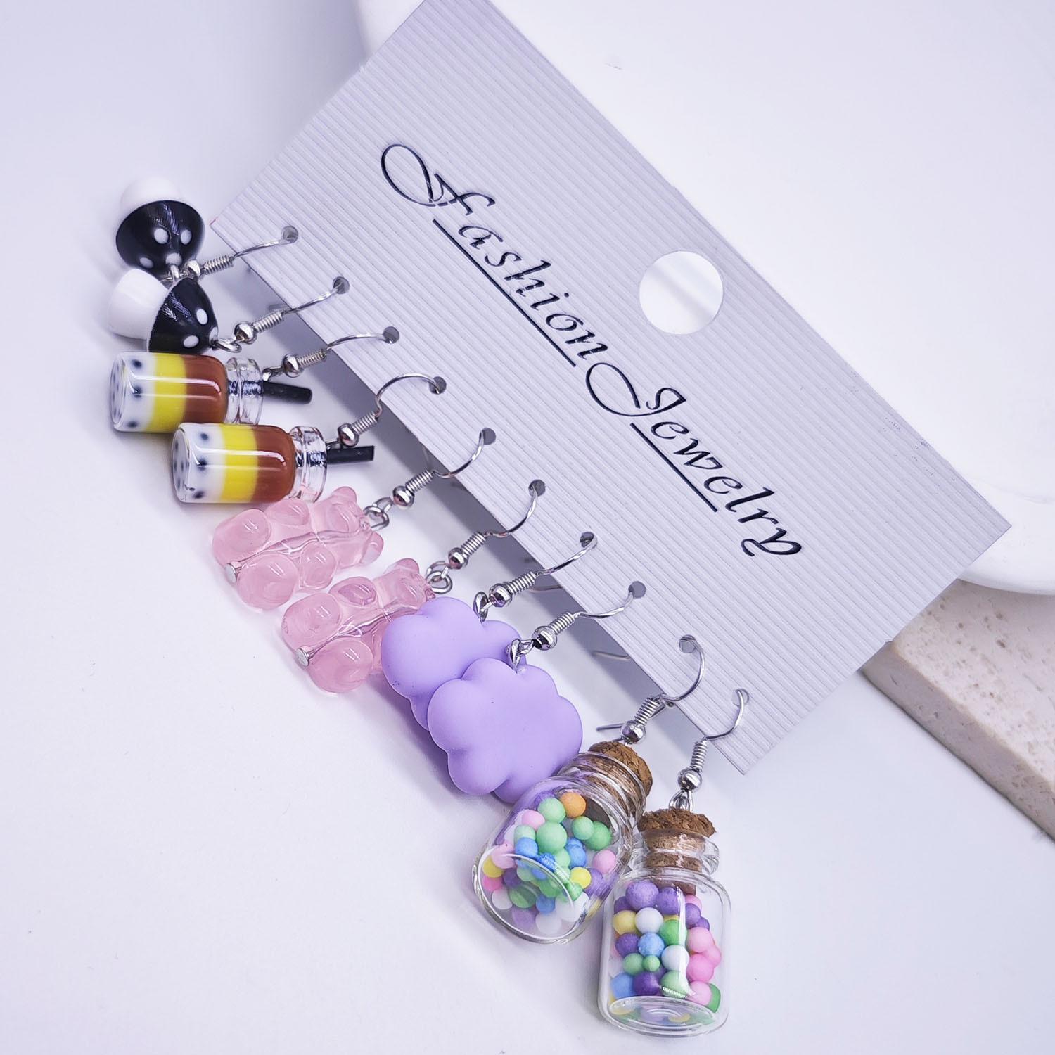 Conjunto de pendientes con forma de oso de resina con dibujos animados, frescos y dulces, con simulación de comida, leche y té.