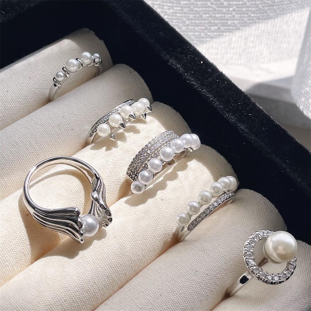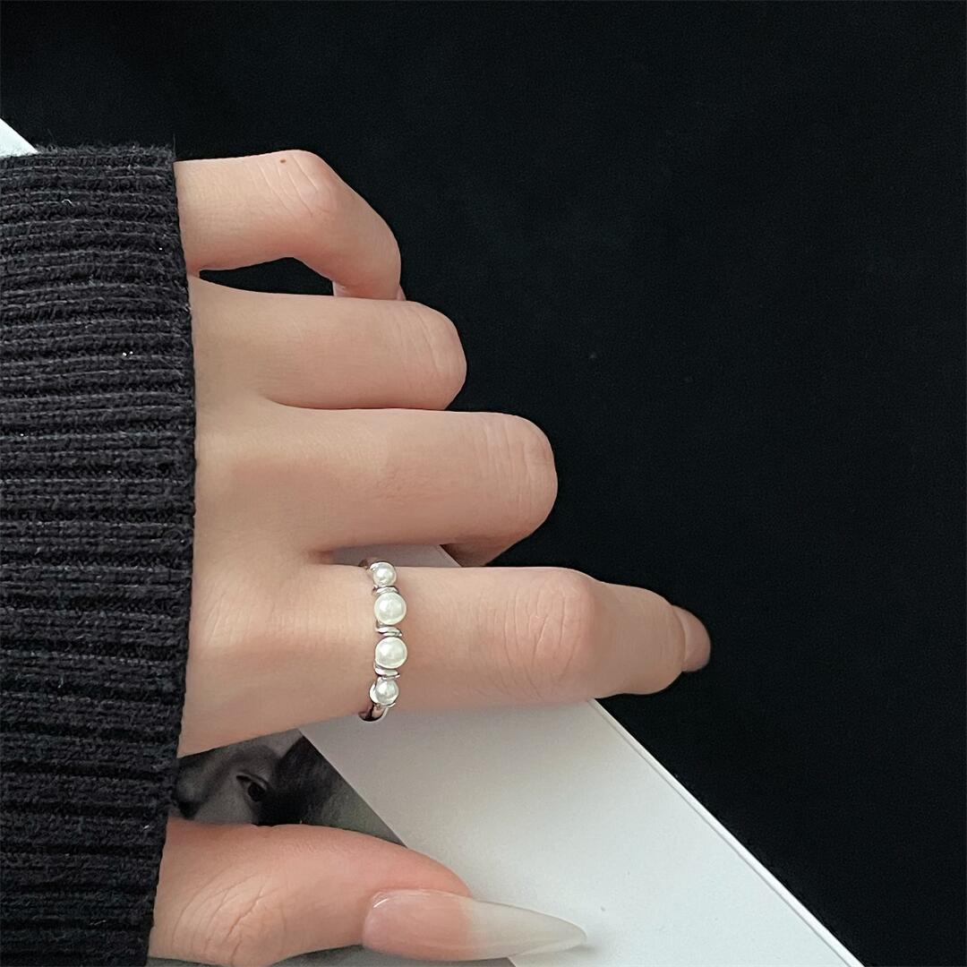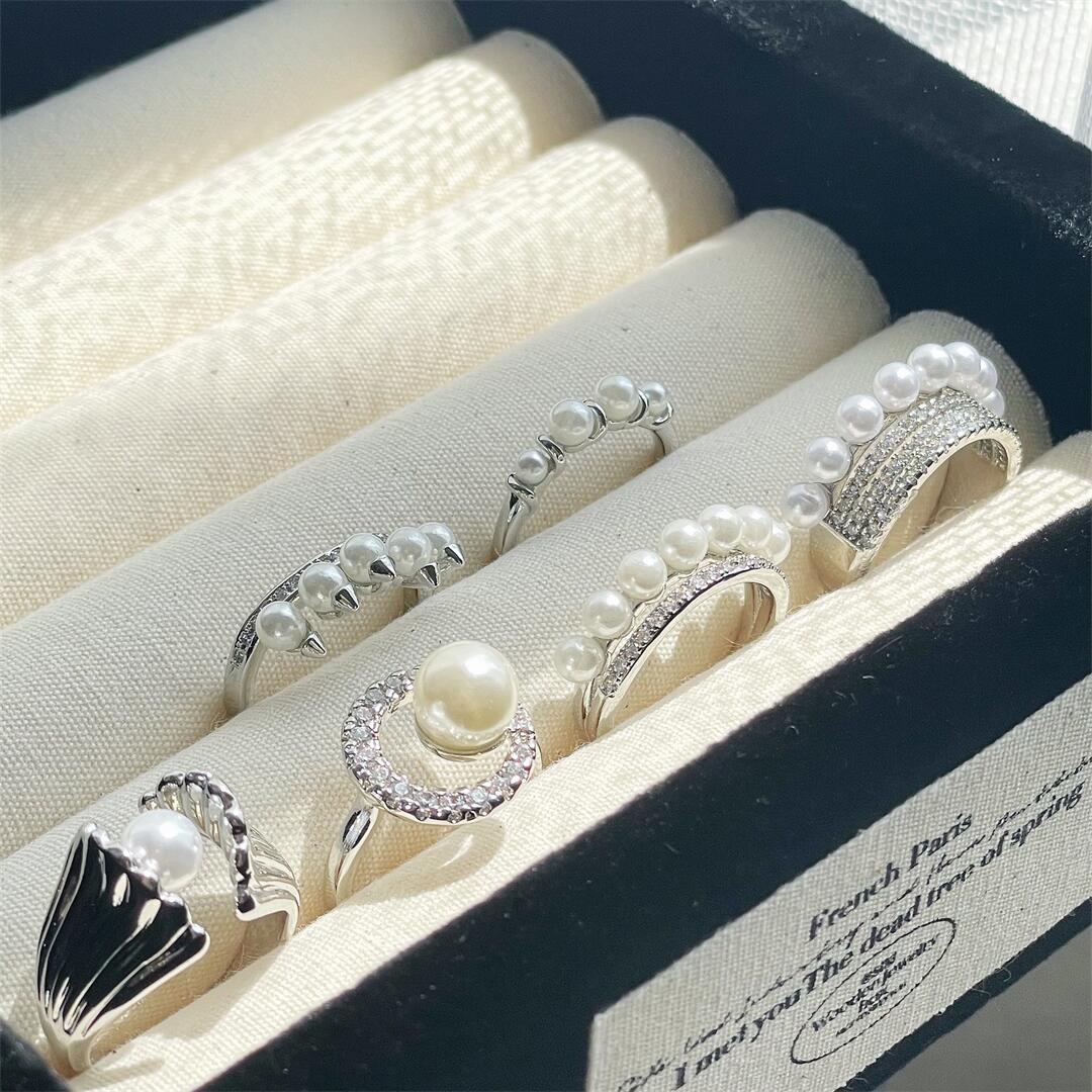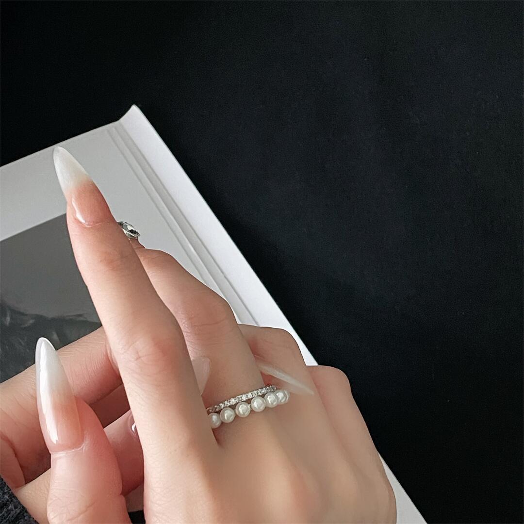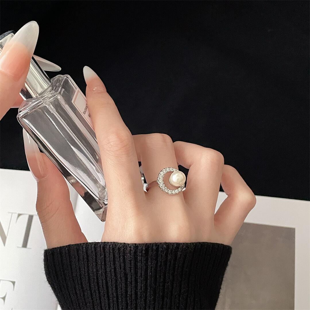 Anillo Abierto de Personalidad Elegante Simple con Incrustaciones de Diamantes Diseño Nicho Francés Sentido de Alta Gama Moda Muy Simple Anillo Exquisito