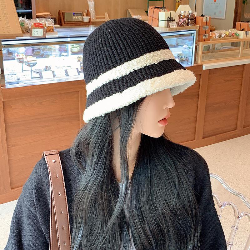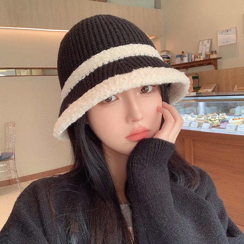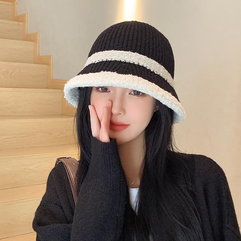 Nuevo gorro de pescador de otoño e invierno, tejido coreano, color a juego, cálido, para lavabo, combina con todo, informal, pequeño, informal, para el frío.