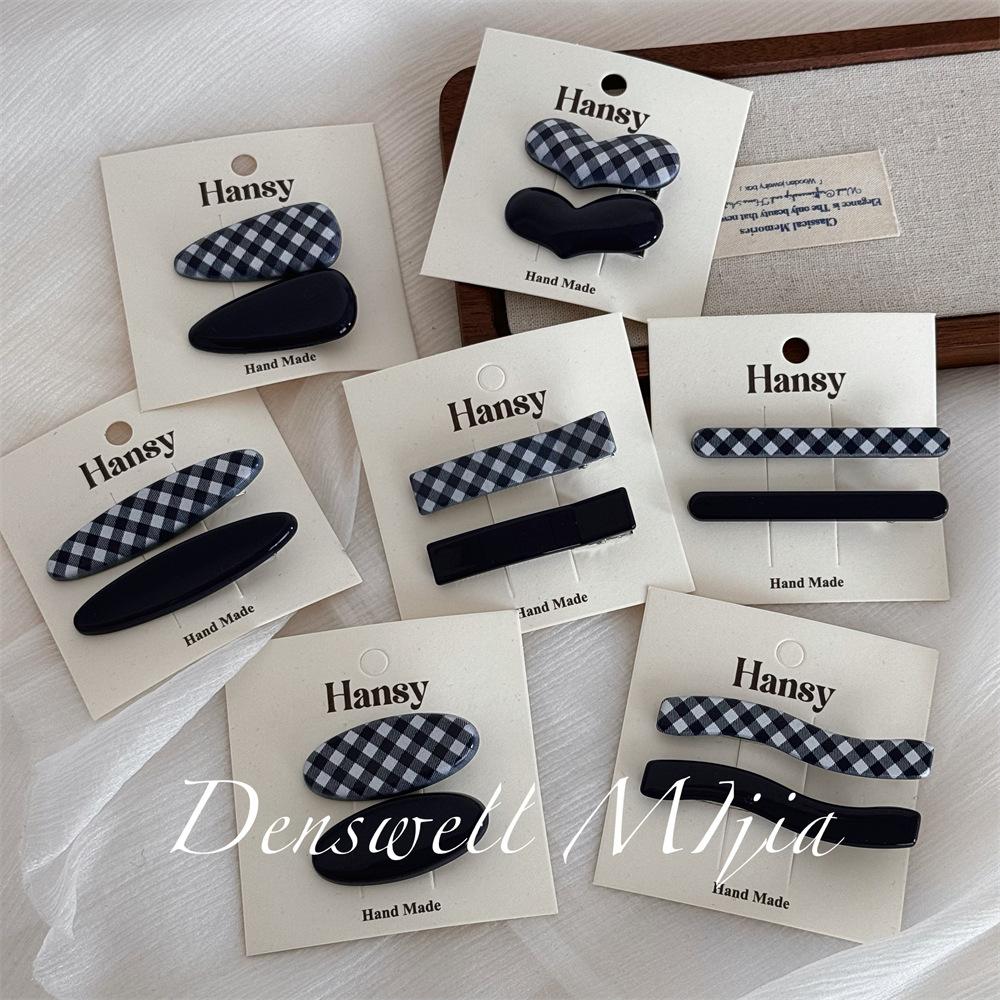 Pinza de Pico de Pato a Cuadros Azul y Blanco estilo Coreano Horquilla de Moda Simple Clip para Flequillo Moda Combinable Accesorios para Cabello Suelto