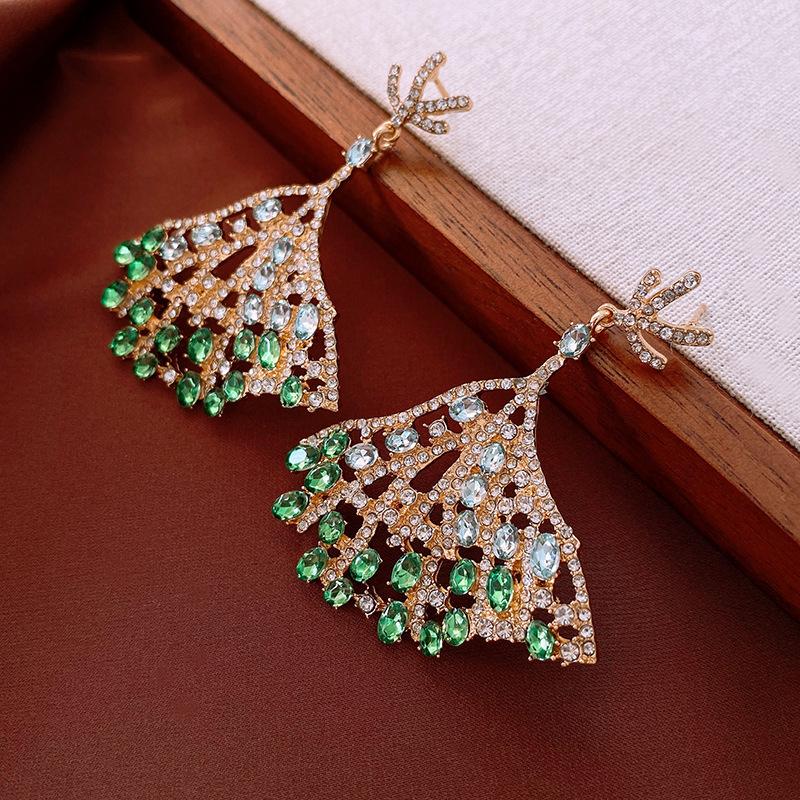 Brincos de ramo de diamante de pino de prata transfronteiriço retro luz brincos de design de luxo sentido sênior brincos de temperamento de nicho atacado