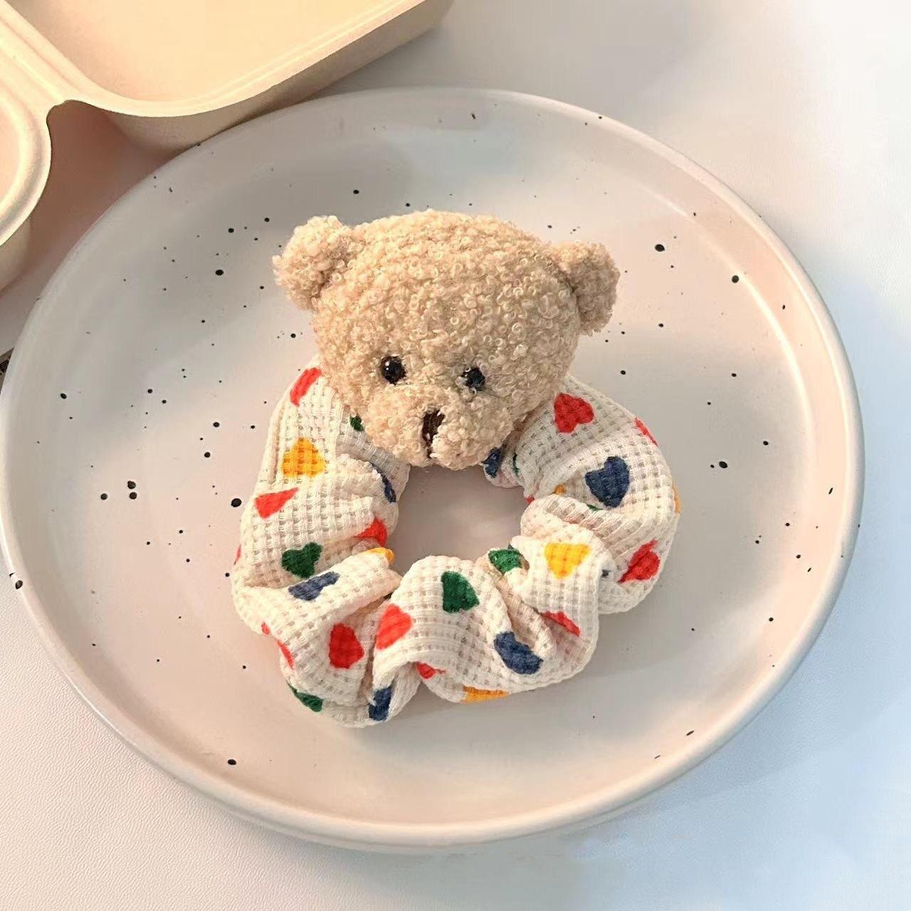 Teddy bear large intestine hair tie, Rainbow love large intestine hair tie