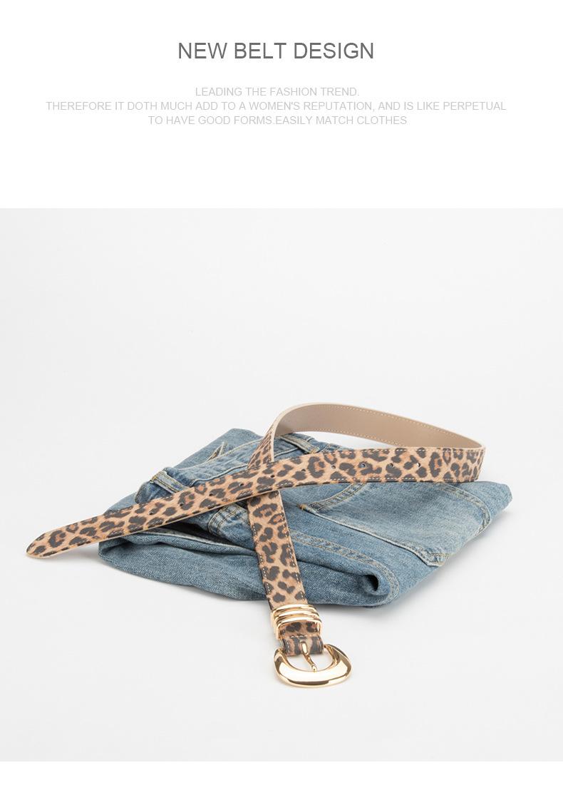 Cinturón de cuero con hebilla decorativa para mujer, nuevo, con estampado de leopardo, estilo Joker, para vestir y pantalones, venta al por mayor de fábrica