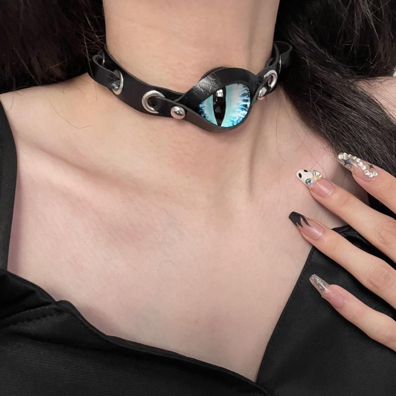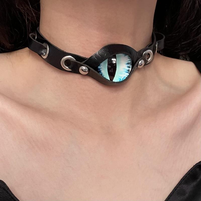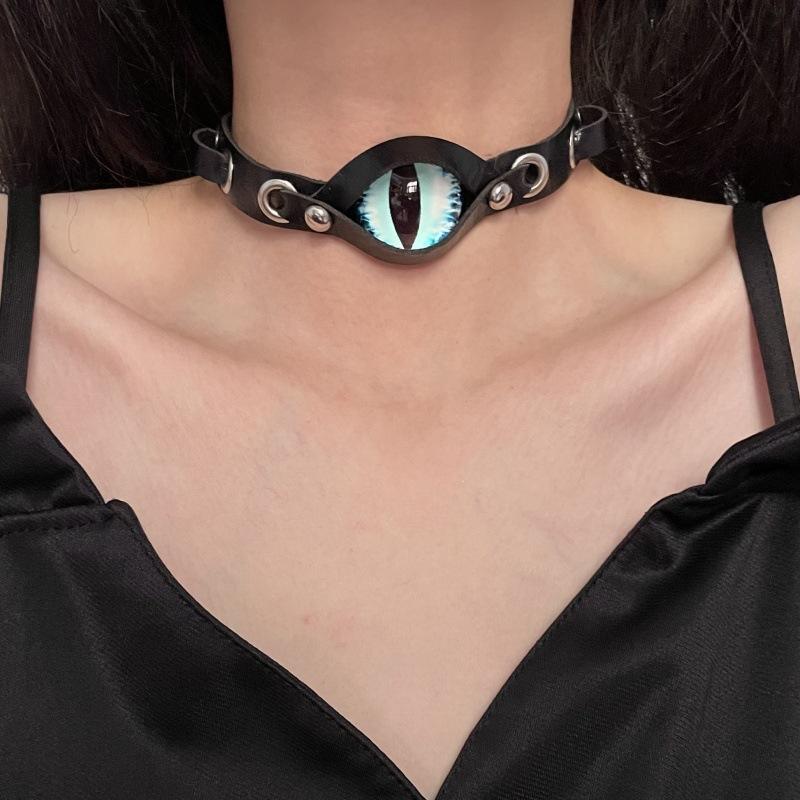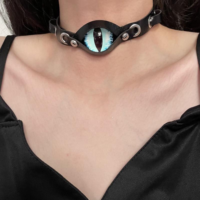 Collar de Cuero Ojo del Diablo Diablo Punk para Mujer Estilo Europeo y Americano Moda Subcultura Personalidad Única Cadena Clavícula