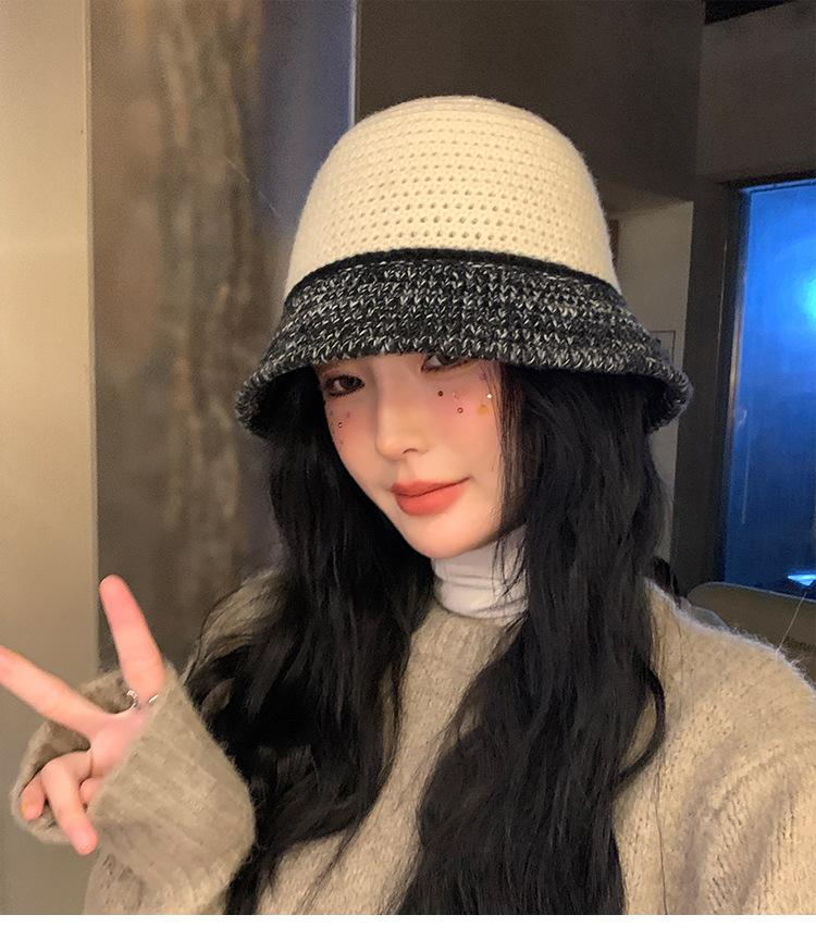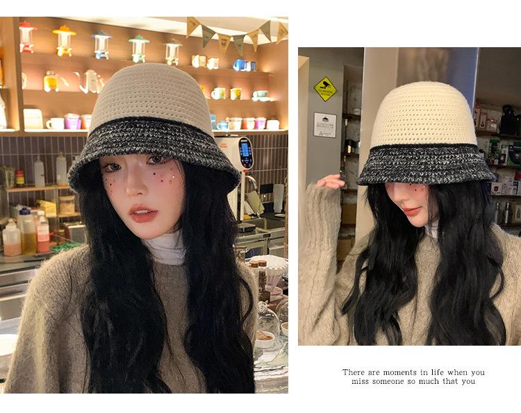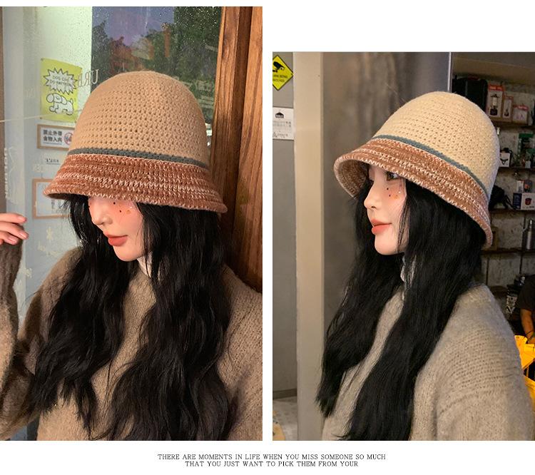 Nuevo gorro de cubo pequeño de punto para mujer, de otoño e invierno, estilo coreano, de lana de colores, a la moda