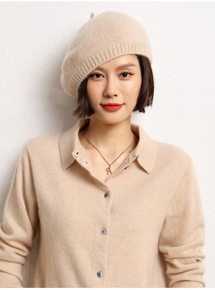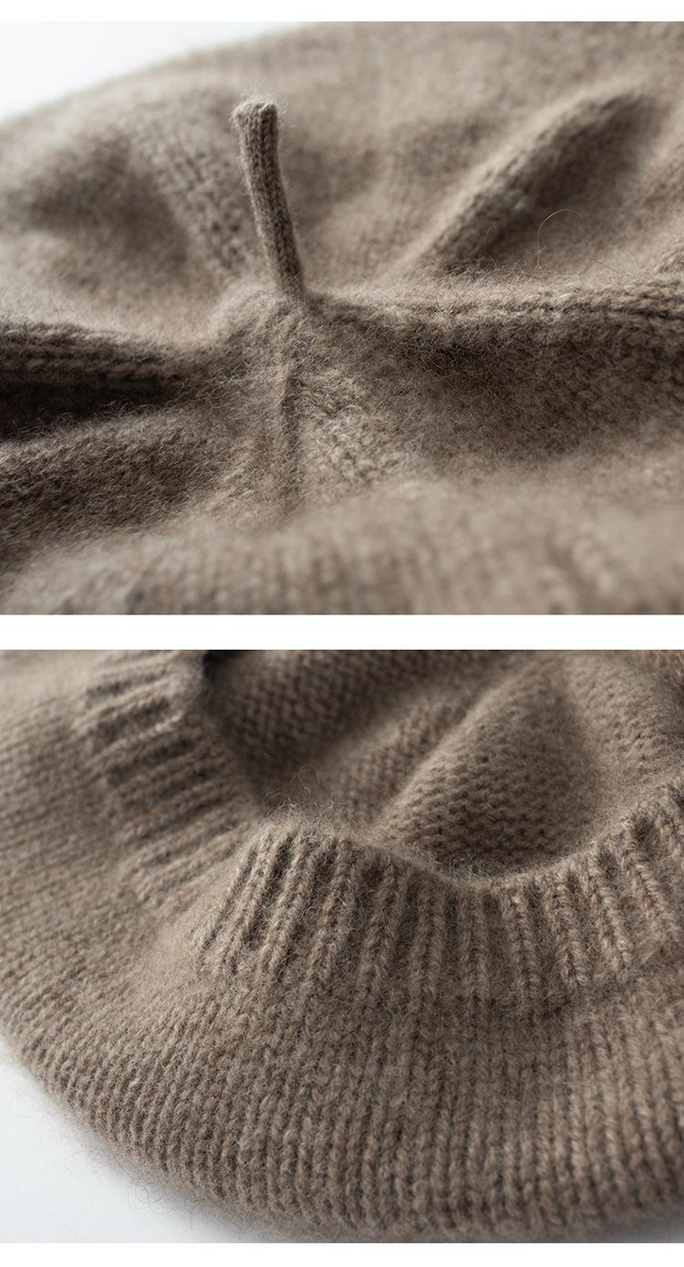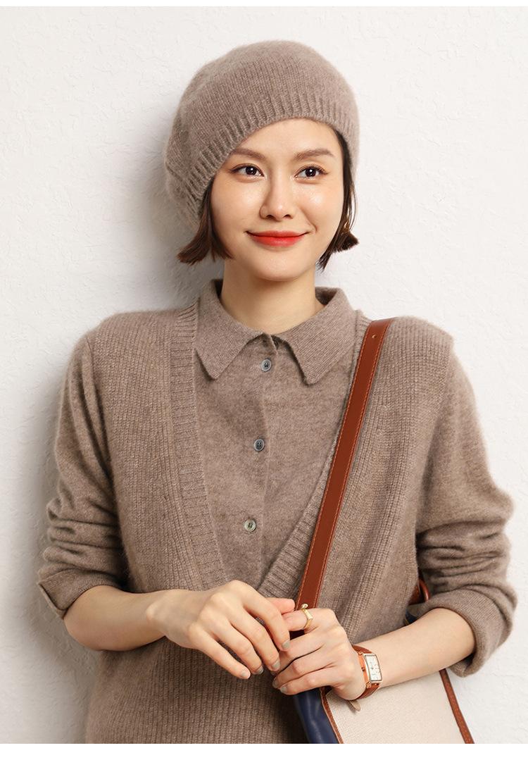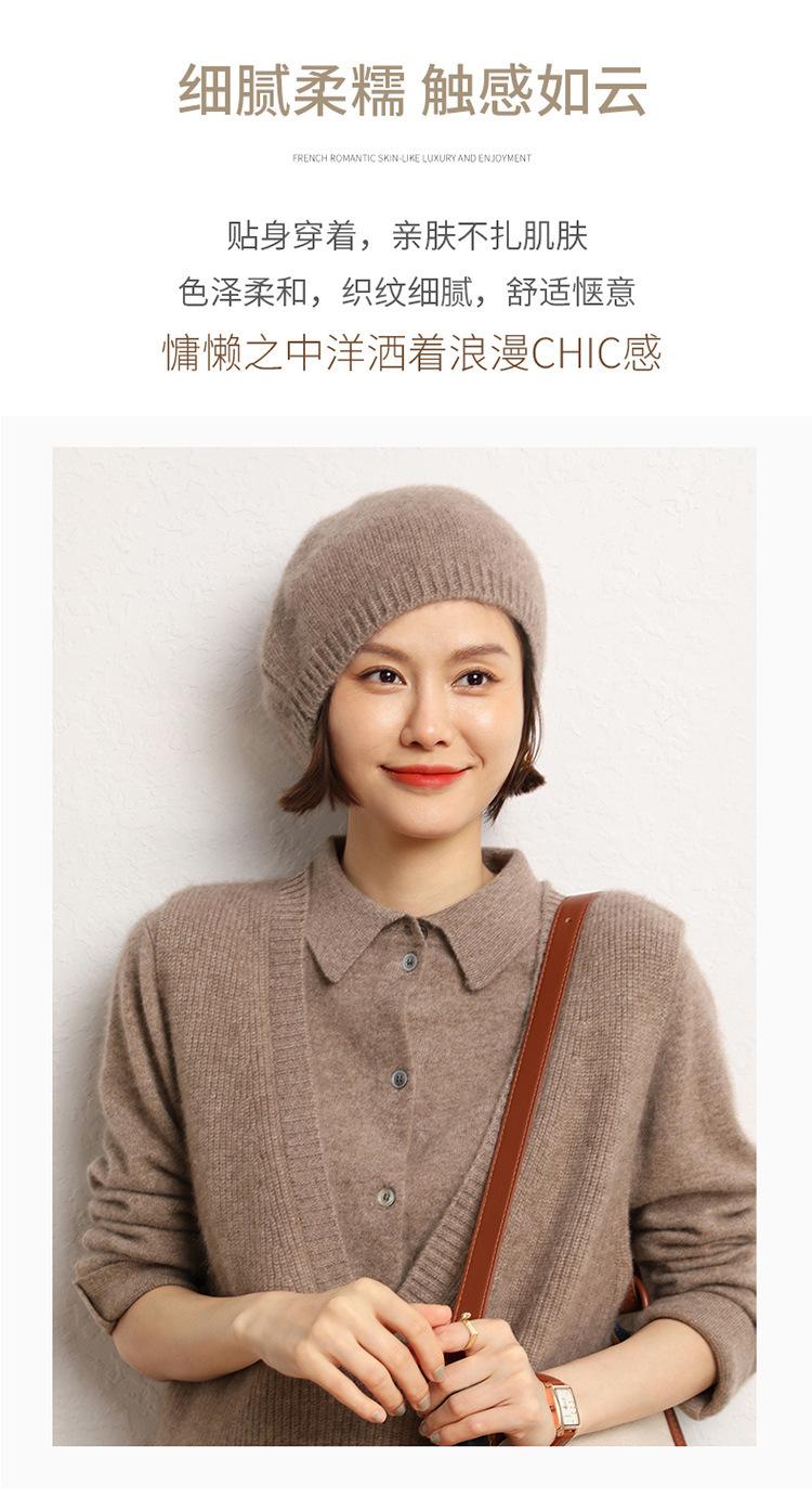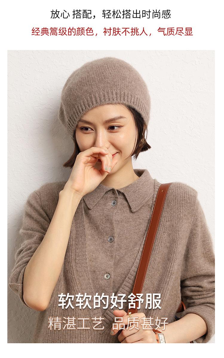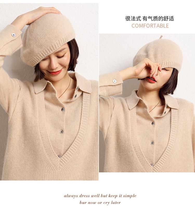 Boina de cachemira pura para otoño e invierno, nueva, de alta gama, de color sólido, para exteriores, cálida, con forma de cúpula, informal, tipo suéter