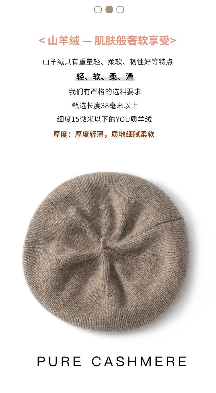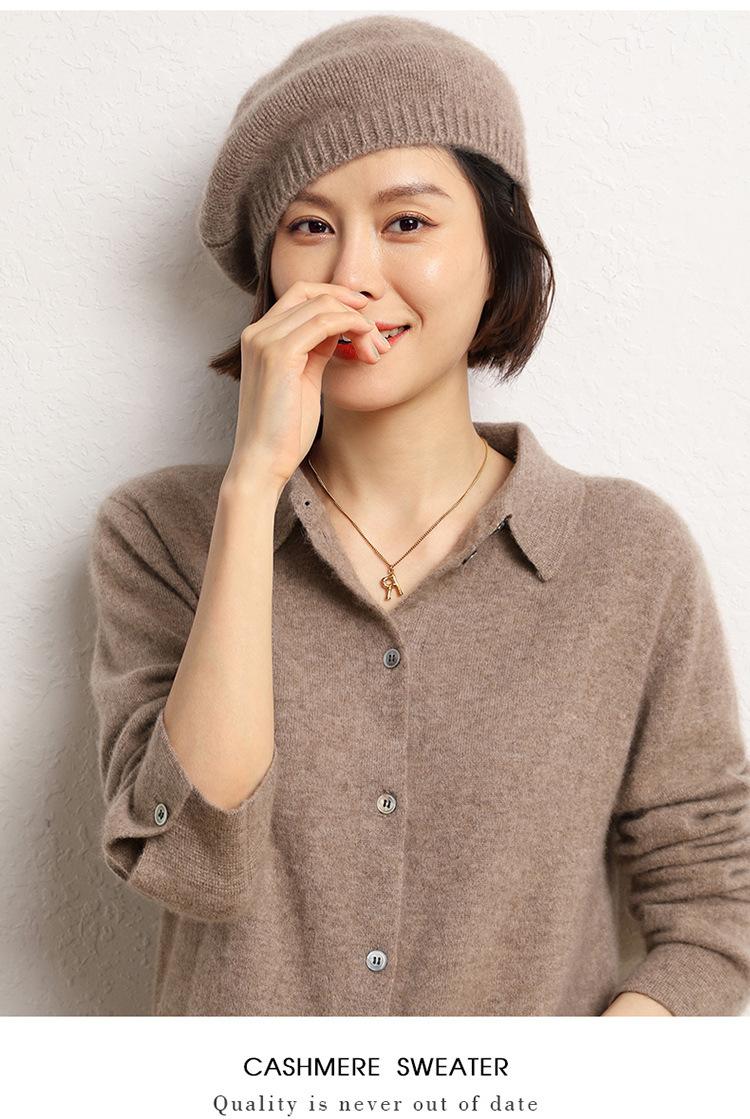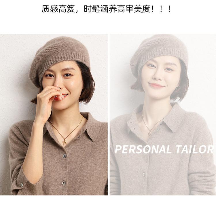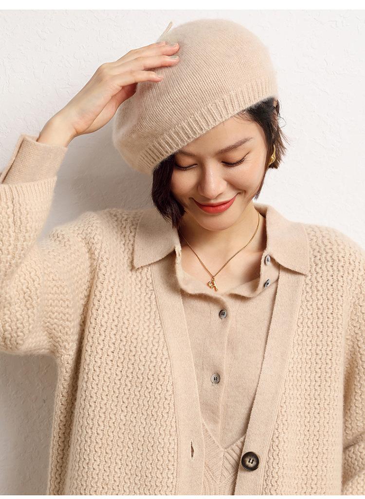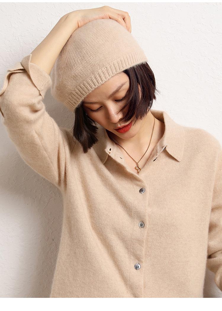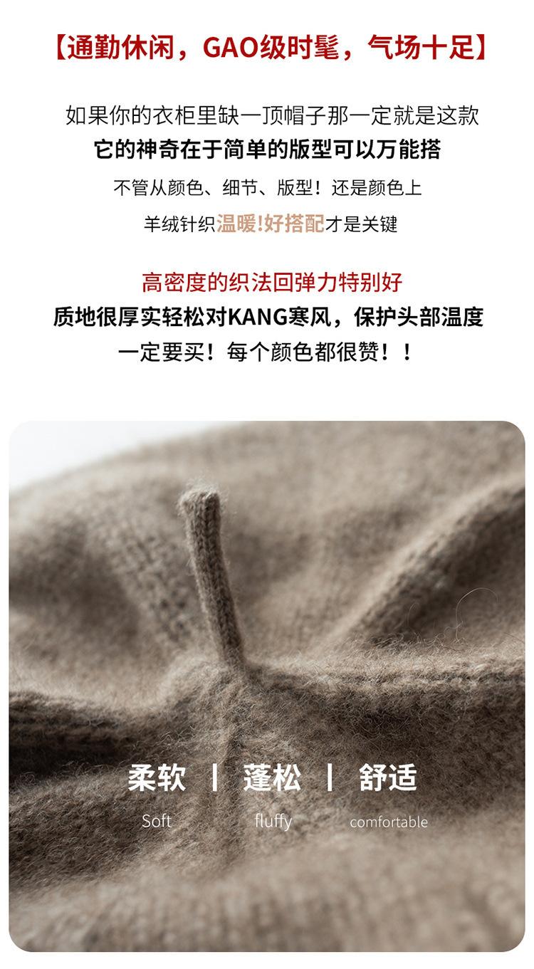 Boina de cachemira pura para otoño e invierno, nueva, de alta gama, de color sólido, para exteriores, cálida, con forma de cúpula, informal, tipo suéter