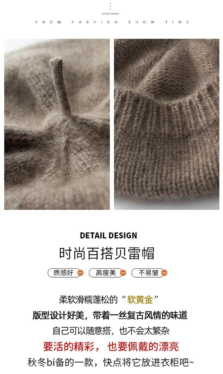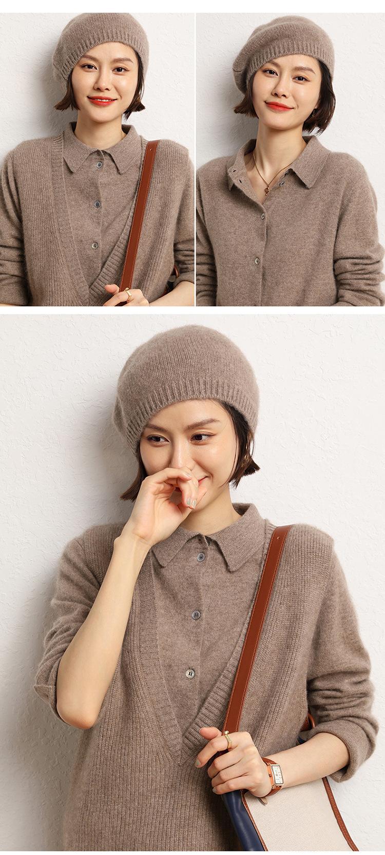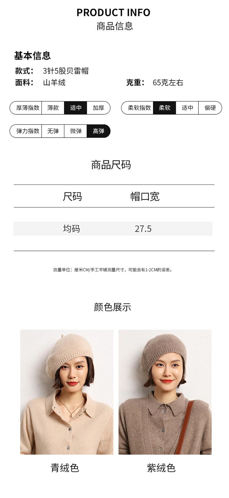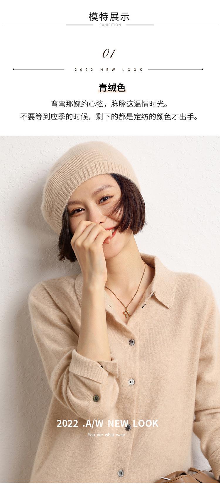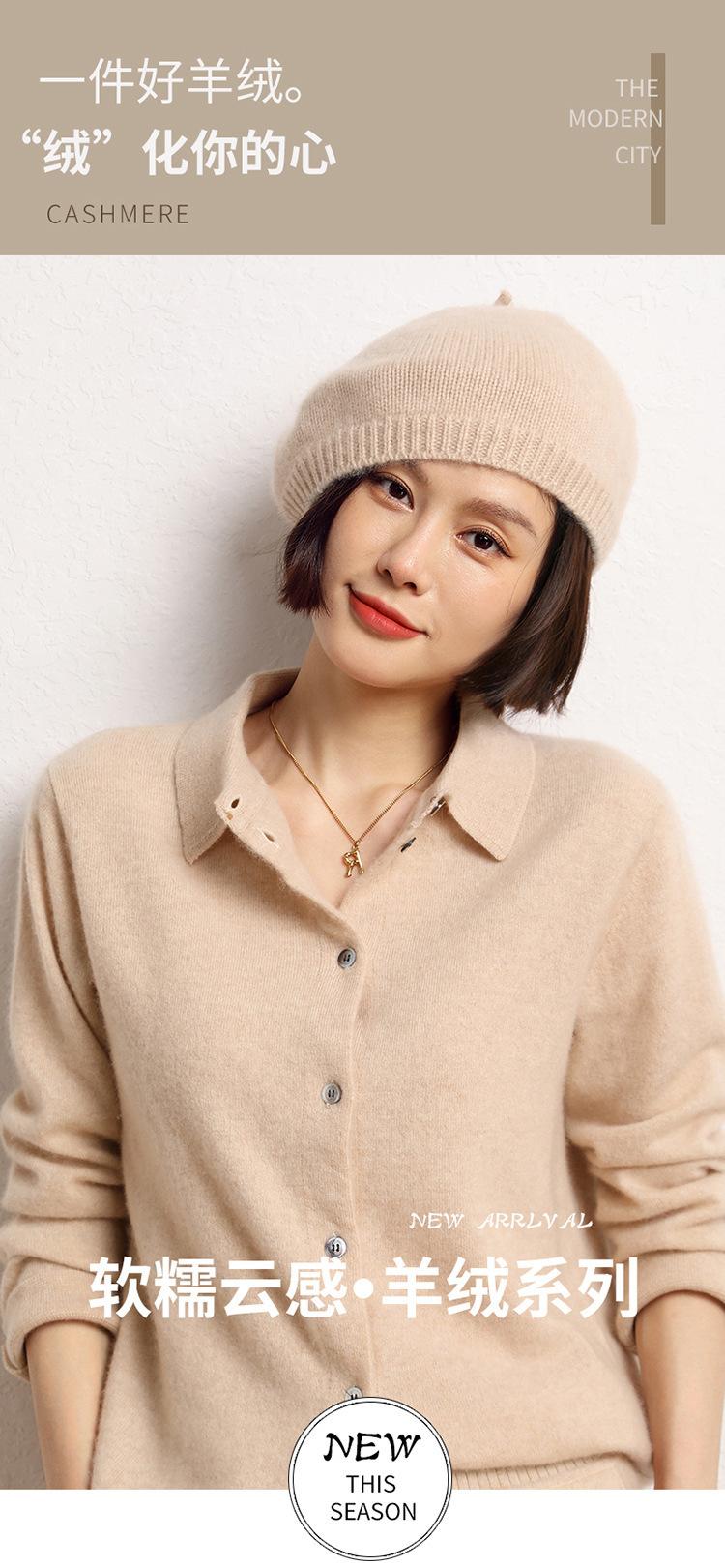 Boina de cachemira pura para otoño e invierno, nueva, de alta gama, de color sólido, para exteriores, cálida, con forma de cúpula, informal, tipo suéter