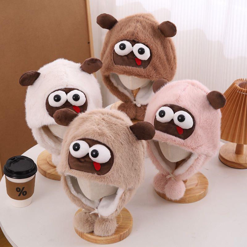 Gorro de Felpa Lei Feng Lindo Divertido Estilo Japonés para Padres e Hijos para Invierno con Forro Polar Grueso Cálido a Prueba de Frío Combinable Protección para las Orejas