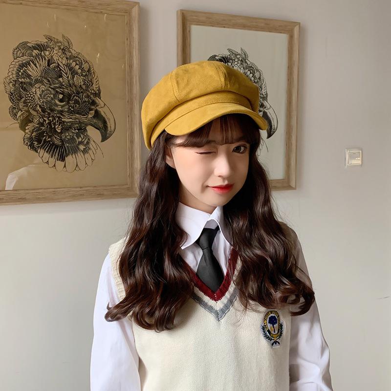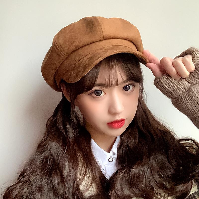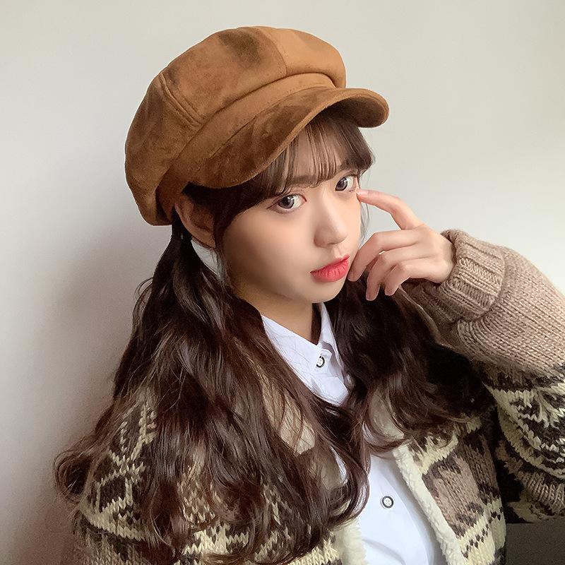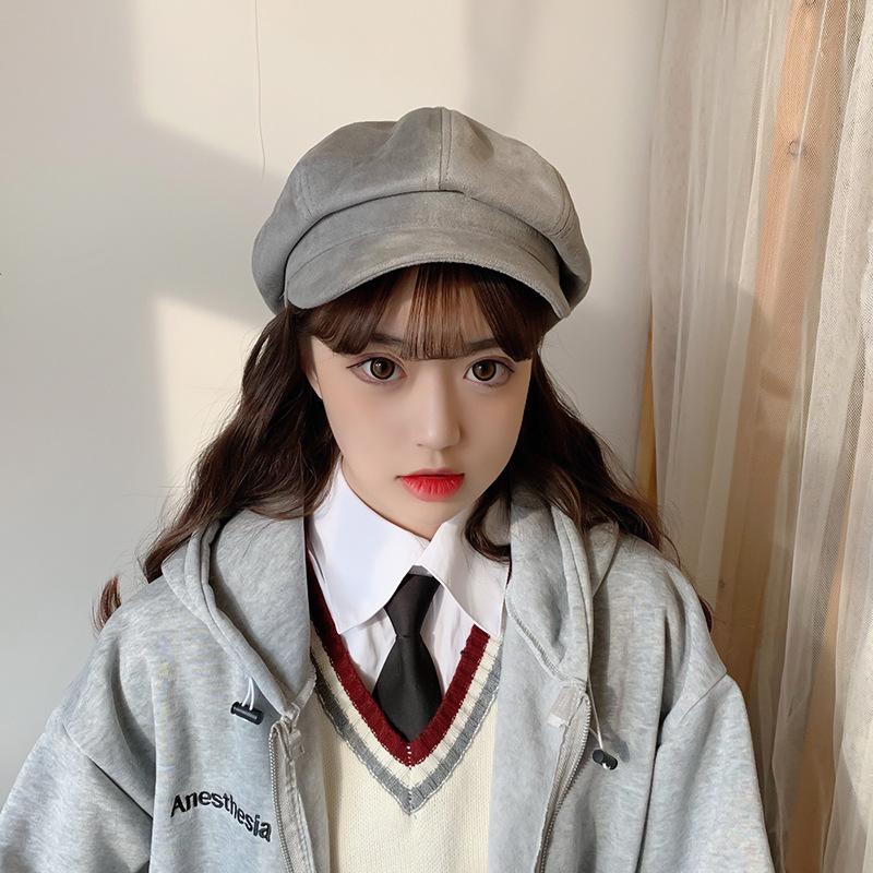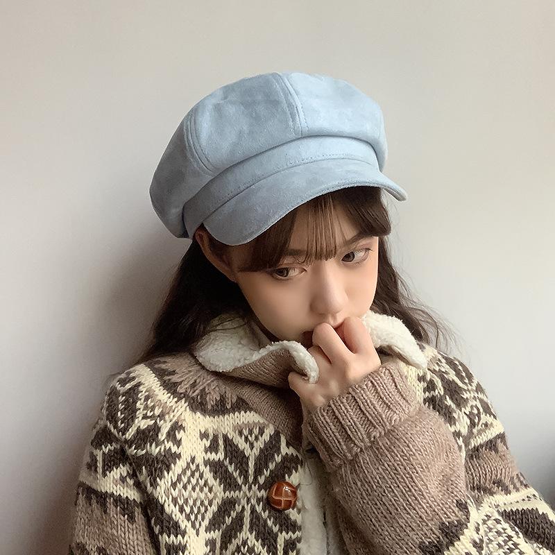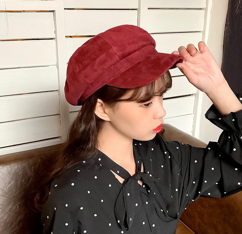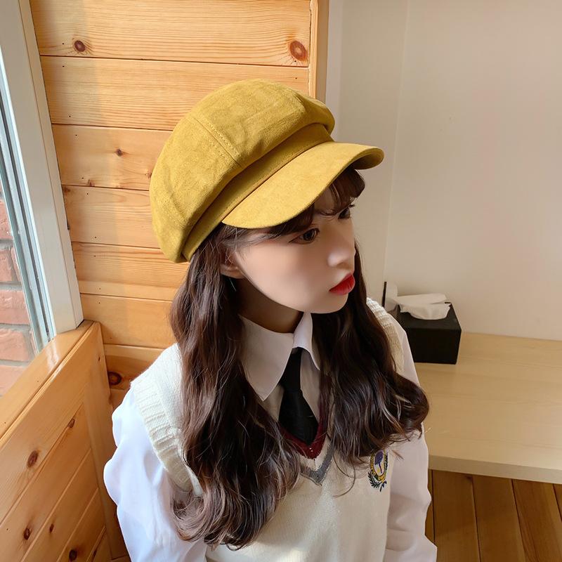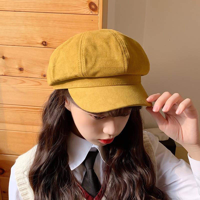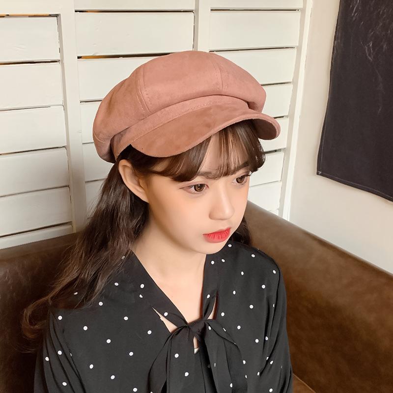 Sombrero de gamuza para mujer, otoño e invierno, estilo coreano, lengua de pato, gorra octogonal, boina retro de estilo japonés y británico, sombrero de pintor de color sólido para hombre